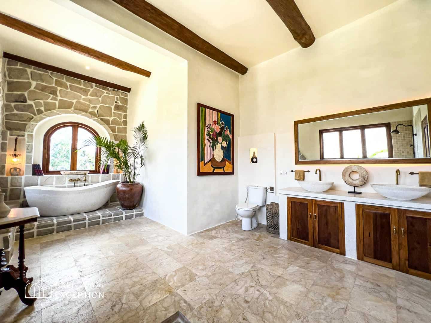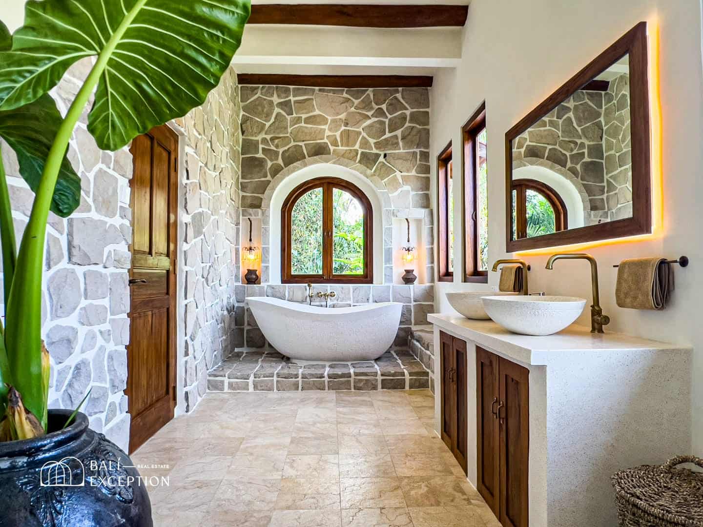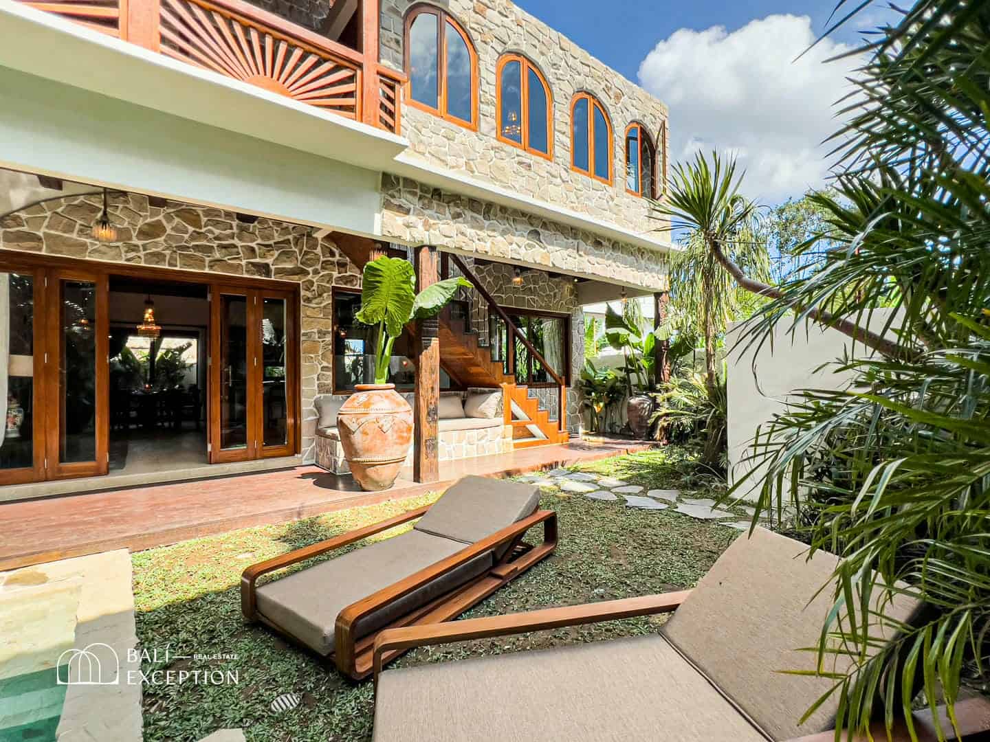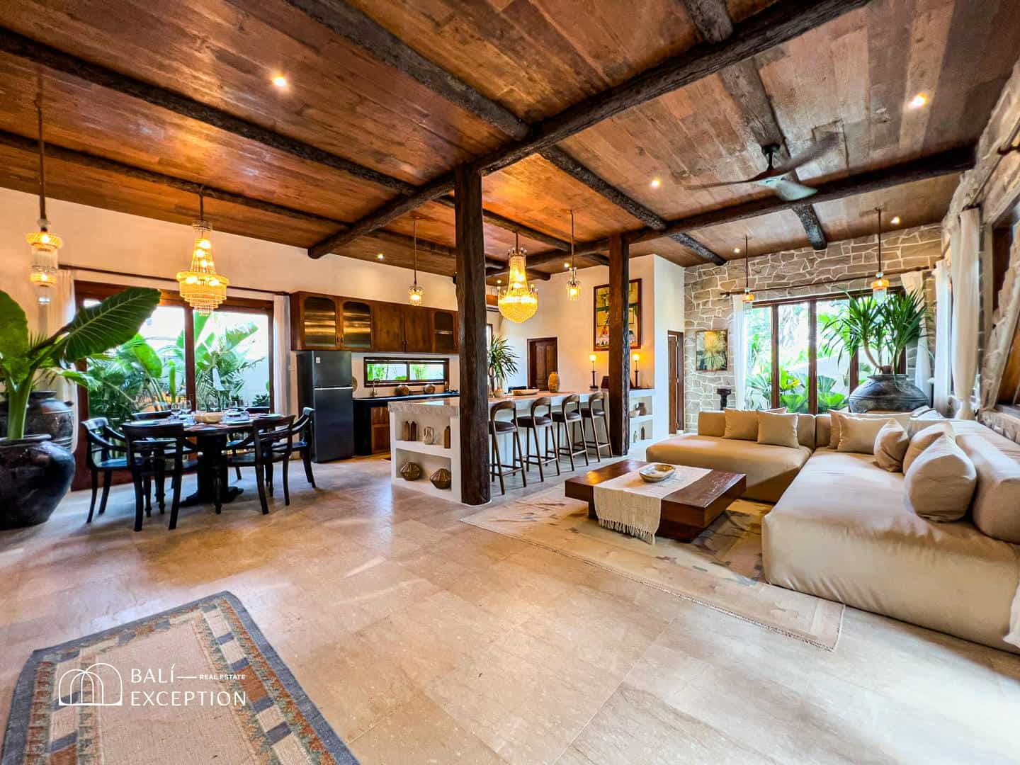 Located in the area of Pererenan, this villa combines modern luxury with a unique stone and wood design. Just minutes away from popular cafes and restaurants, this property offers both convenience and tranquility.