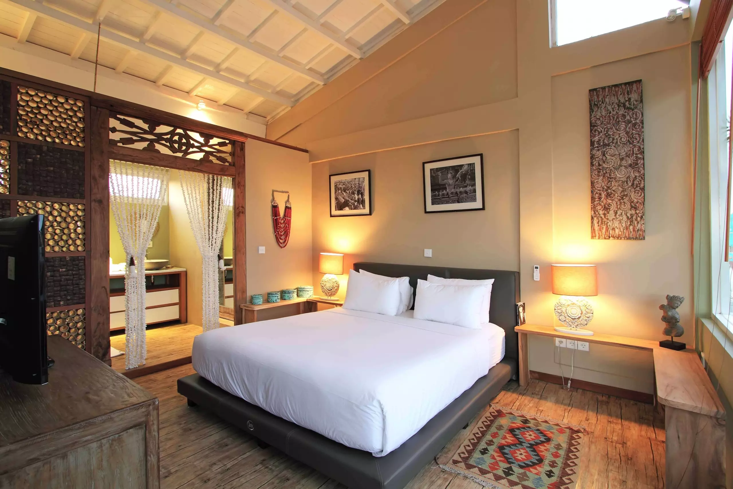 One of the highlights of this villa is it’s penthouse terrace with a charming 2×2 meter pool that overlooks the stunning surroundings. Completed with a lounge bed and a small dining table, this rooftop provides the perfect place to soak in breathtaking views of the local landscape while basking in the warm Balinese sun.