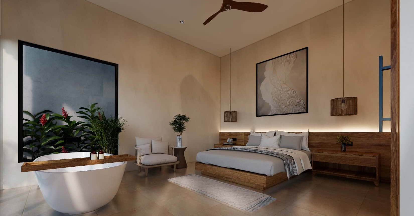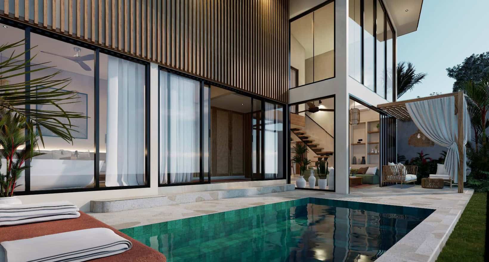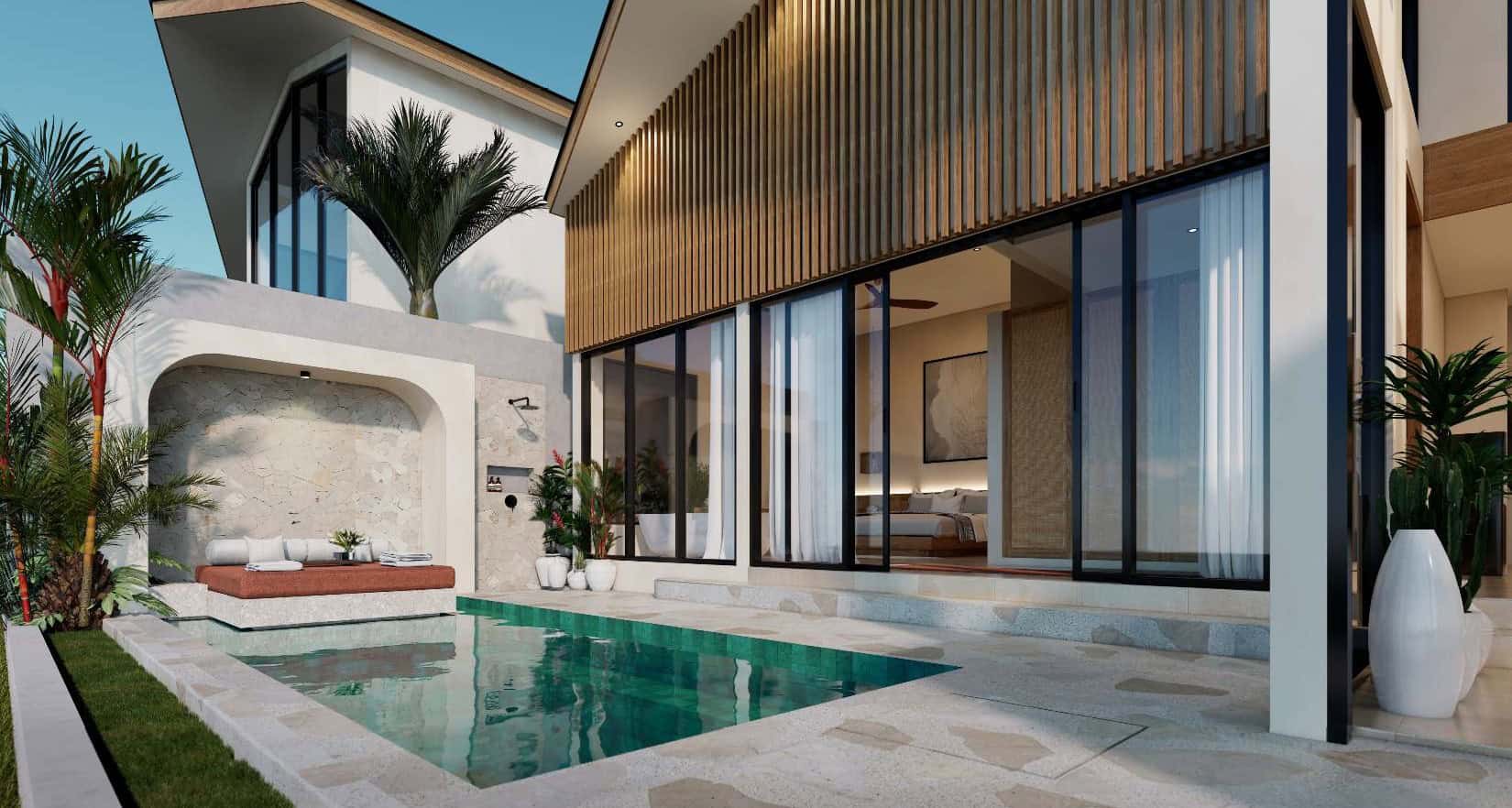 The standout feature is the sparkling private pool, complete with an outdoor lounge area overlooking the luscious rice fields. Additionally, there is an option to choose a villa type that faces the ocean. This villa is an exceptional choice for a luxury holiday home or a smart investment opportunity.