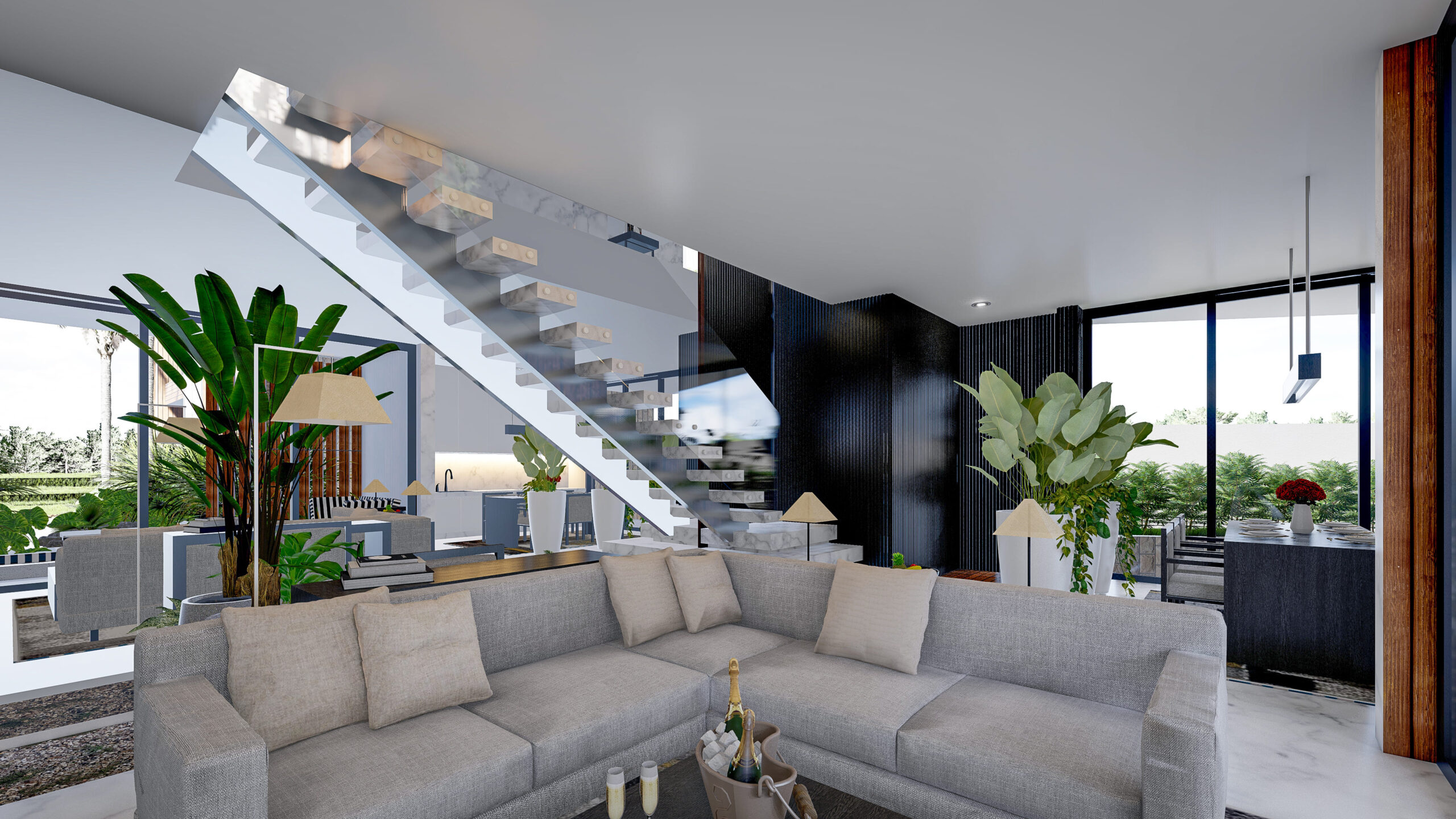 - Fully Furnished: The villa is fully furnished, complete with a modern equipped kitchen and a living area featuring floor-to-ceiling sliding windows that blend indoor and outdoor spaces seamlessly.