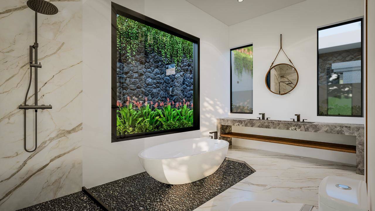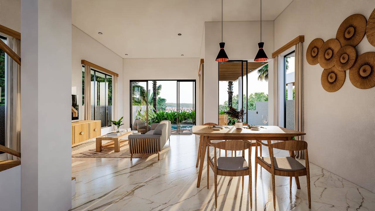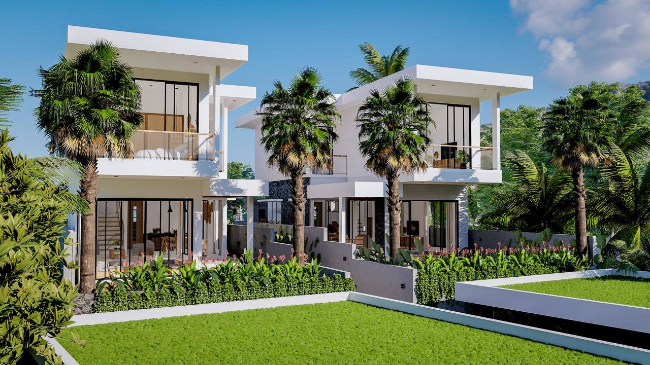 - Modern Design: Each two-story villa boasts a modern design with captivating white and wooden accents, creating a sophisticated atmosphere.