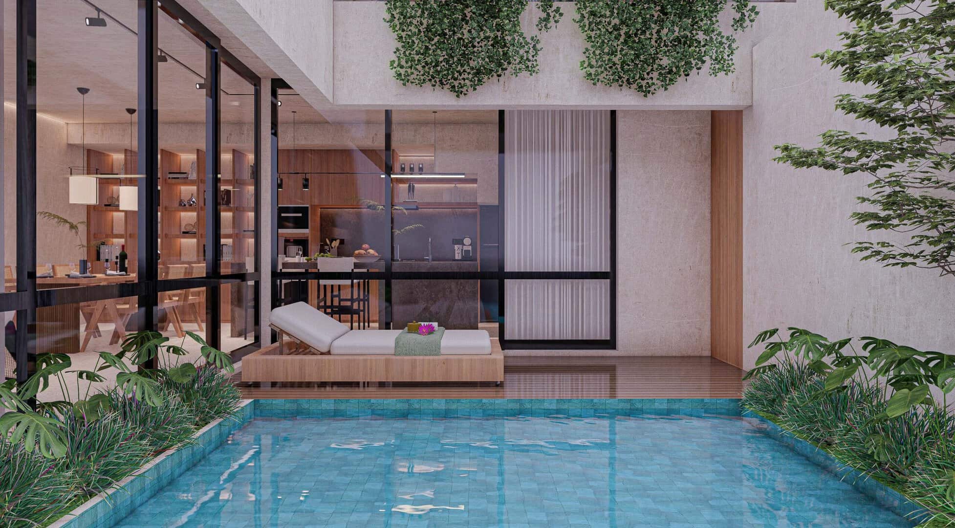 - Modern Minimalist Design: The villa is fully furnished with high ceiling windows that invite plenty of natural light.