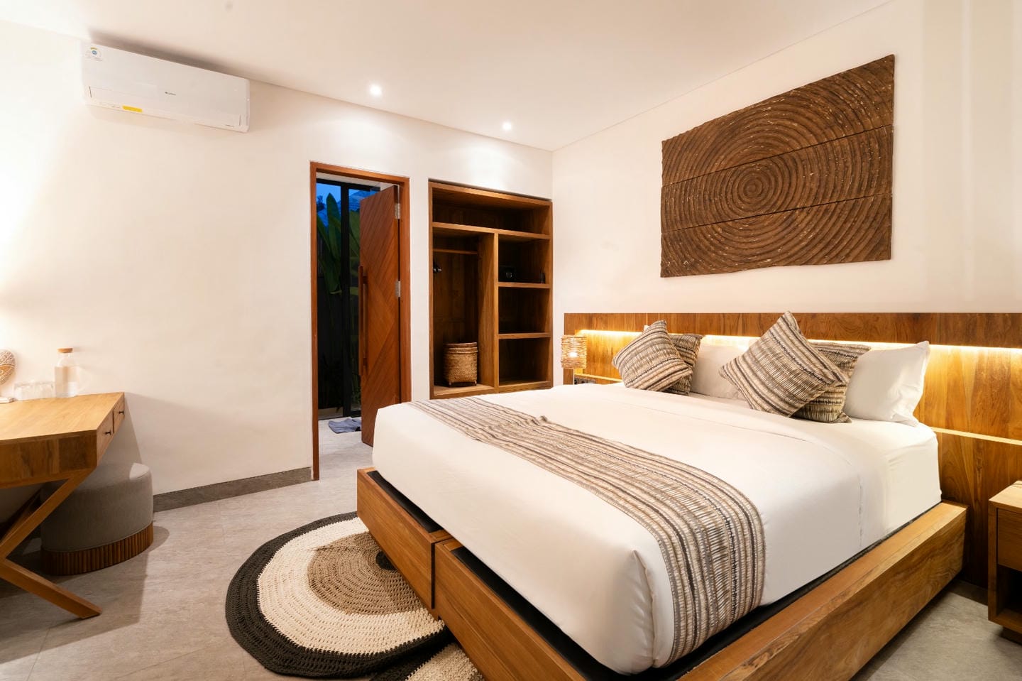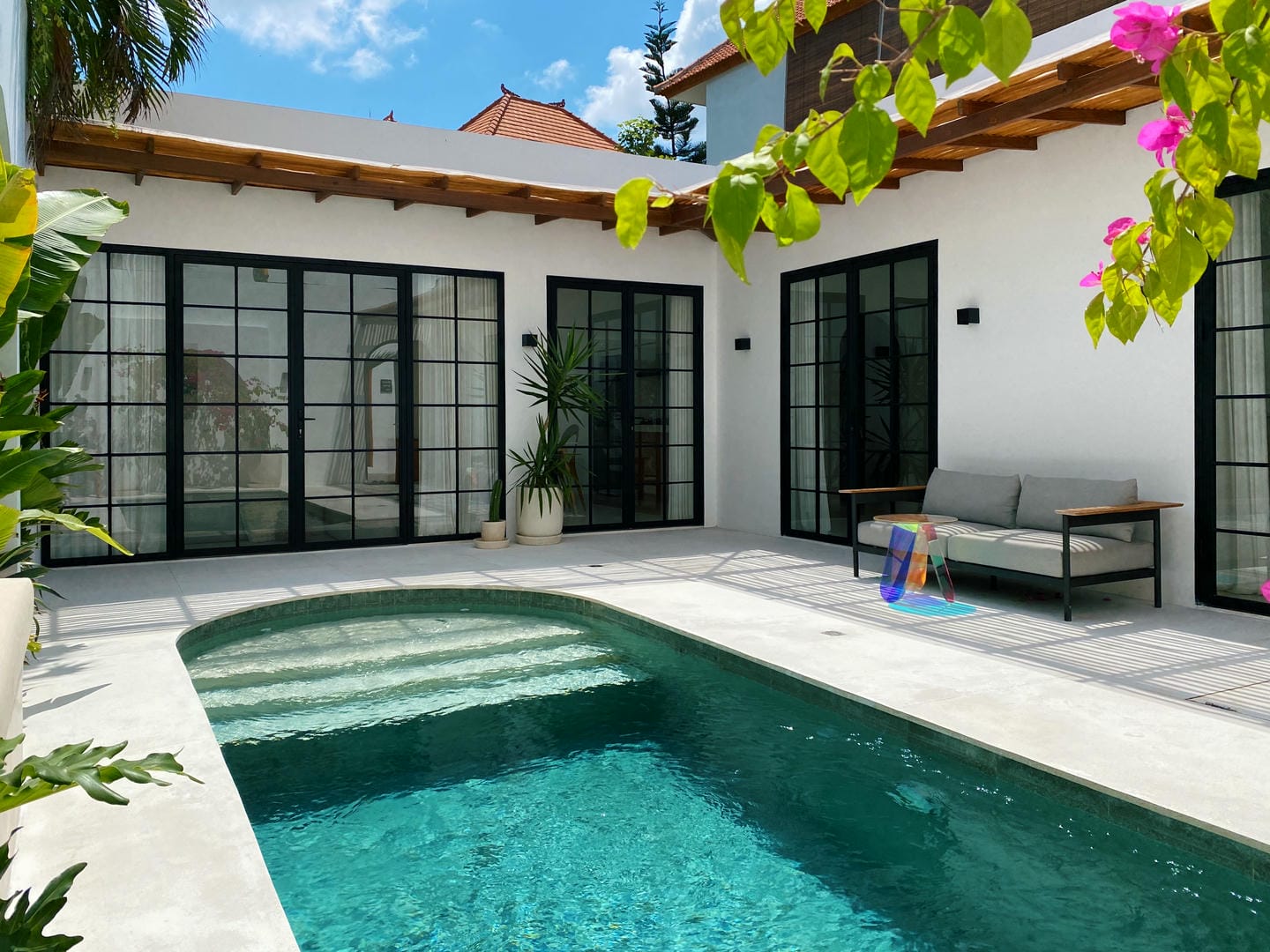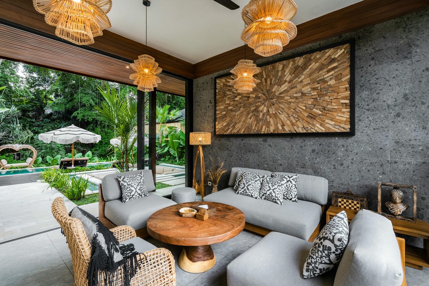 This villa showcases a beautiful tropical design with warm natural elements and elegant details throughout the space. The open-plan living area creates a bright and welcoming atmosphere, seamlessly connecting the indoor lounge with the outdoor area. Large glass openings allow natural light and fresh air to flow inside, enhancing the sense of space and comfort. The villa comes with two bedrooms and two bathrooms, designed with an outdoor concept that brings you closer to nature while maintaining privacy and relaxation.