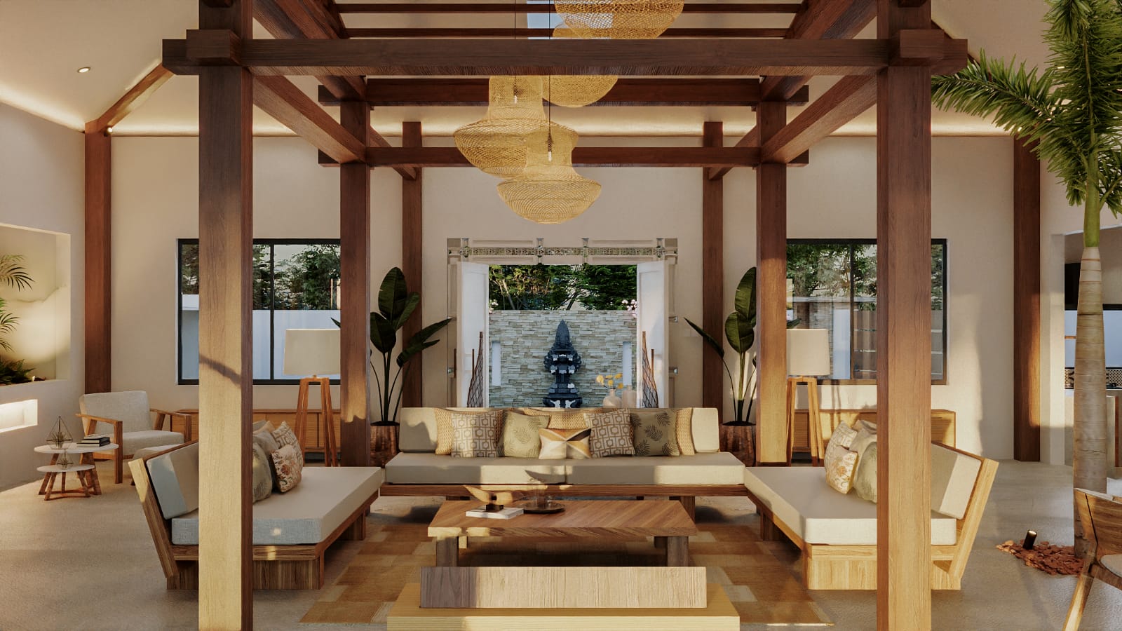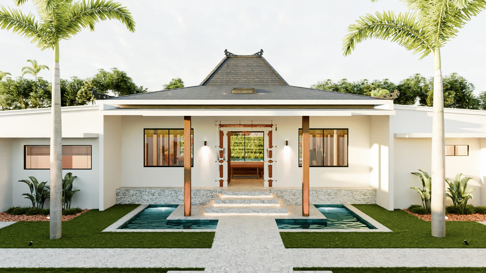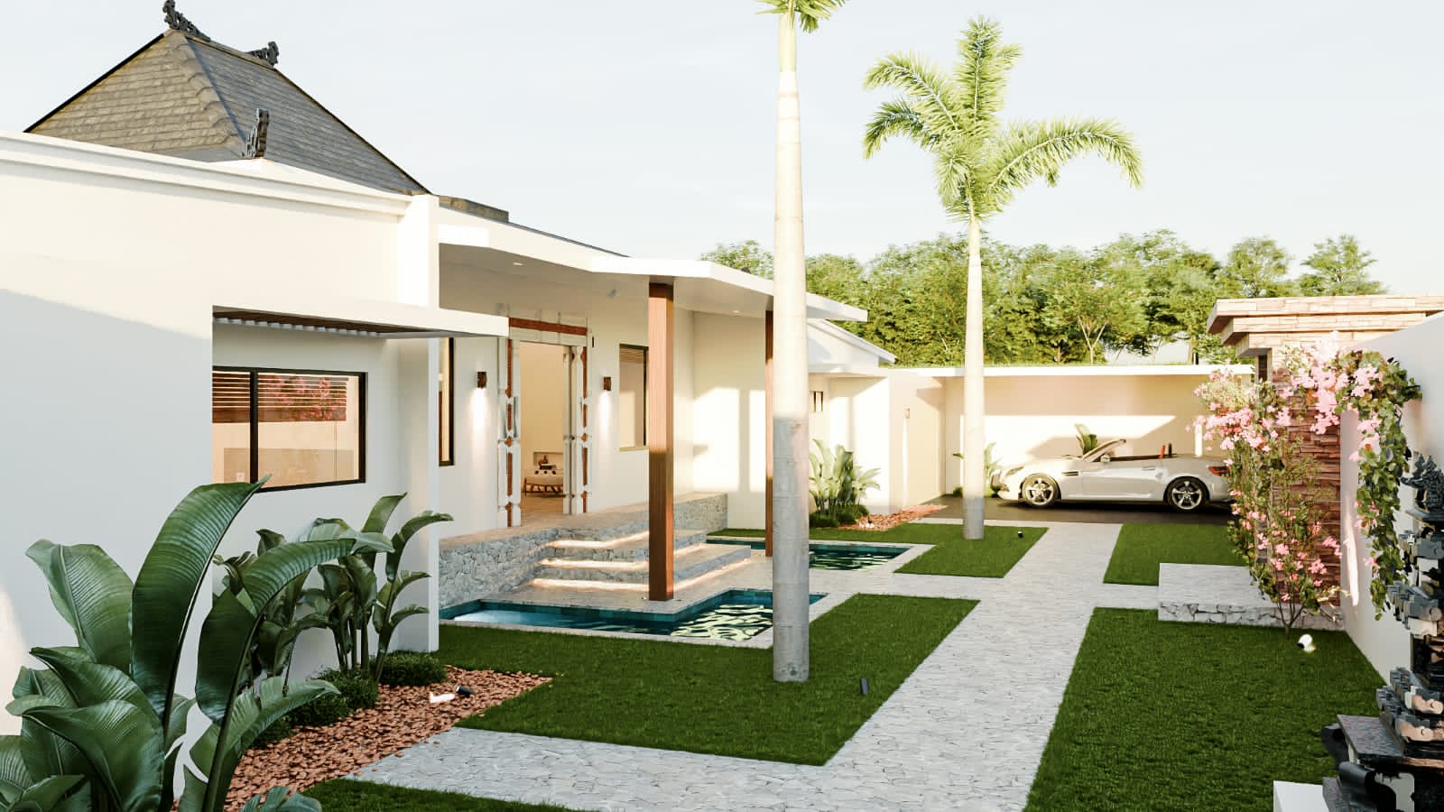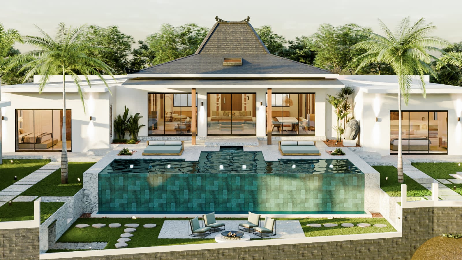 This haven of sophistication showcases a contemporary-luxurious Balinese Joglo design, featuring 3 opulent bedrooms and 5 bathrooms within a sprawling 1000 sqm of land and a meticulously crafted 415 sqm building, over 300 sqm of garden and a private access road. The expansive living room, kitchen, and dining area offer not just spaces, but redefine elegance.
