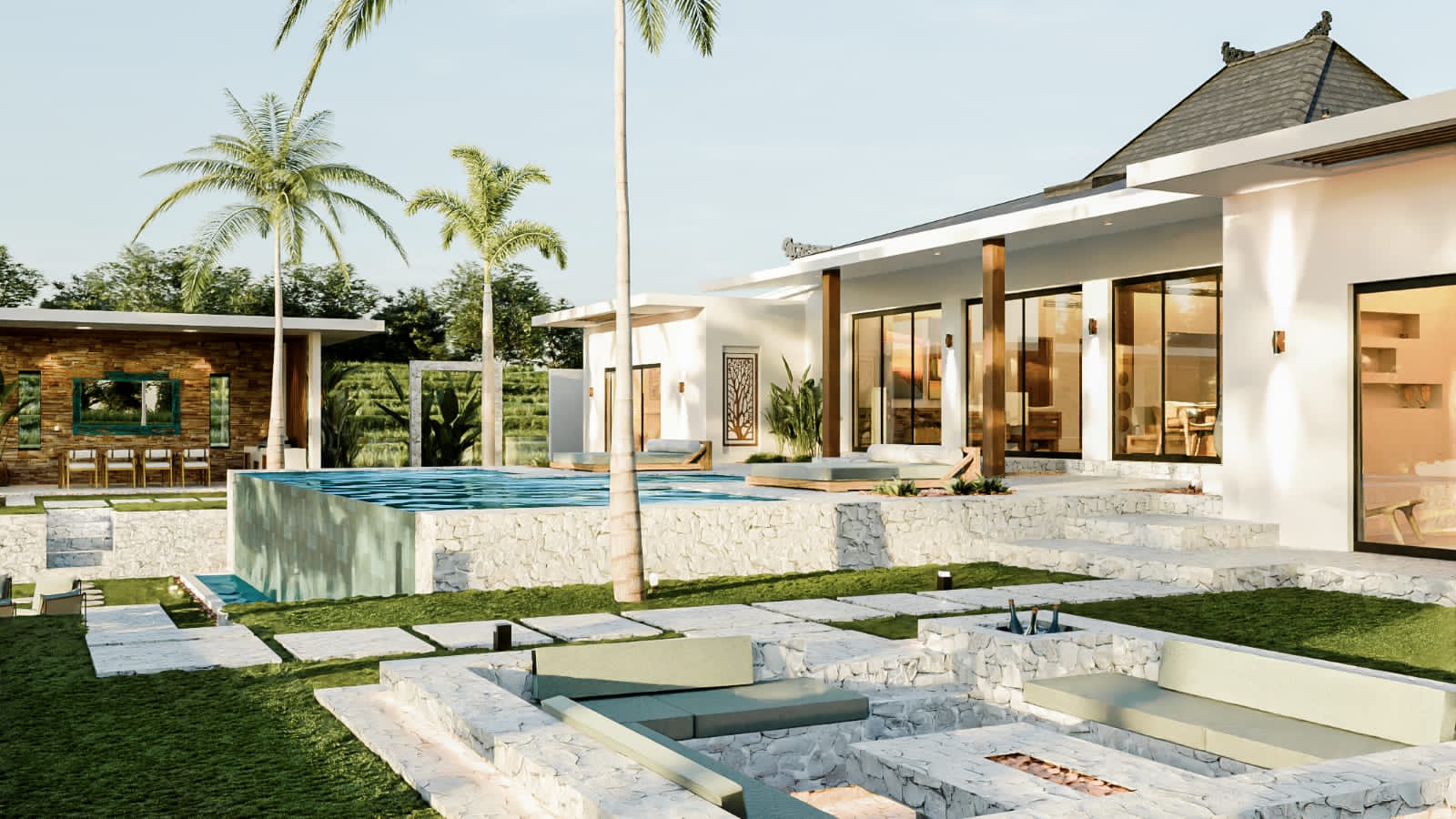 Elevating the experience, this villa presents an unparalleled panoramic view of lush rice fields on the front and sides, coupled with the serenity of a verdant jungle at the back. The allure extends beyond the interiors, as the outdoor haven boasts a glistening swimming pool, a chic BBQ area, and an outdoor sunken area that beckons for moments of relaxation.