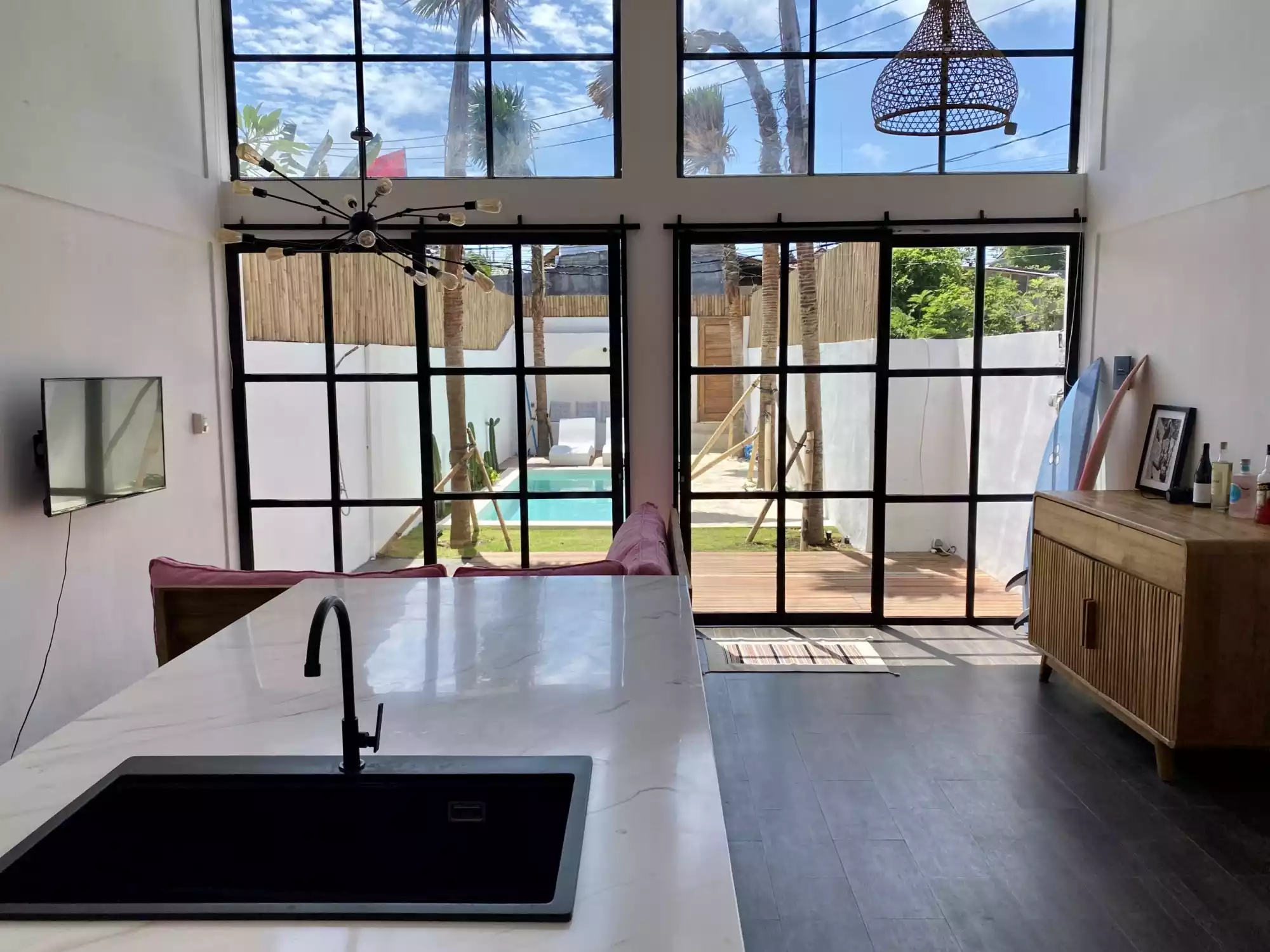When you think of Uluwatu, there is no better location than the trendy neighbourhood of Bingin. The modern design with mediterranean vibes of this 2 bedroom loft has a lot to offer in terms of space management and design.