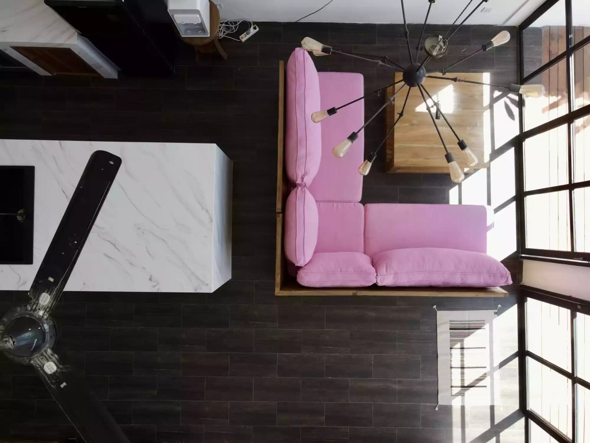 The space management an open living room and kitchen