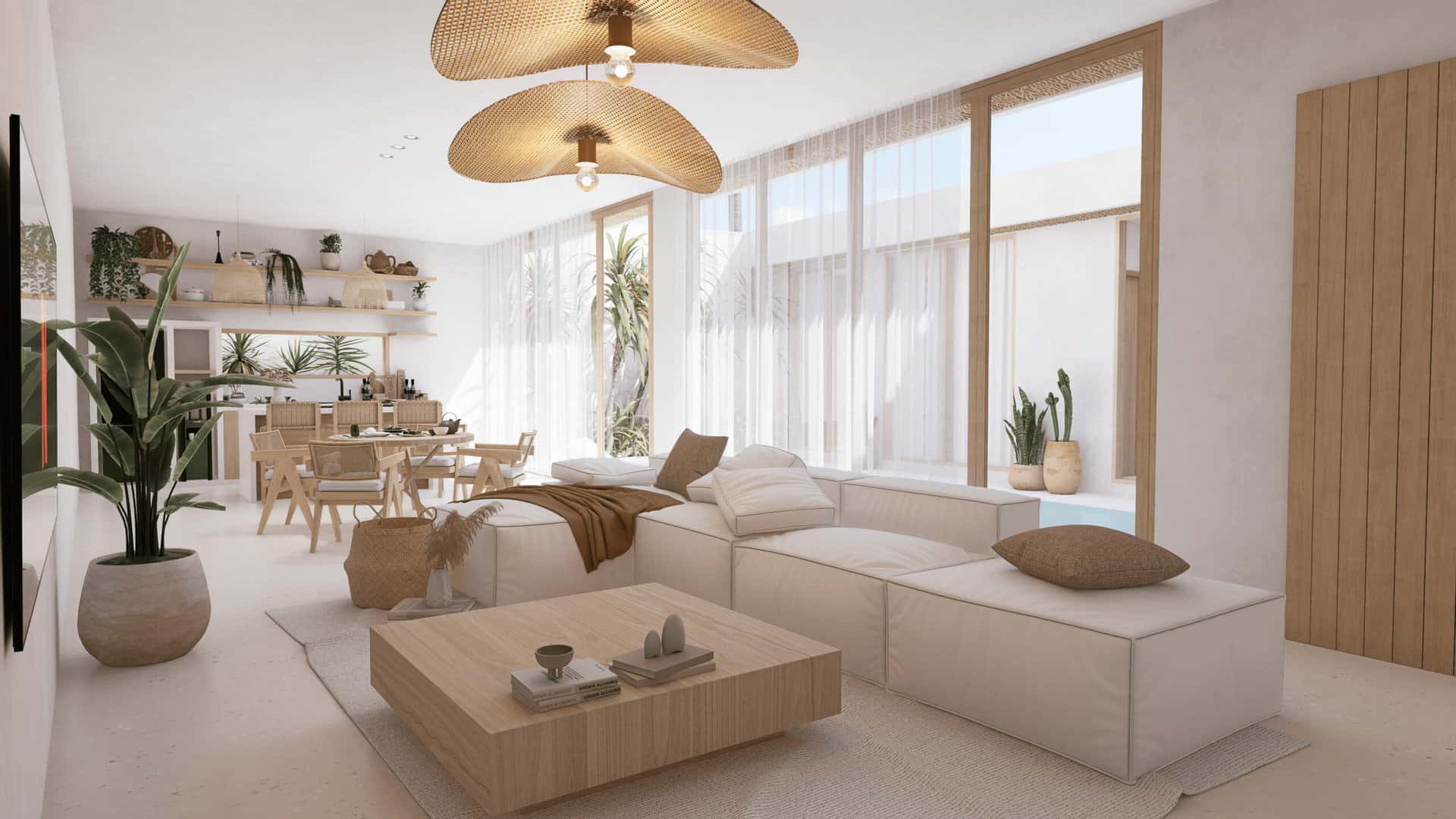 - Contemporary Design: As you step into this contemporary oasis, you’re greeted by minimalist design adorned with touches of warmth from wooden furnishings against a backdrop of pristine white interiors. This fully furnished modern villa offers an exquisite blend of luxury and comfort.