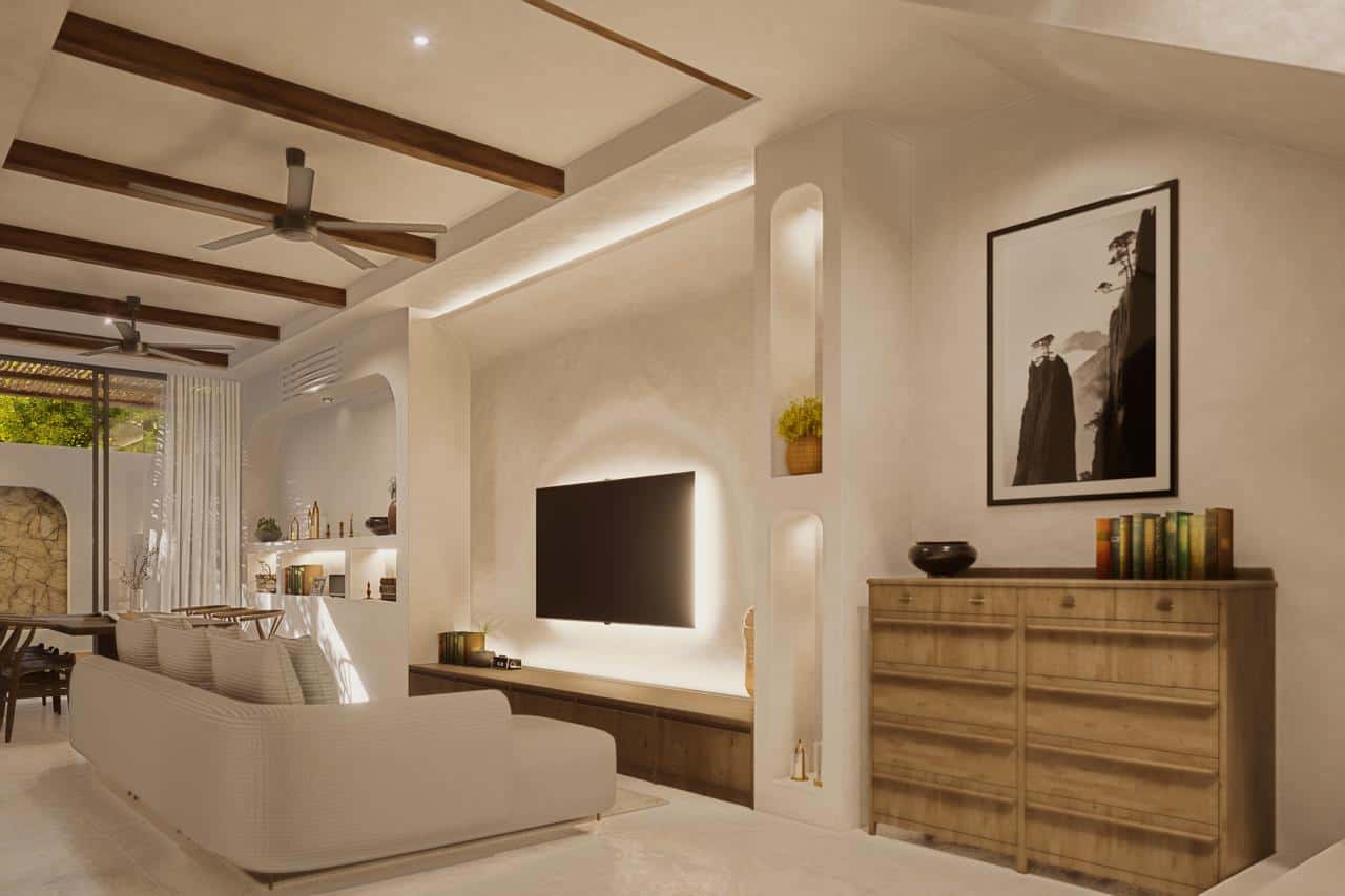 - Outdoor Oasis: Sliding doors open to a private pool and a sunken lounge area with plush sofas, ideal for relaxation and social gatherings.
