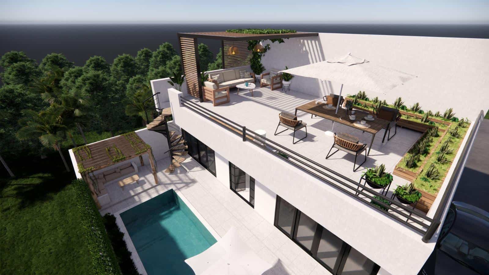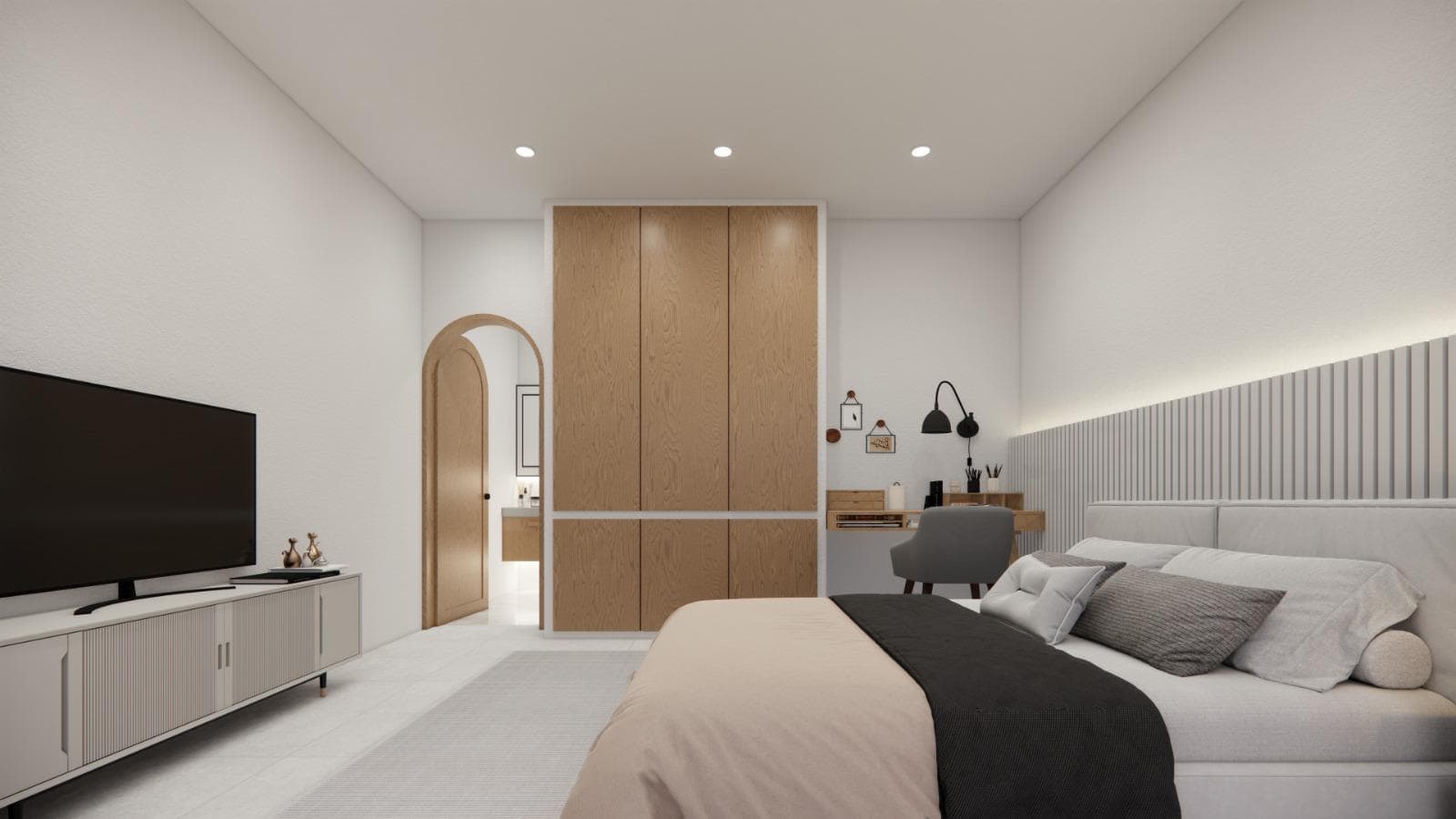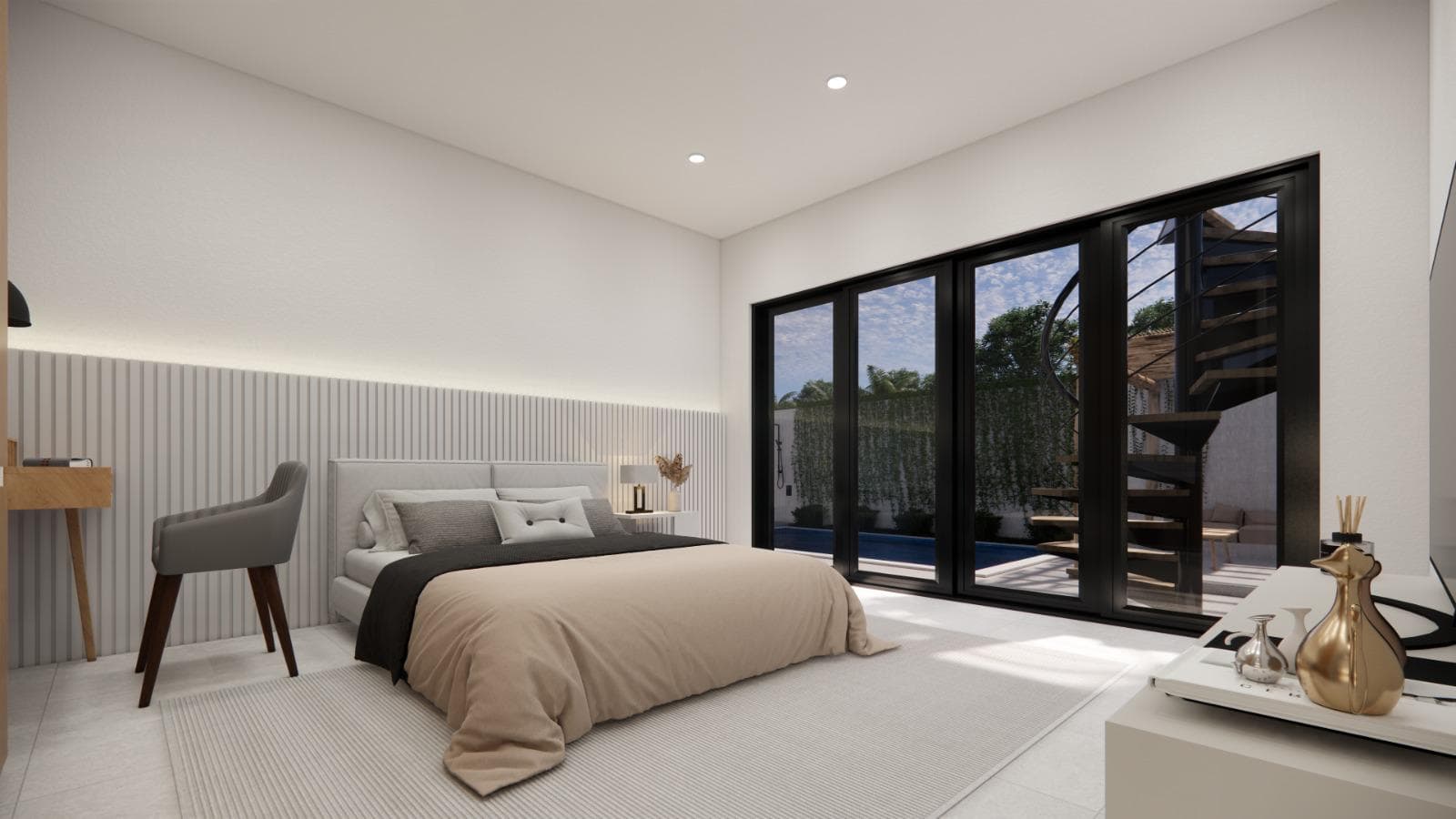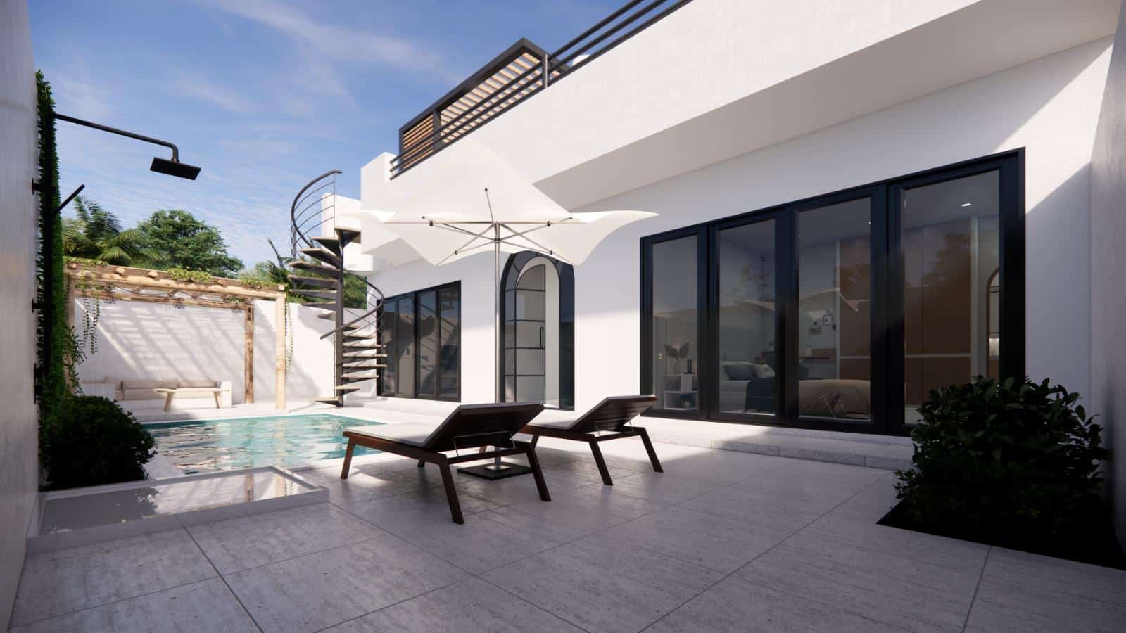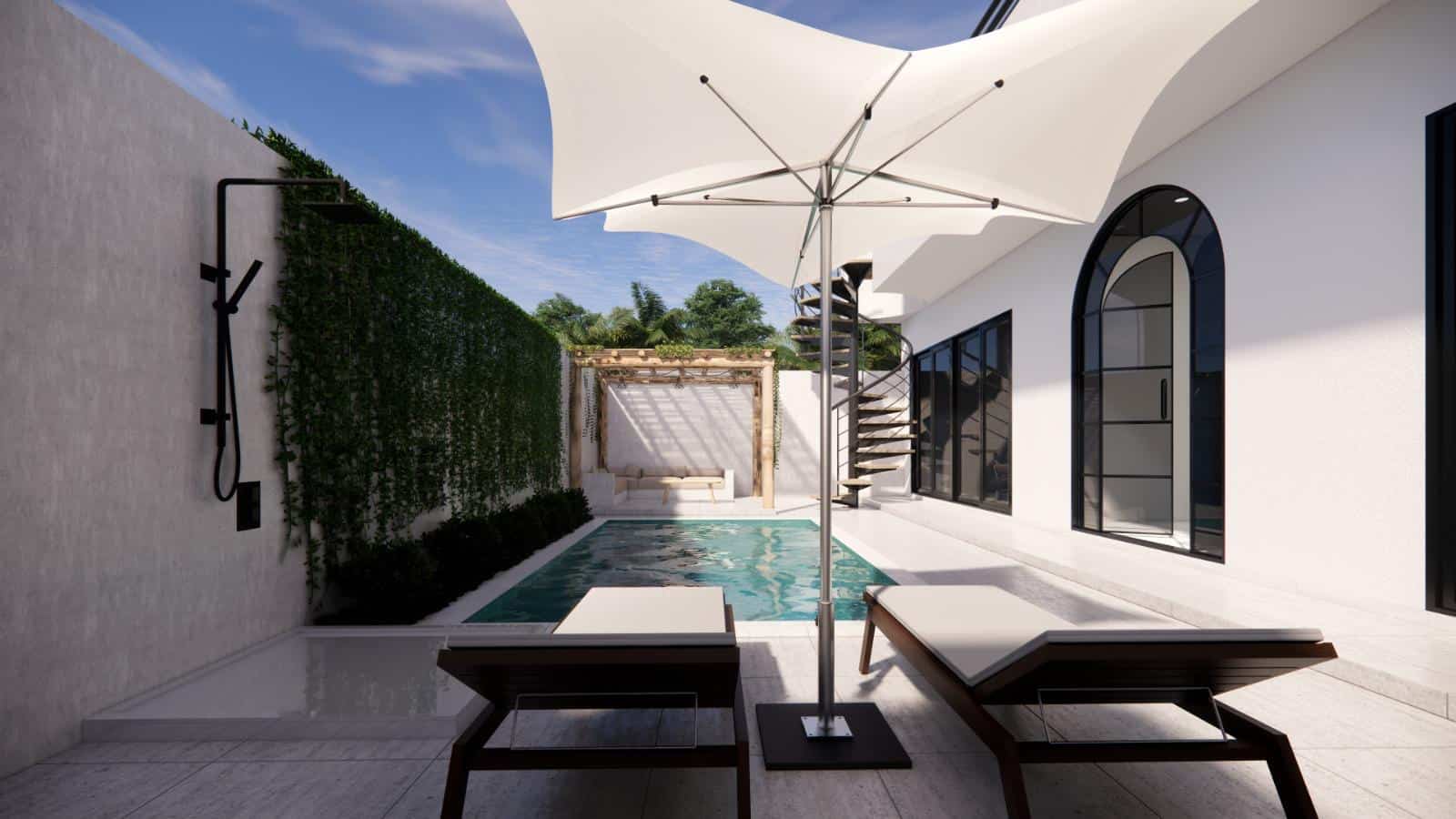 - Luxurious Amenities: Includes 2 bedrooms with en-suite bathrooms, a spacious enclosed living room with a kitchen, and semi-furnished amenities, including a pool pergola.