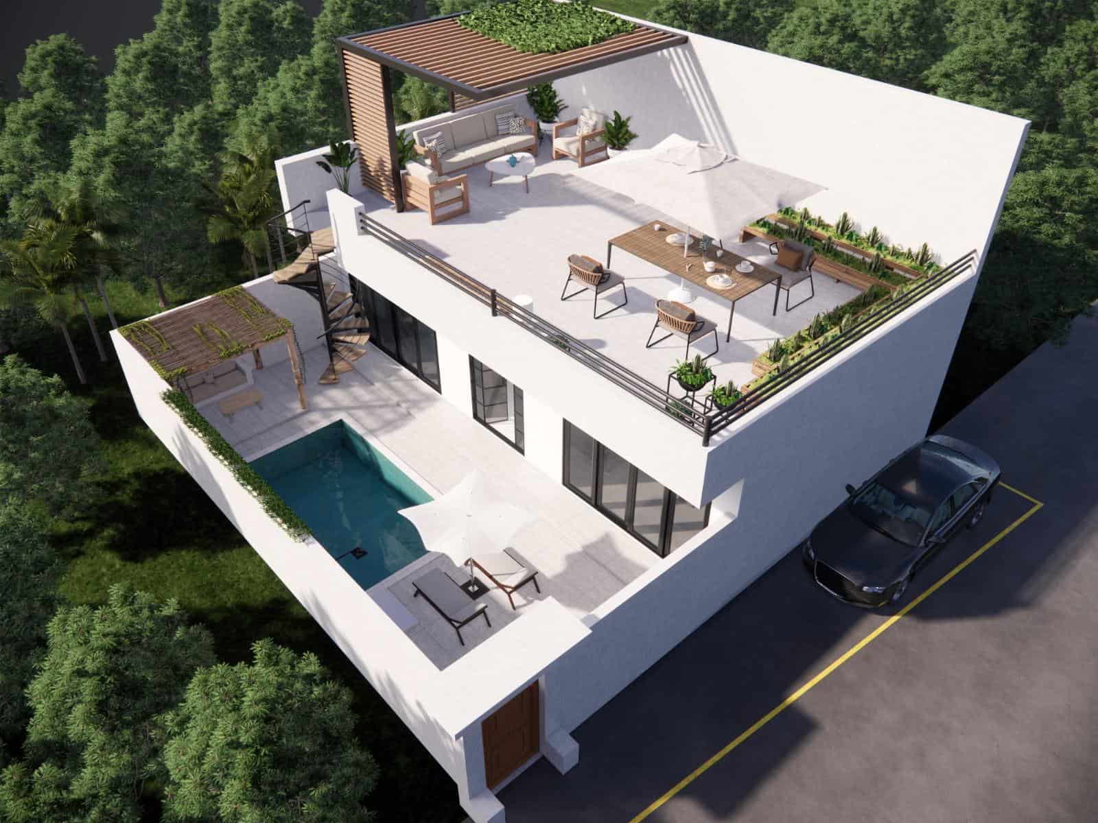 - Modern Tropical Design: The villa boasts a land area of 125 sqm and a building size of 66 sqm, featuring a sleek modern design that blends seamlessly with its tropical surroundings.