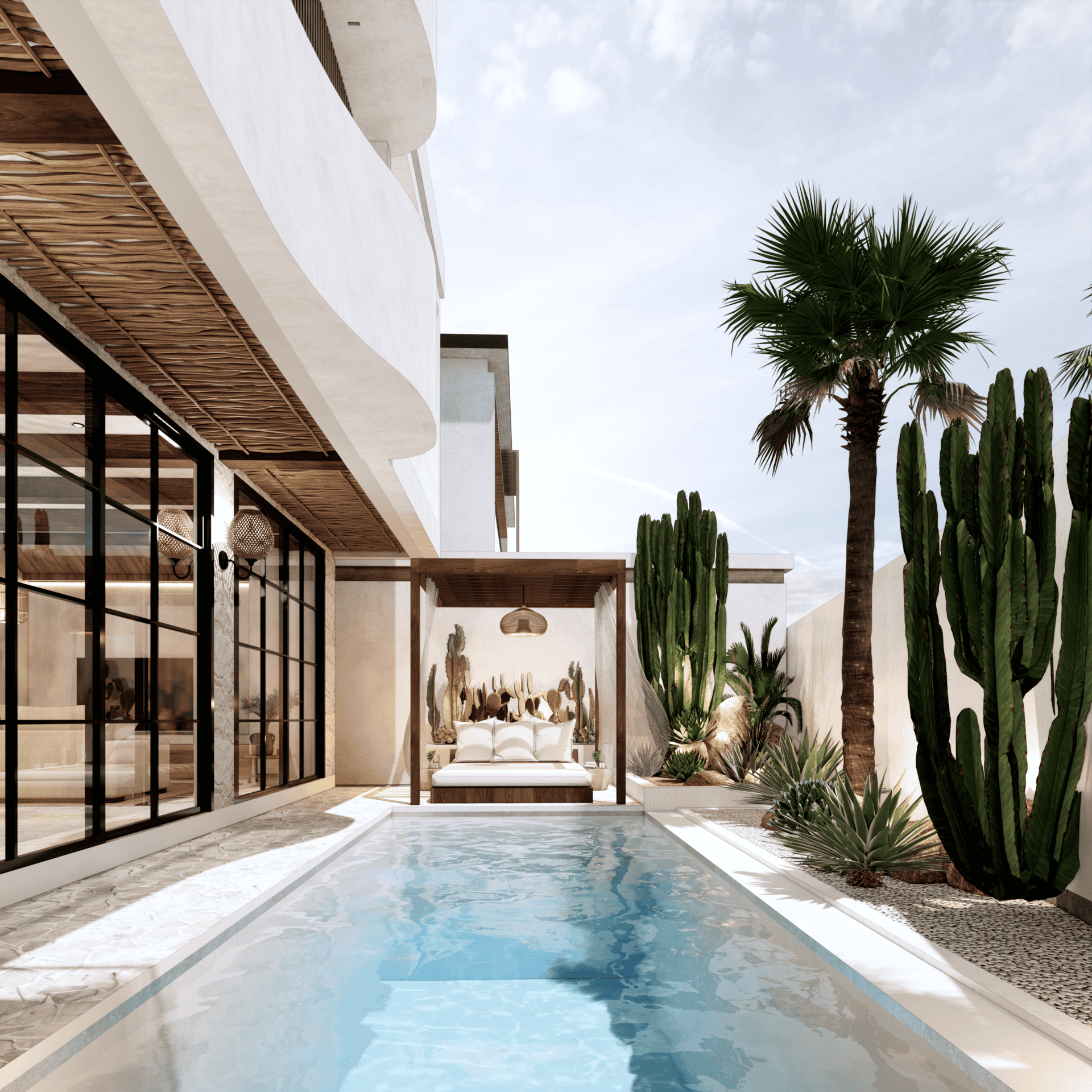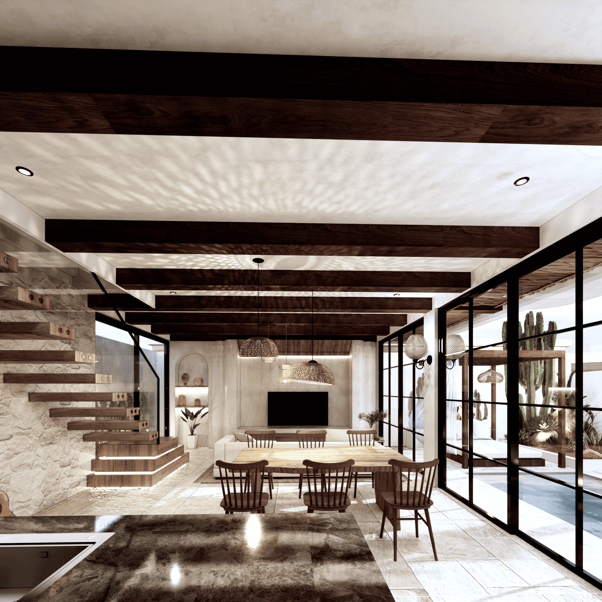 - Warm and Sophisticated Interiors: The sleek, modern Mediterranean design brings a unique touch of warmth and sophistication to every space in the villa. Every detail is carefully thought out to offer an exceptional residential experience, where comfort and Mediterranean style blend with timeless elegance.