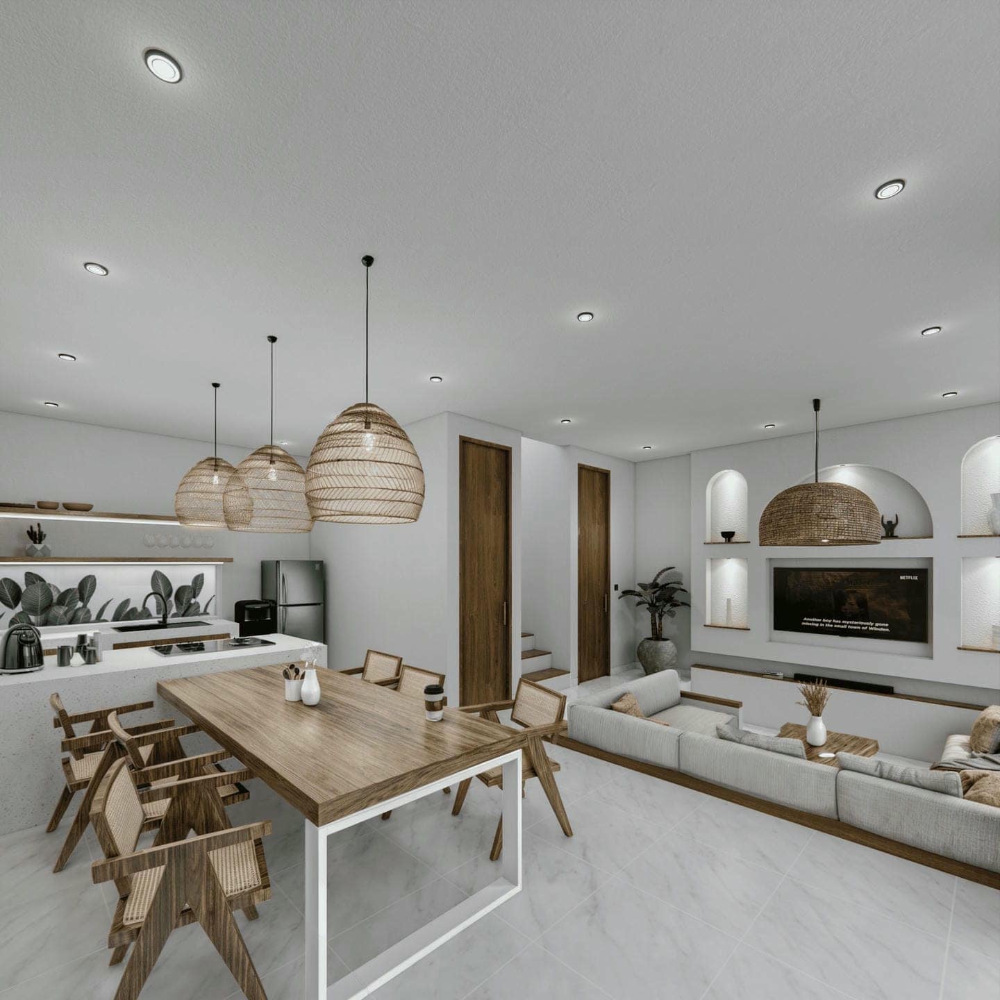 This villa in Ungasan, Uluwatu, offers a perfect blend of minimalistic and Mediterranean design, located just 3 minutes from Karma Beach, and 8 minutes from Melasti Beach, Savaya, and Green Bowl Beach.