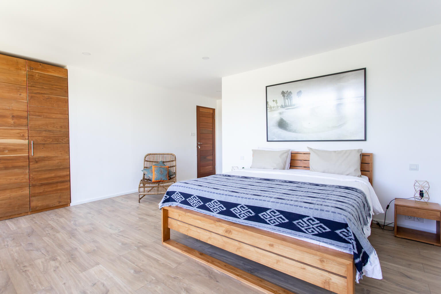 This contemporary two-story villa is bathed in natural light, accentuated by floor-to-ceiling windows gracing every room. With two well-appointed bedrooms and two bathrooms, the villa is set on a 220-square-meter land. Upon entering this fully furnished villa, you’ll discover a fully equipped kitchen adorned with white interiors seamlessly integrated with wooden furnishings. For your utmost comfort, the villa is also equipped with air conditioning and a water heater.