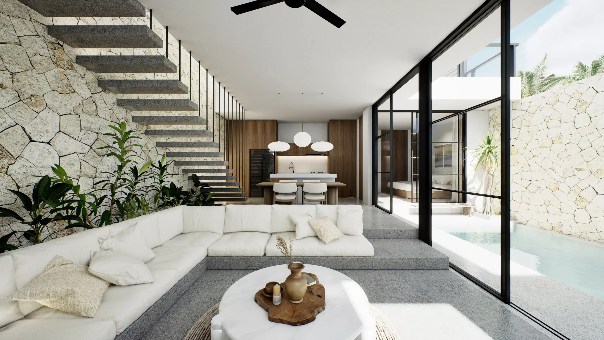 - Open Living Spaces: Immerse yourself in luxury as the open living spaces amplify the connection with nature, featuring a fully equipped kitchen and floor-to-ceiling windows that open up to the outdoors.