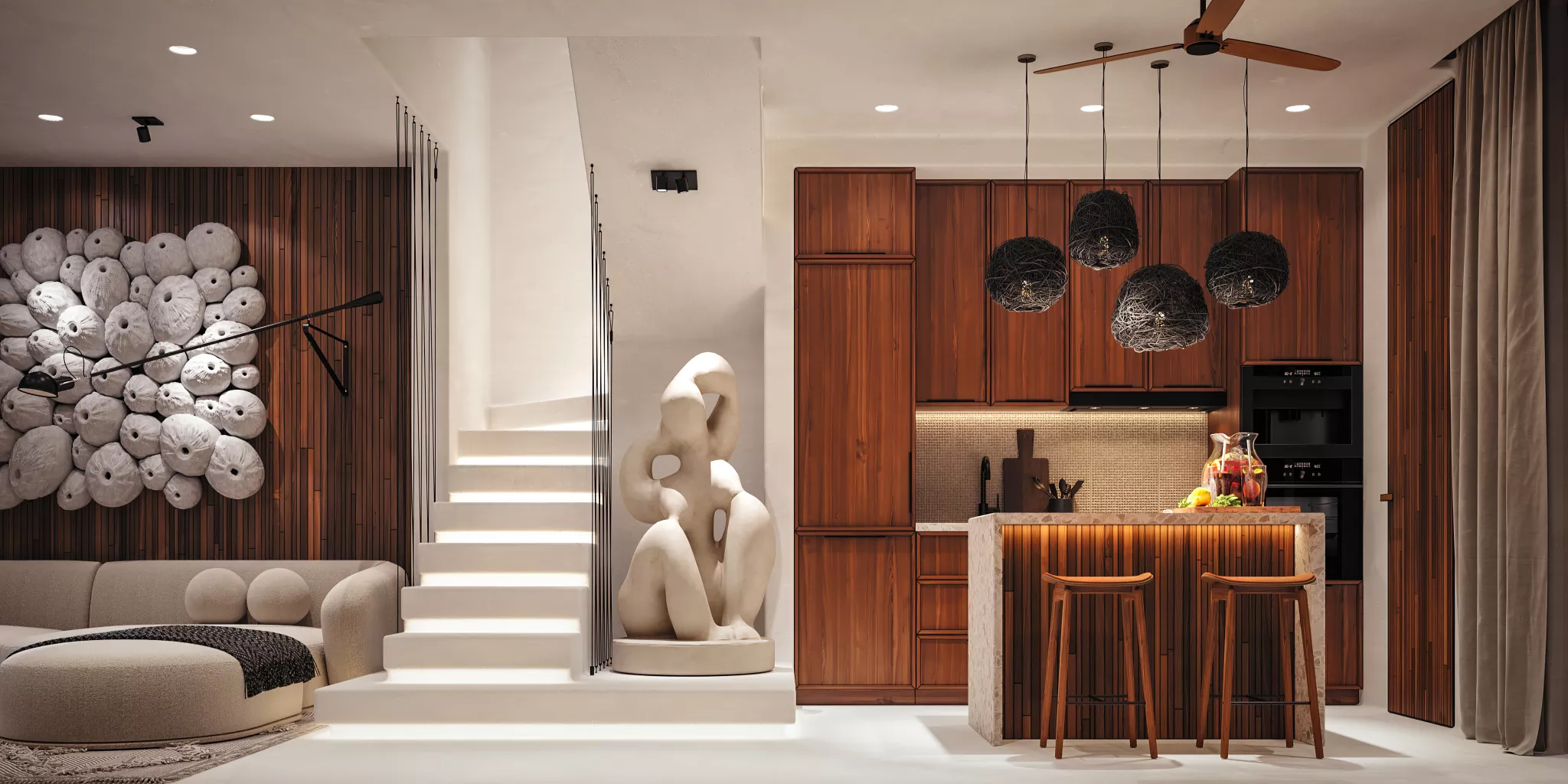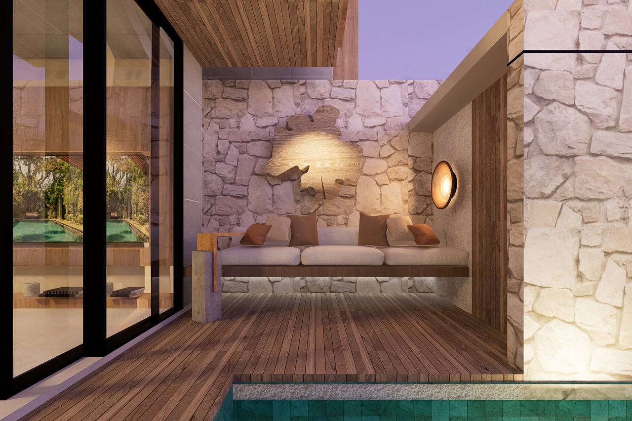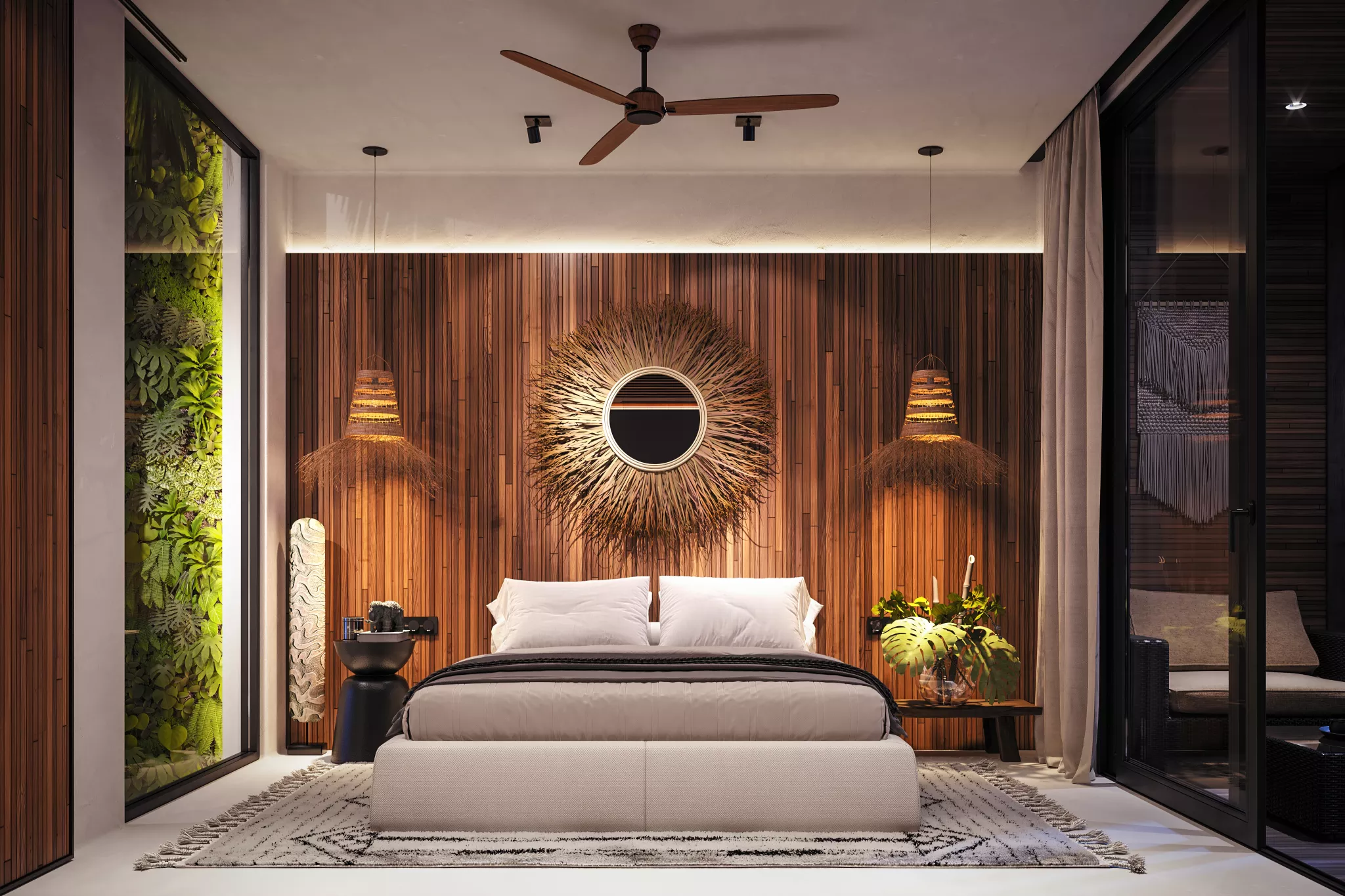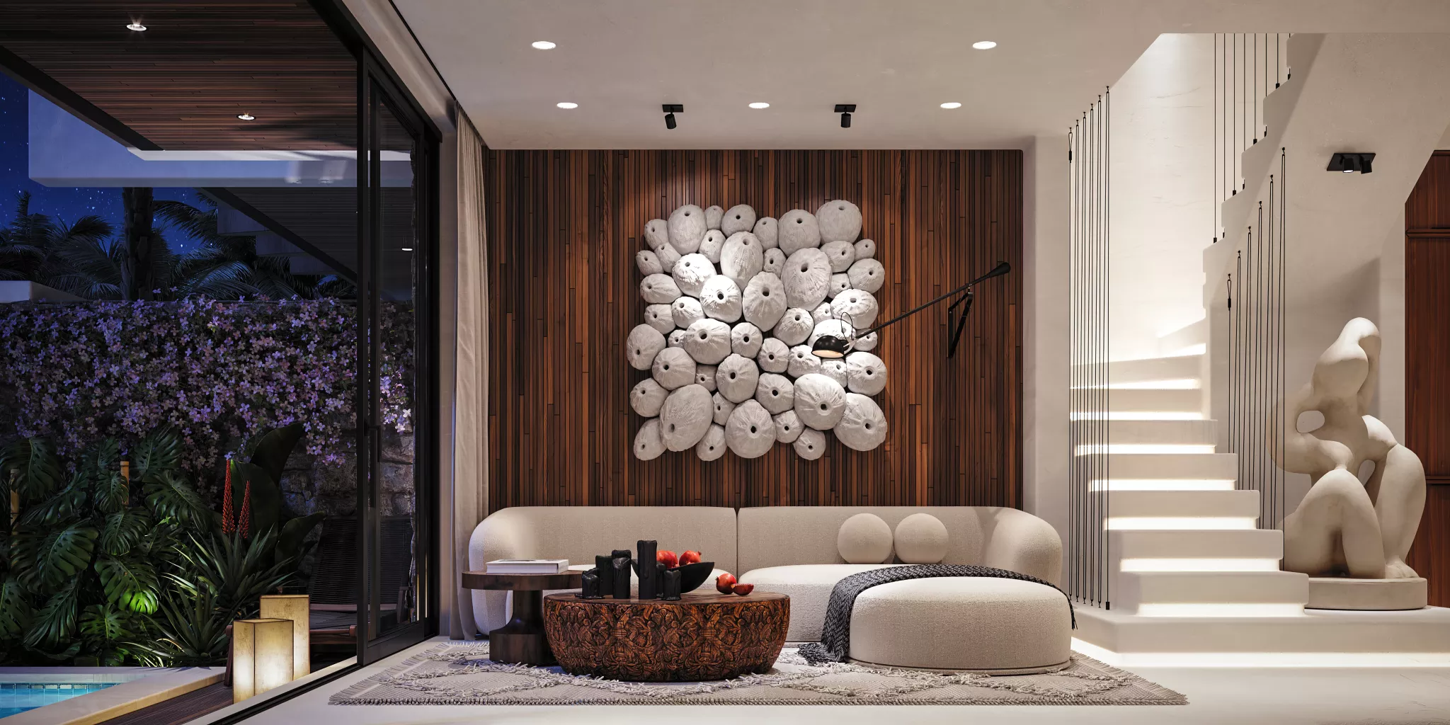 The villa’s design is a masterpiece of modern tropical elegance, featuring robust wooden accents that add a touch of sophistication. Boasting a generous 108 sqm land area and 112 sqm building size, this two-story sanctuary comprises 2 bedrooms, 3 bathrooms, a stylish wardrobe area, a spacious living room, a well-appointed kitchen and an inviting dining space.