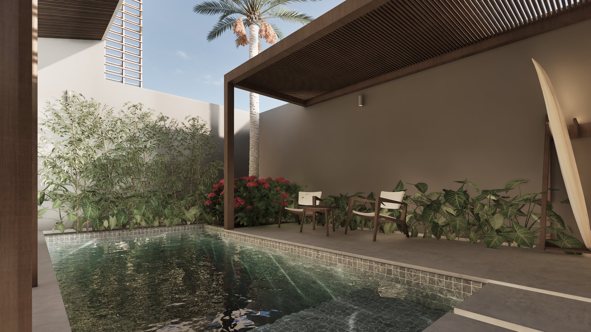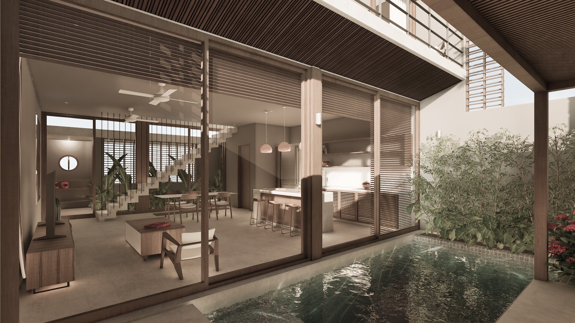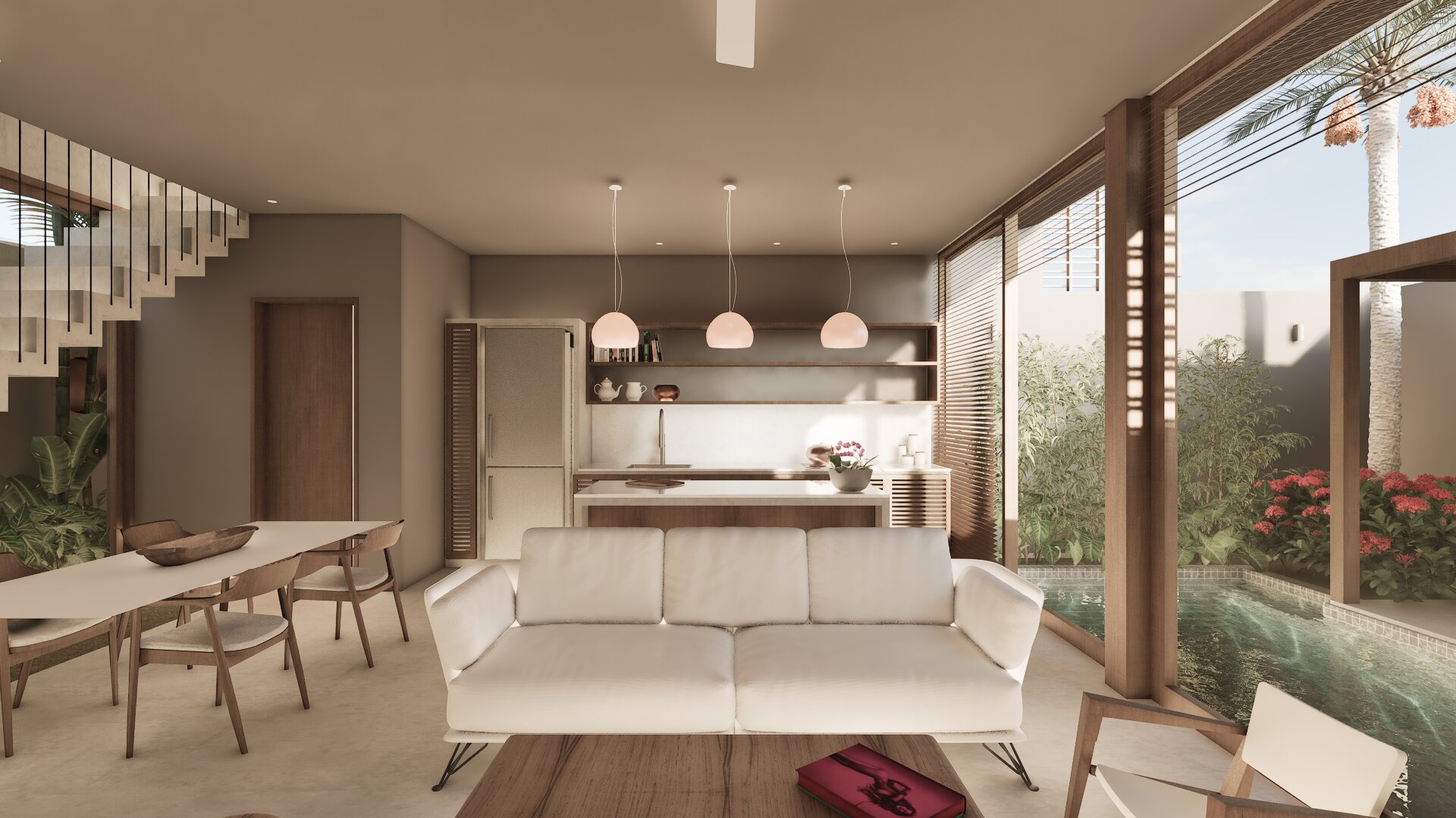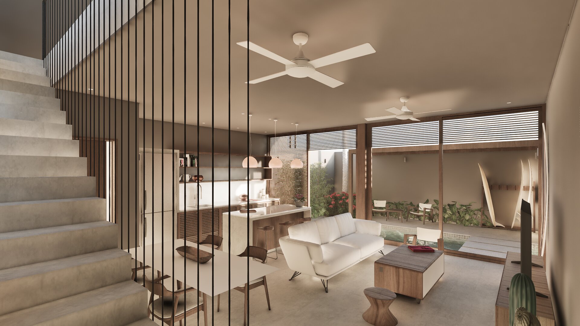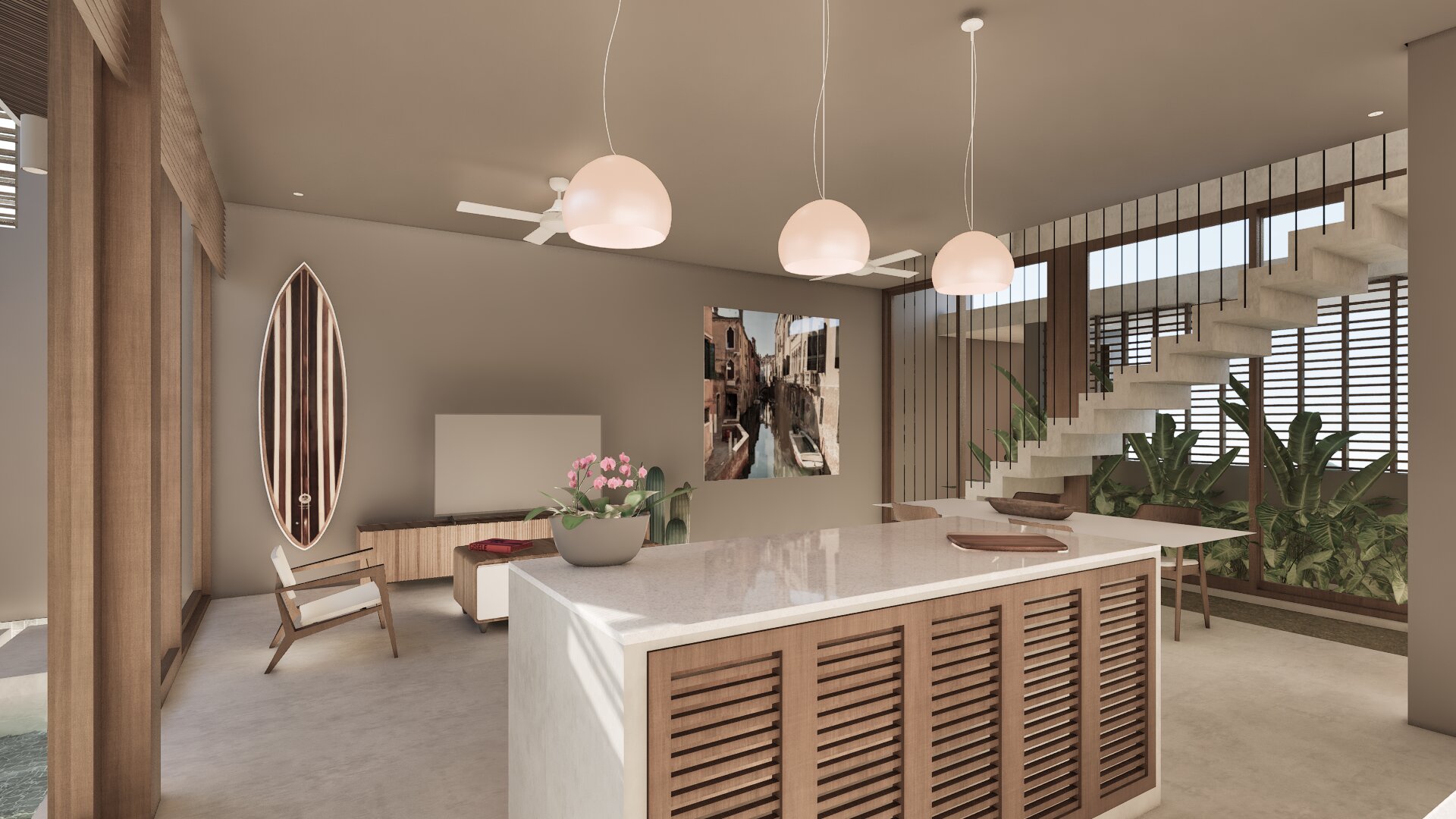 The proximity to the beach The modern tropical design