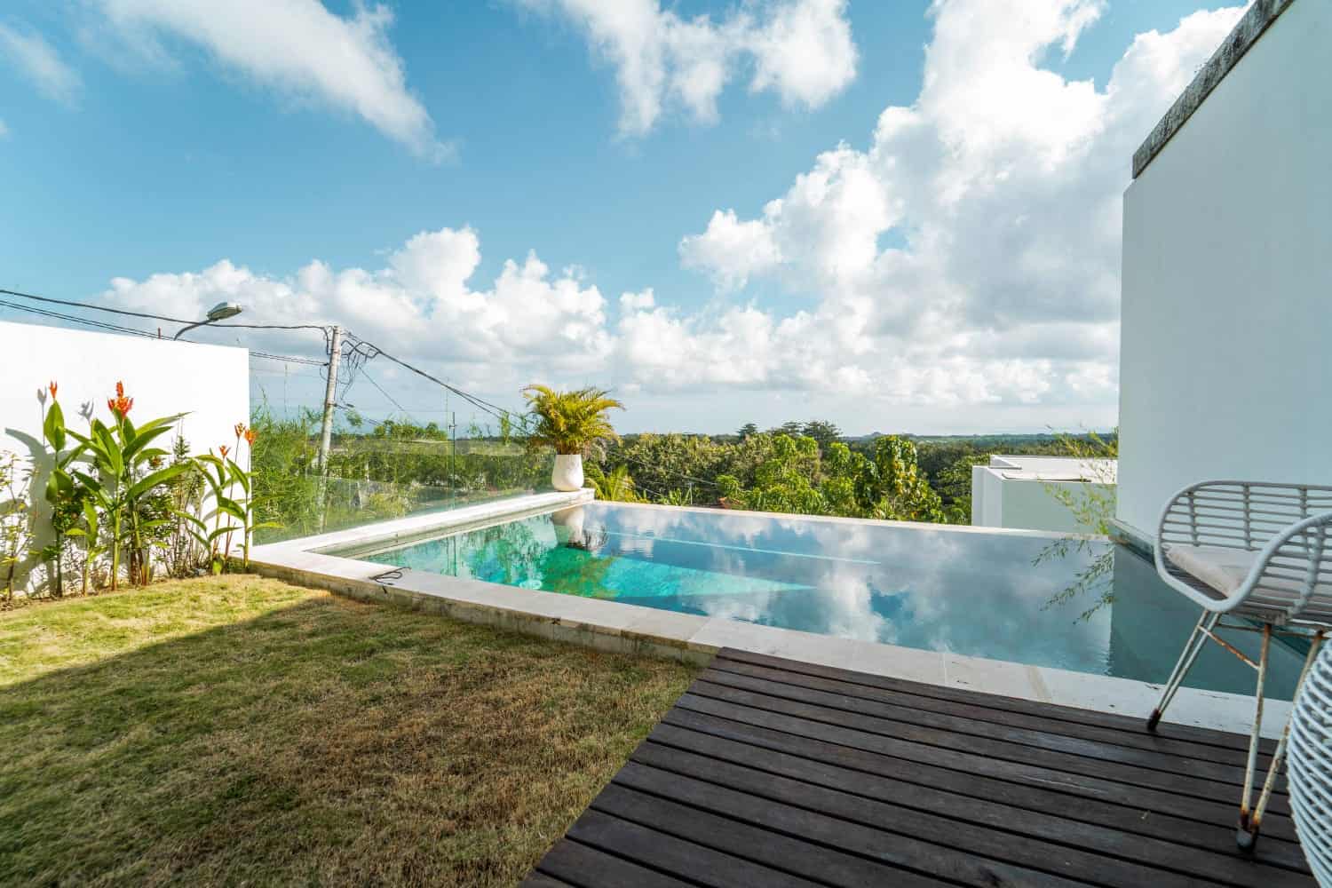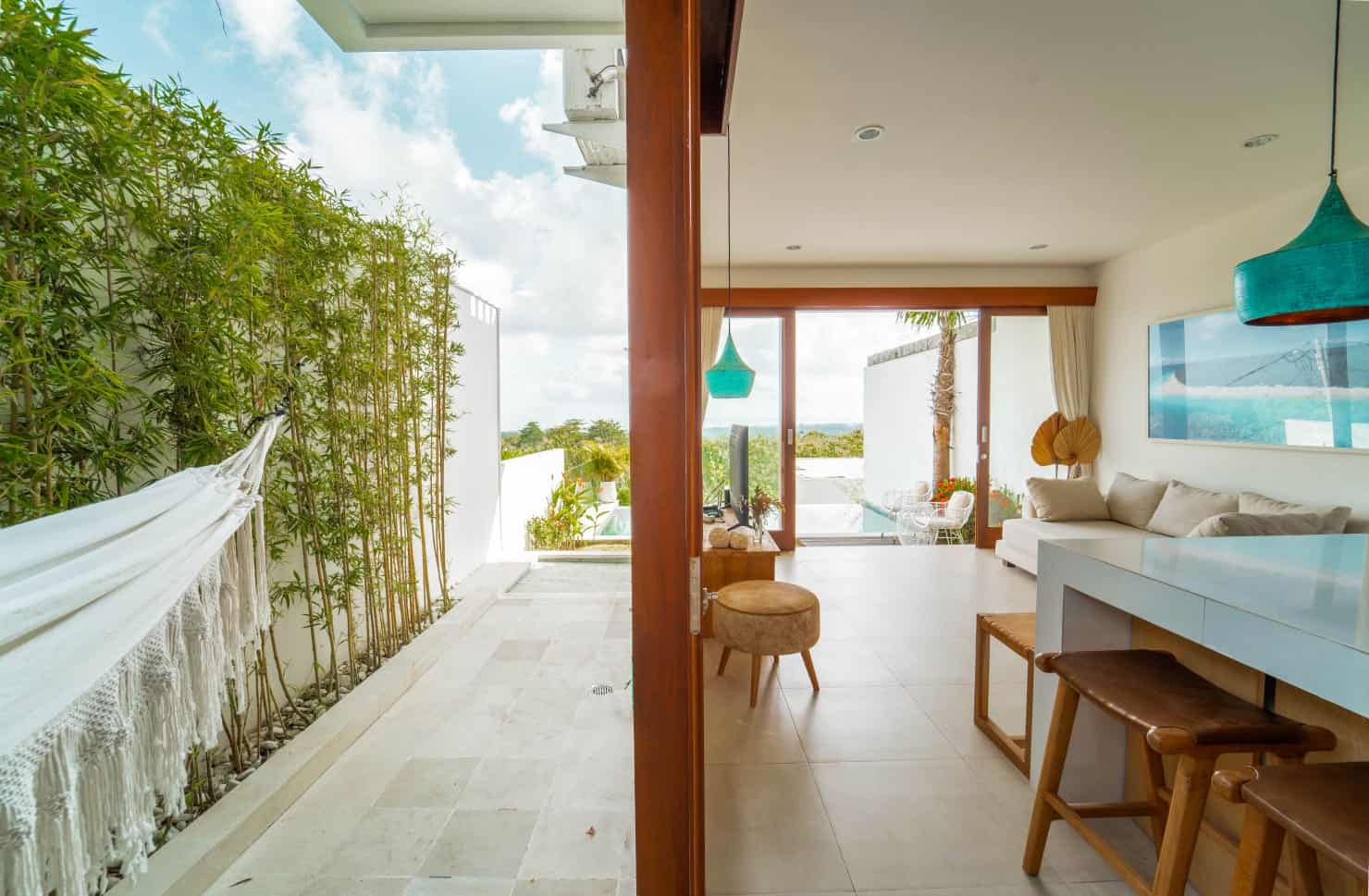This villa boasts a mesmerizing cliffside location, providing the guests with an ocean view. It spans 100 sqm of land with a spacious 180 sqm build. Its cozy living spaces with modern design adds a tropical touch, infusing timeless elegance with modern comfort.