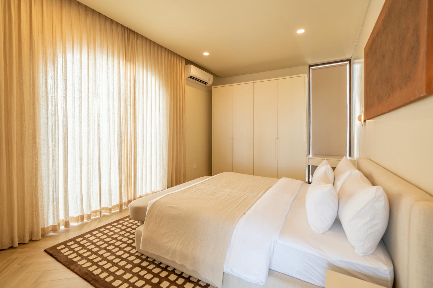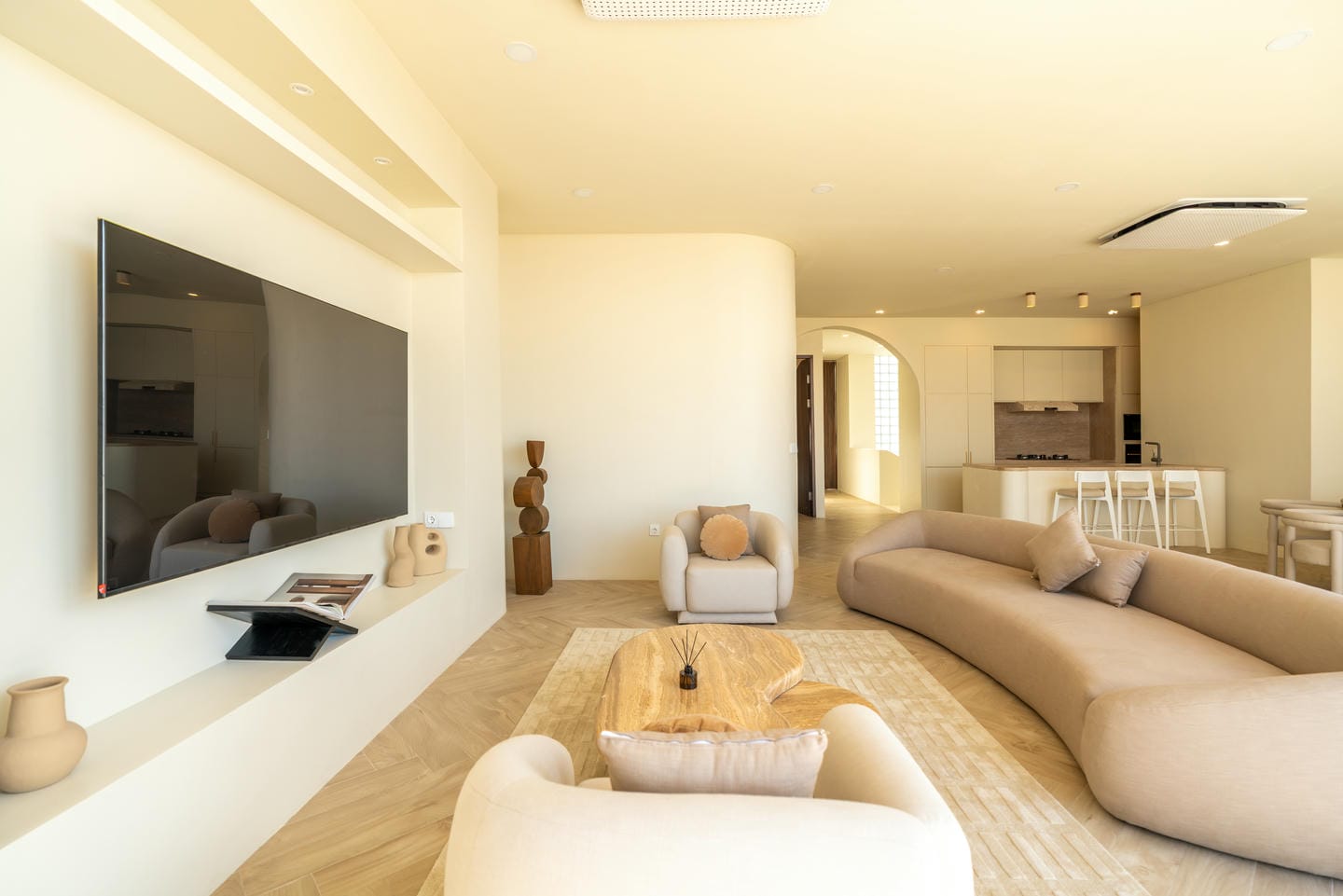 This European-designed, fully furnished villa features four bedrooms, each complete with wardrobes and ensuite bathrooms. Practical amenities include an additional guest bathroom and a fully equipped kitchen. The spacious open-plan living area effortlessly transitions into a dedicated entertainment zone, creating an inviting space for gatherings. Adding to its appeal, the villa includes a cinema room, perfect for private movie nights.