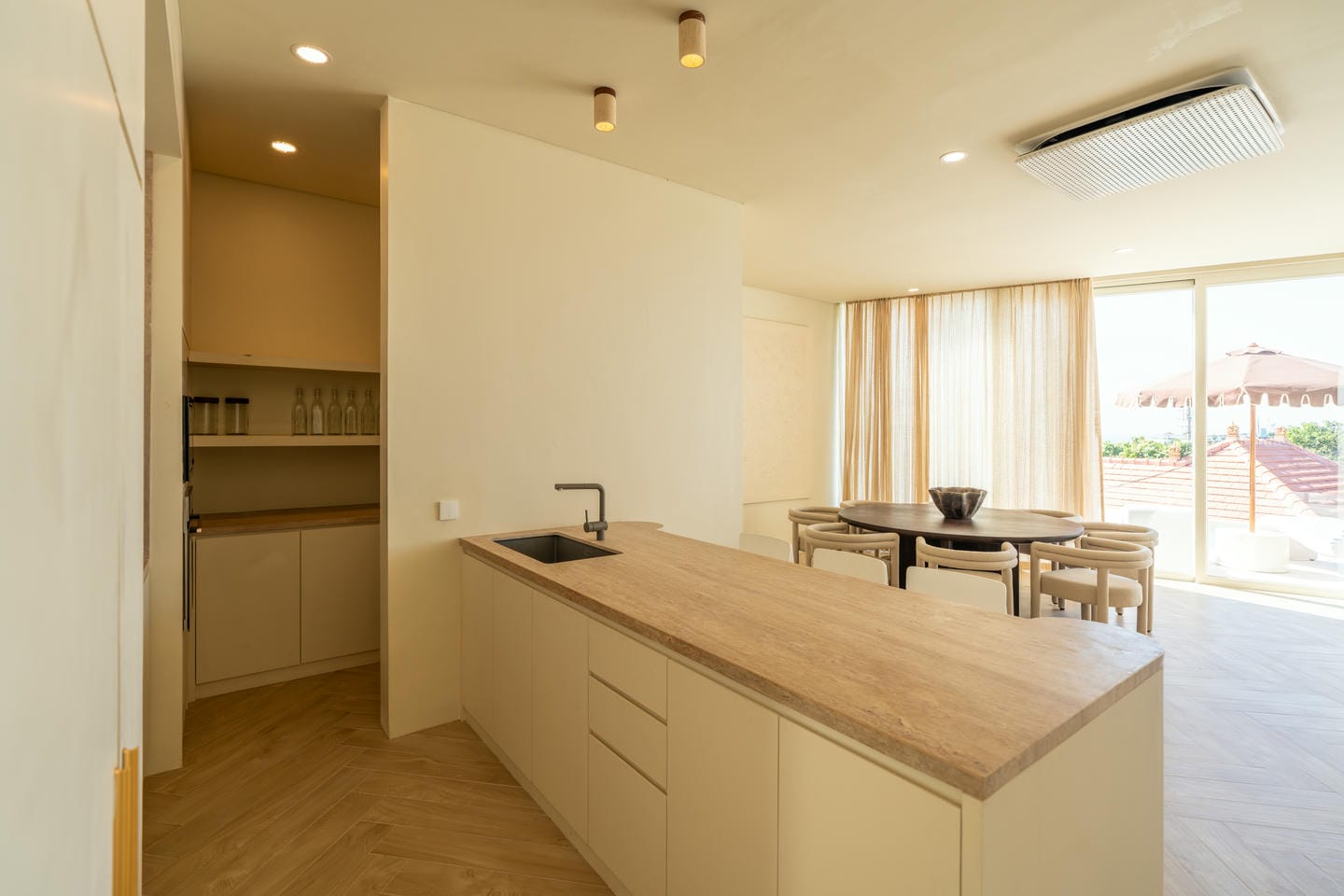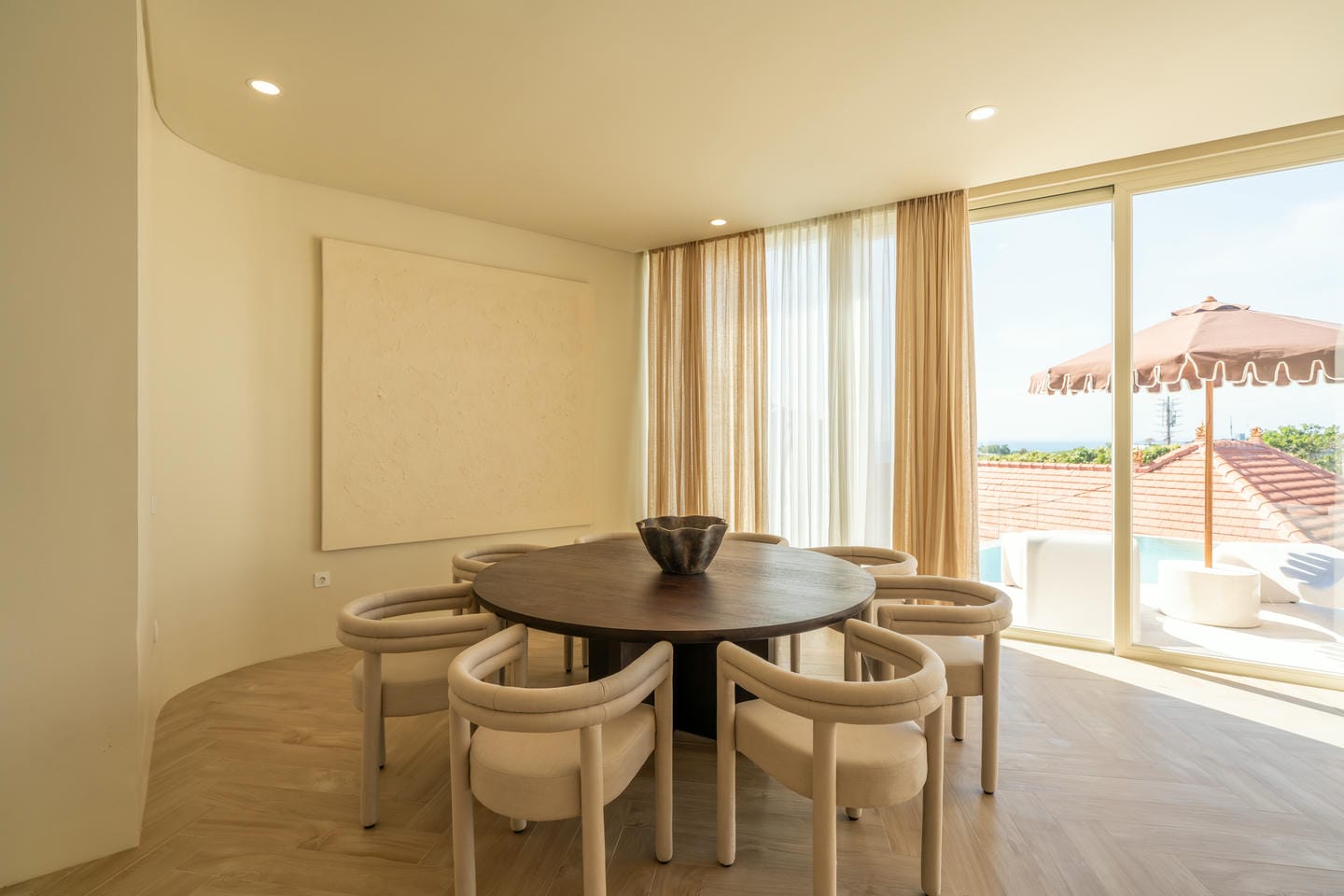 For outdoor living, the centerpiece infinity pool is complemented by breathtaking ocean views, providing a serene escape and a focal point for relaxation. The villa also includes a self-contained laundry room, ensuring that every need is met without compromise.