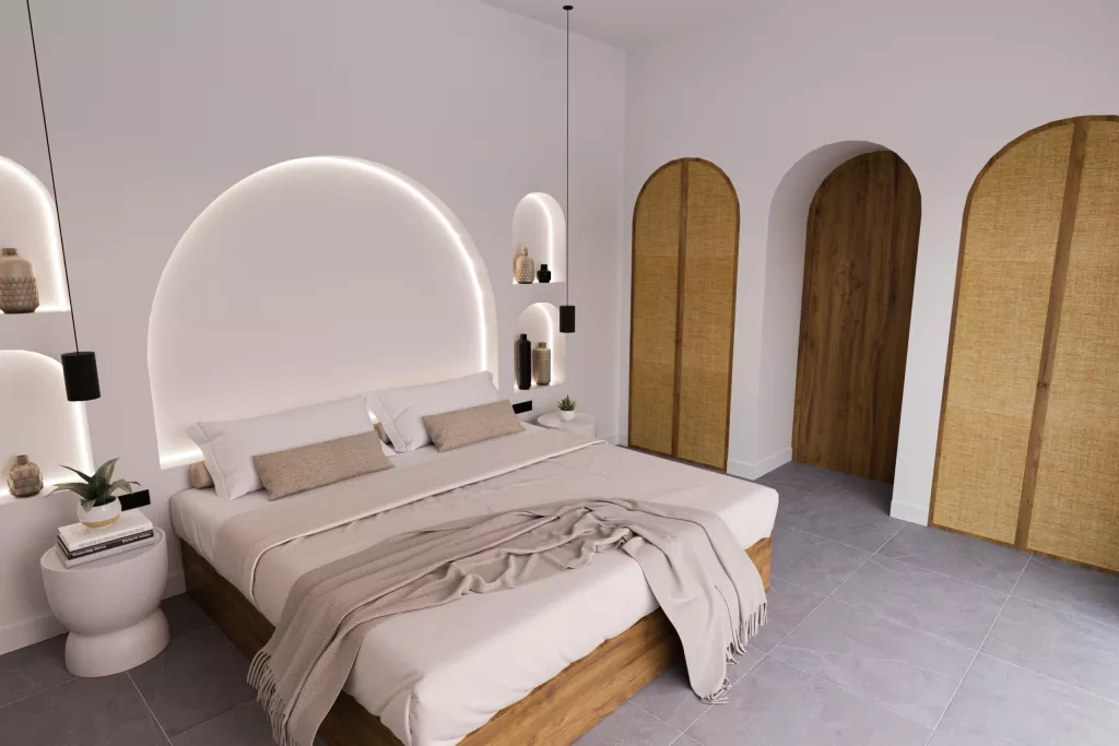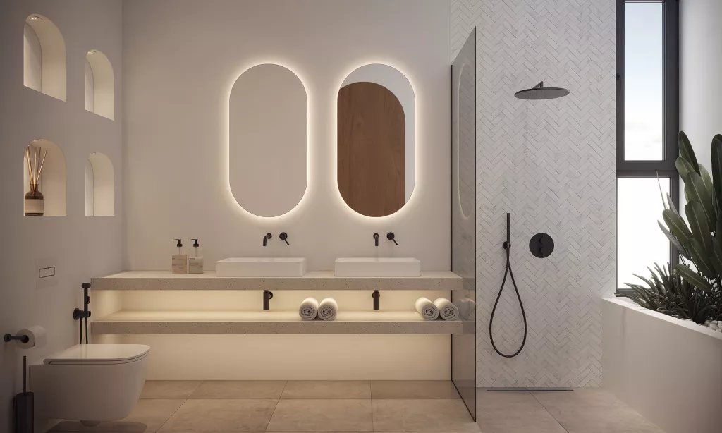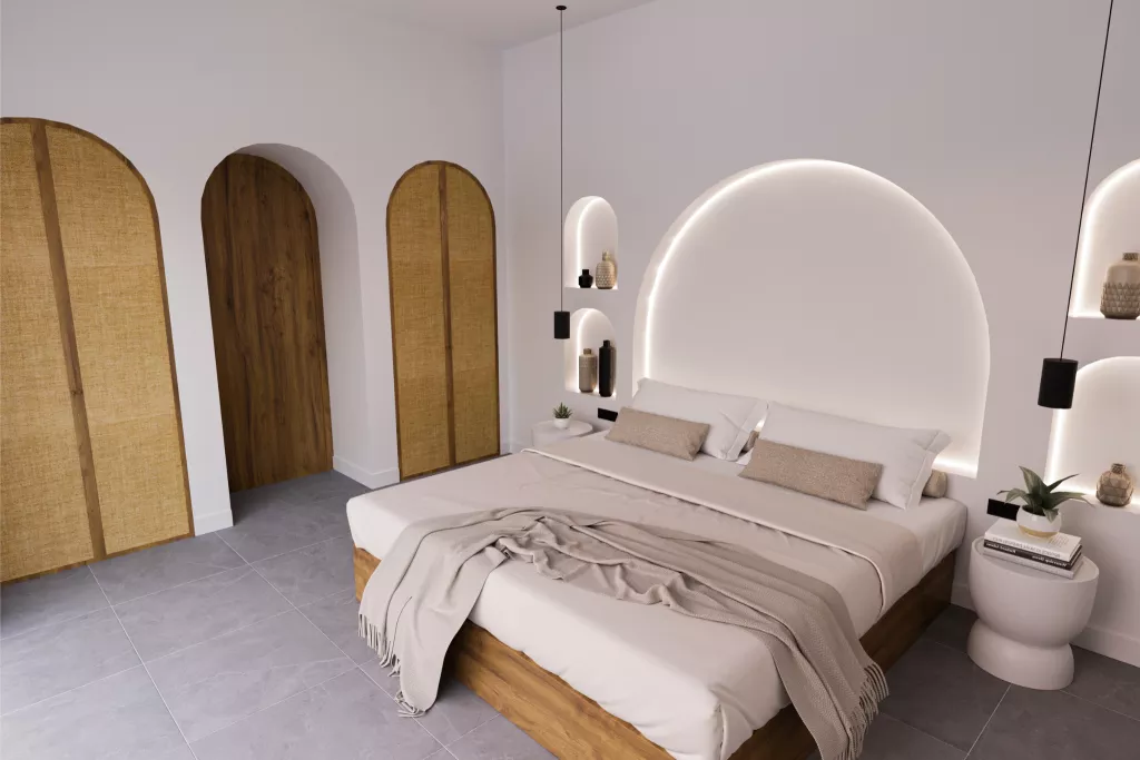 Boasting a sophisticated Mediterranean design, this two-bedroom, three-bathroom villa is a fully-furnished retreat. It features a fully equipped kitchen that beckons culinary adventures, a sunken sofa, and smart home features enhancing convenience and efficiency. The balcony offers sweeping views of the ocean and the iconic GWK statue, inviting you to picture yourself basking in sun-drenched glory or enjoying starlit evenings in the skylight bathrooms.Â
