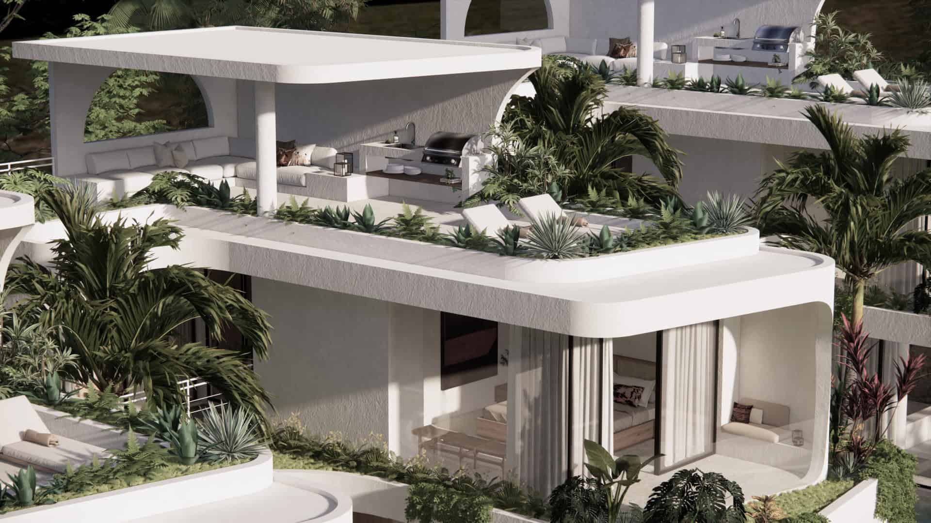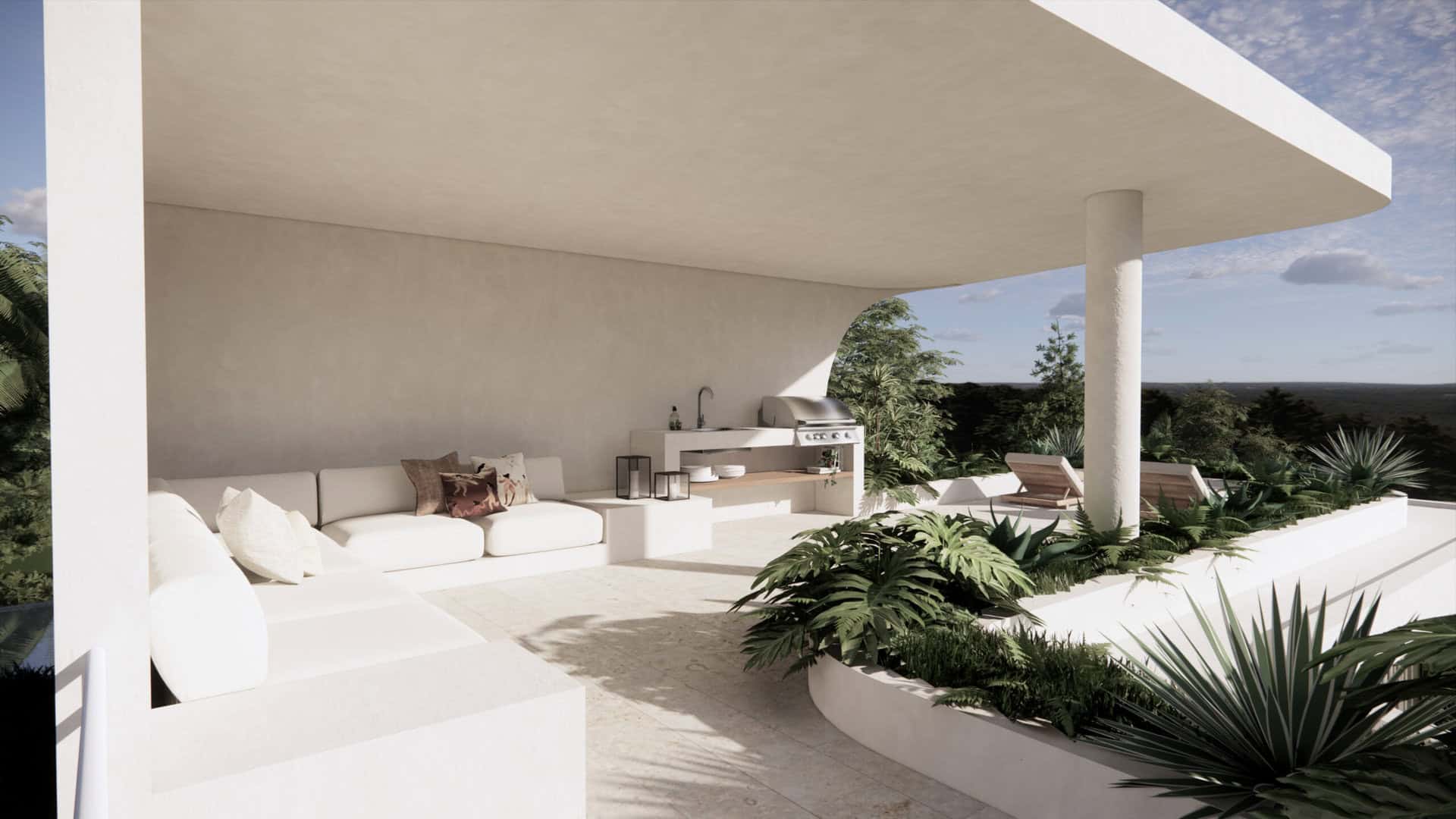 The terrace offers stunning views of the natural habitat and its reflections in the infinity pool. A highlight is a roof terrace with a shaded lounge + barbecue for memorable evenings under the stars!