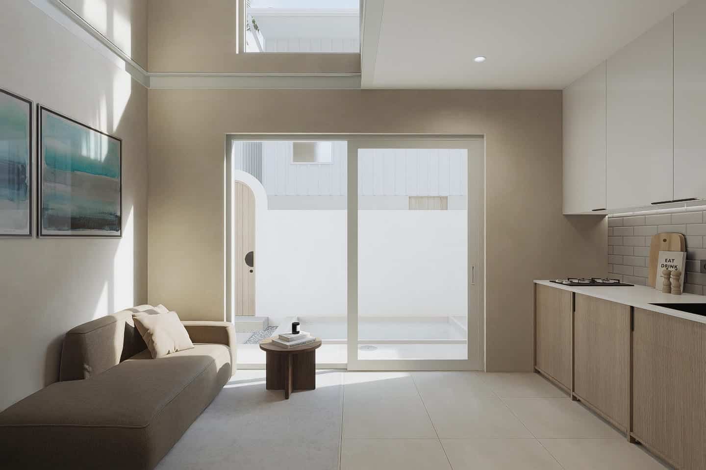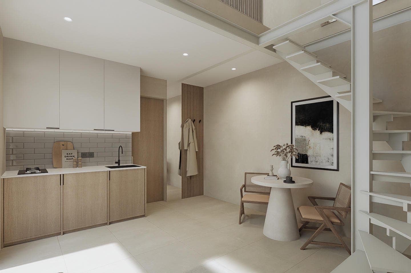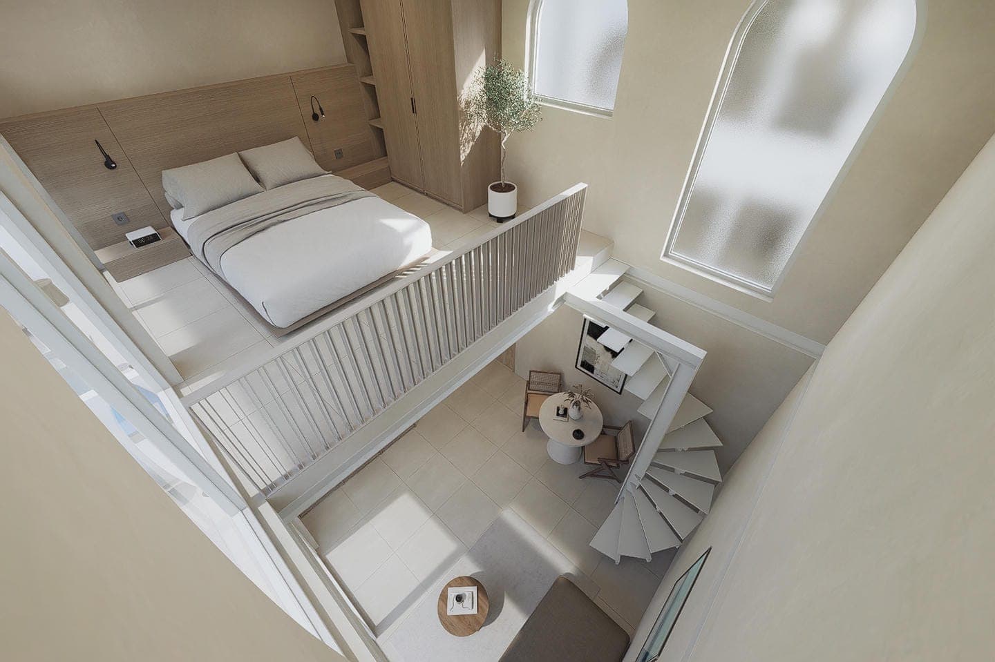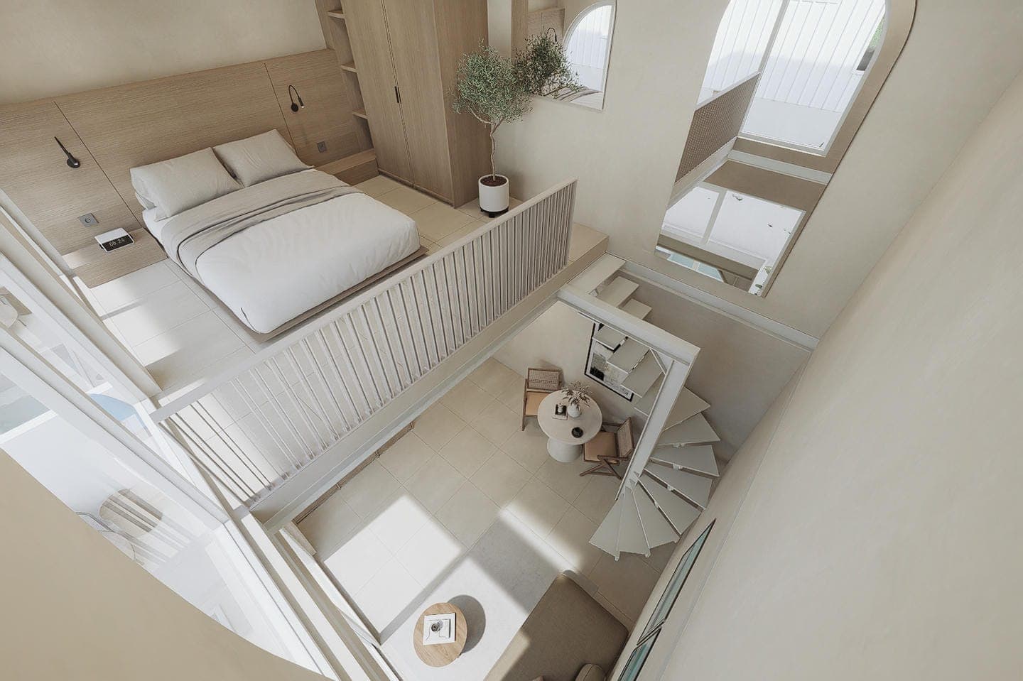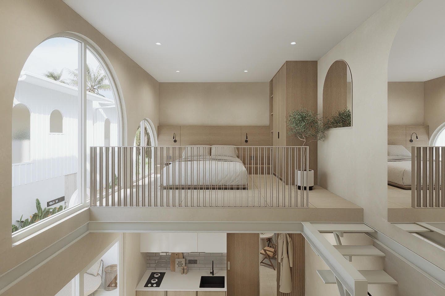 This stunning villa is located in Bingin , Uluwatu, renowned for its lively atmosphere, popular cafes, restaurants, and just a quick 5-minute motorbike ride to the beach and the center of Bingin. Featuring a sleek modern design with a clean white aesthetic, the villa offers a cozy mezzanine 1-bedroom, 1-bathroom layout, an inviting living room and a fully equipped kitchen.