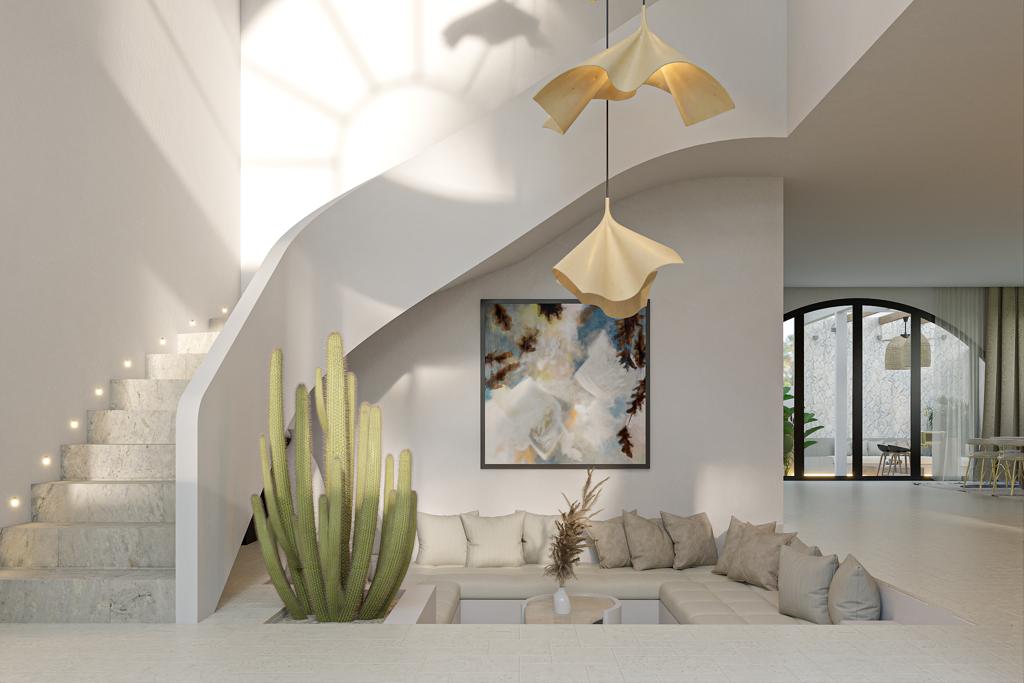 Crafted with high-quality materials, large windows strategically placed flood the rooms with natural light, creating an airy and tranquil atmosphere.