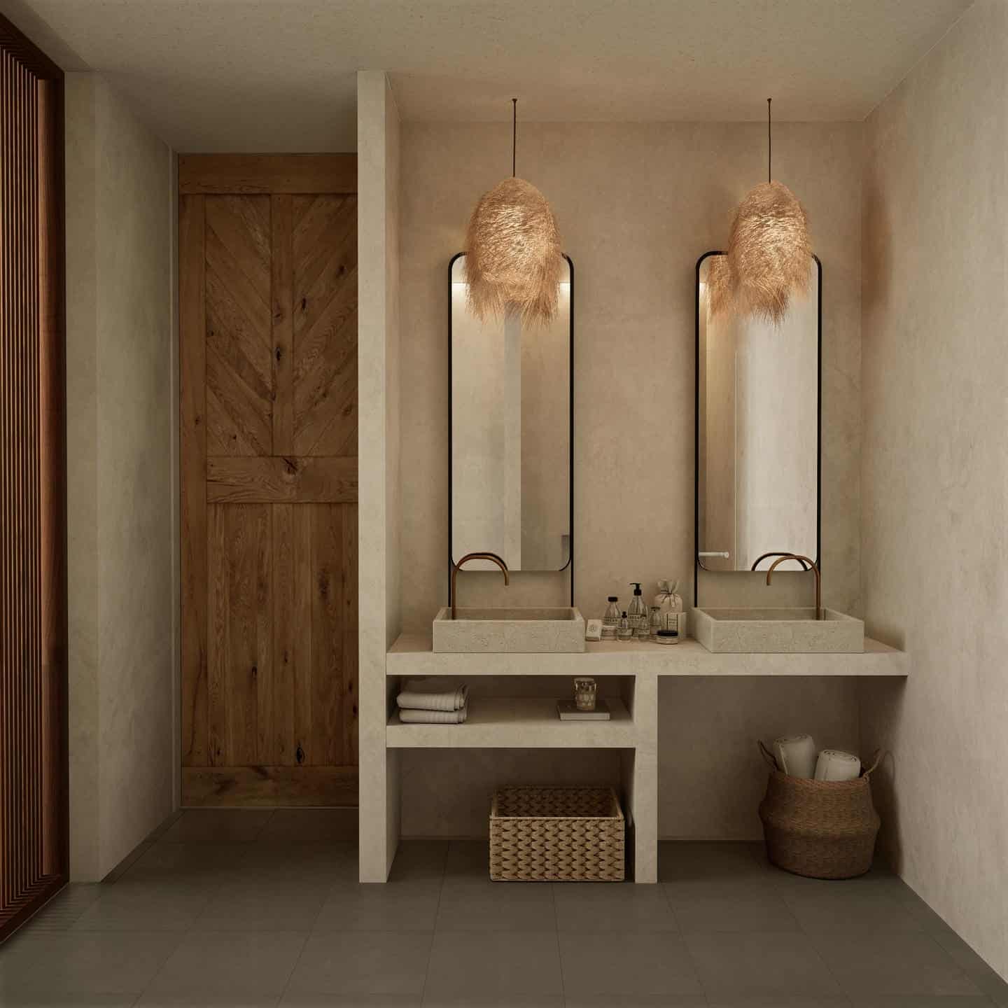 The villa’s sleek, contemporary design is complemented by warm wooden accents, creating a serene and luxurious atmosphere. It boasts spacious bedrooms, elegant bathrooms, a cozy living room, a fully equipped kitchen, and a stylish dining area.