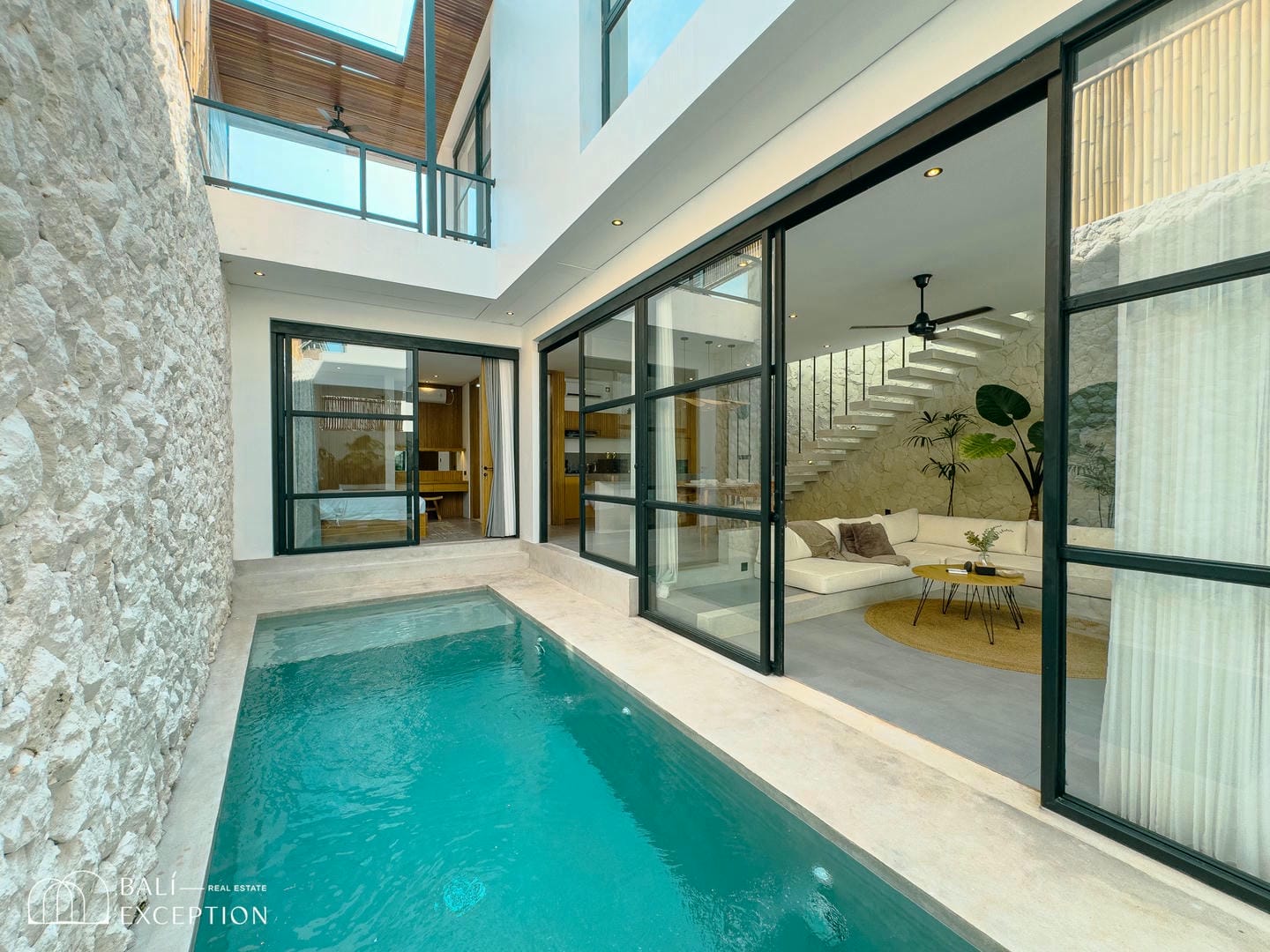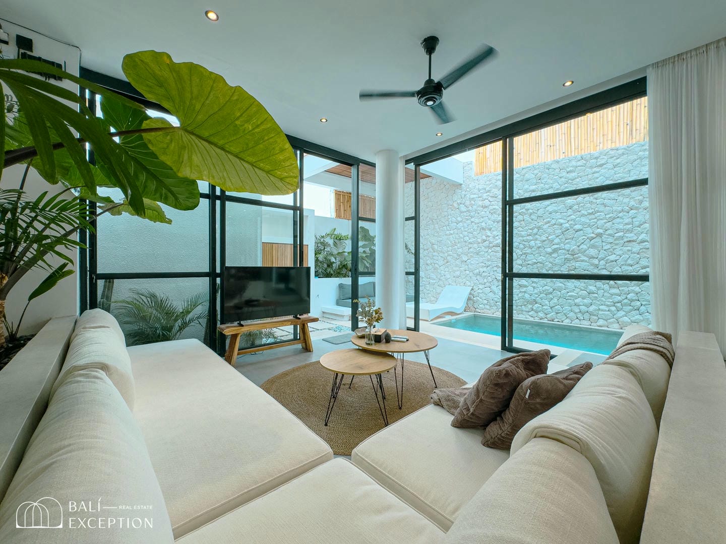 This fully furnished villa features an open-plan living space, thoughtfully designed with modern architecture, high-end finishes, and premium materials throughout. It includes a fully equipped kitchen and expansive floor-to-ceiling windows that seamlessly open to the outdoors, creating a bright and airy tropical living experience. The villa offers a spacious 2-bedroom layout with 2 bathrooms, where each bedroom is complemented by its own bathroom, while the master bedroom also features a private balcony and a cozy lounge area for added comfort.