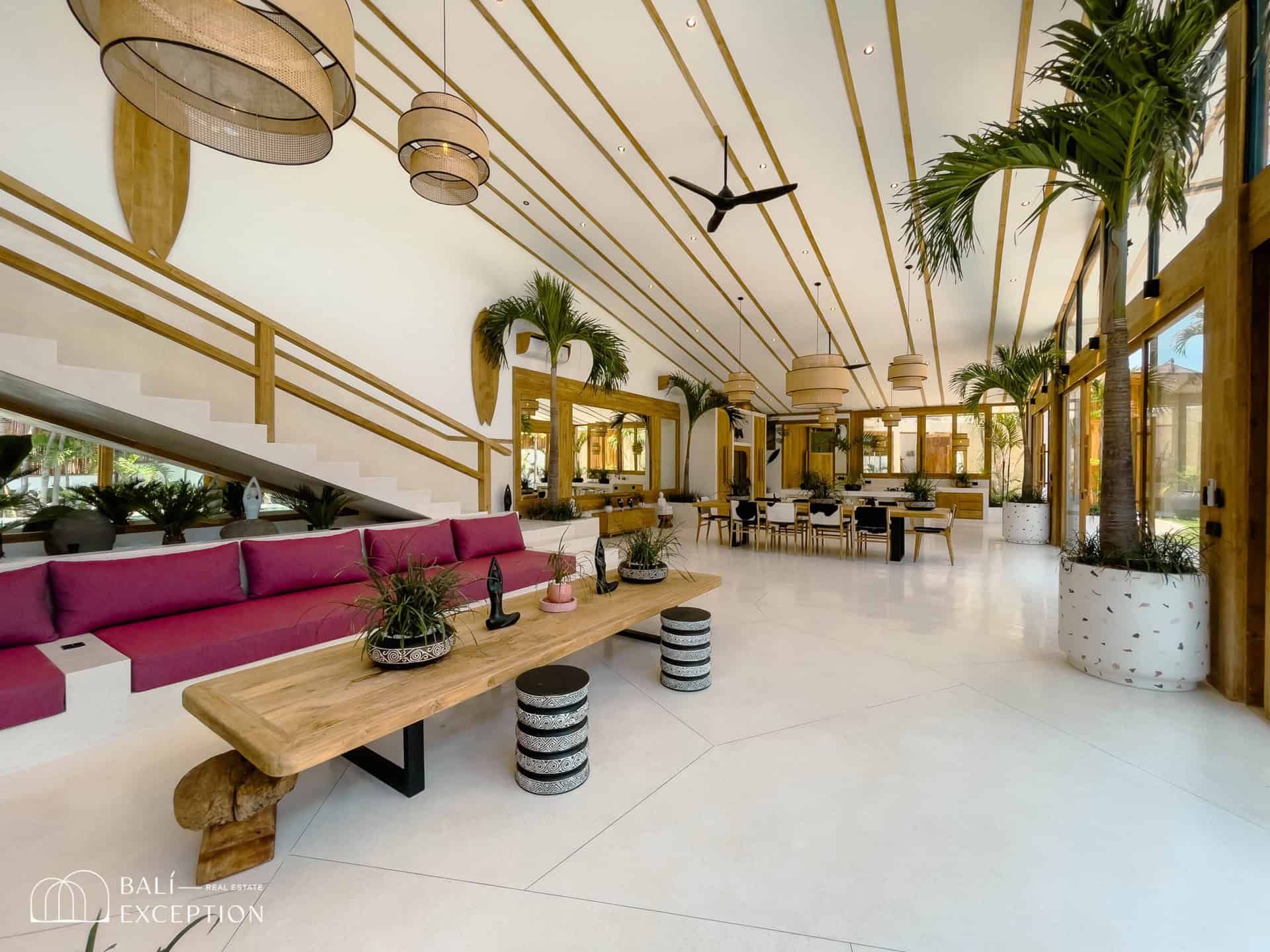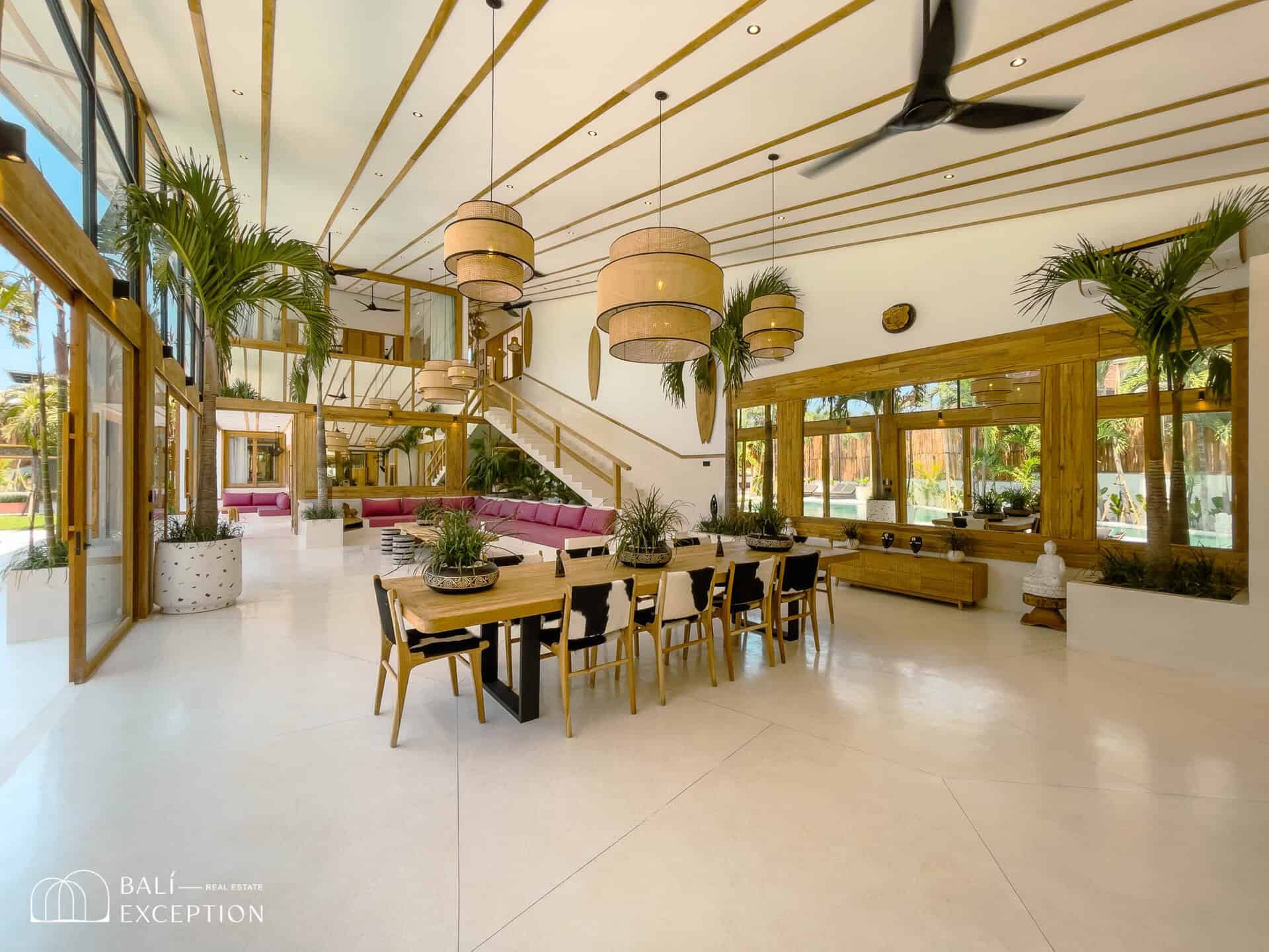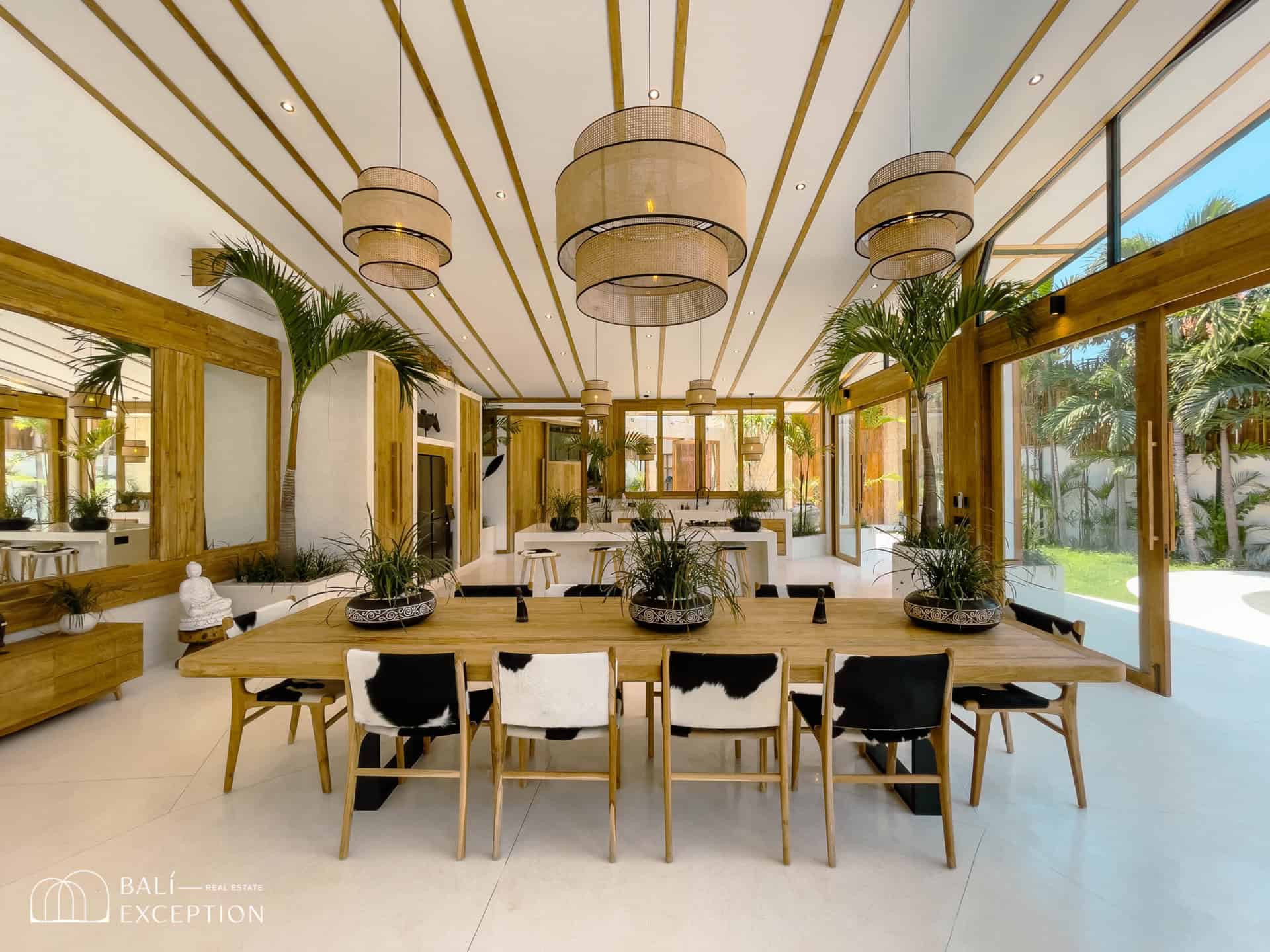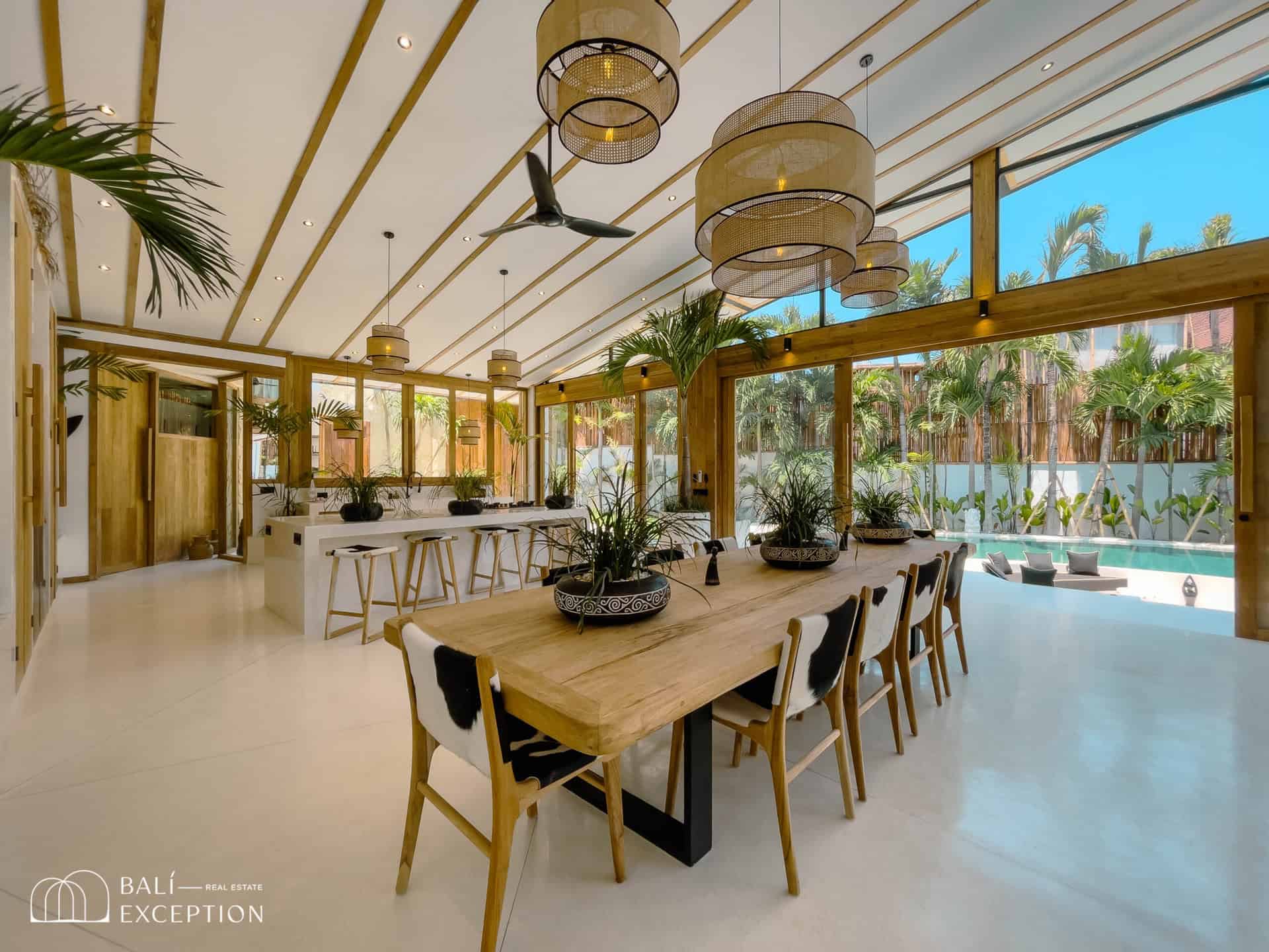 In the heart of Umalas, this exceptional villa blends modern design with a tropical ambiance. Set on 980 sqm of land, it offers 400 sqm of built area, featuring spacious and functional living spaces. The architecture is distinguished by a bold diagonal roofline, creating a unique character.