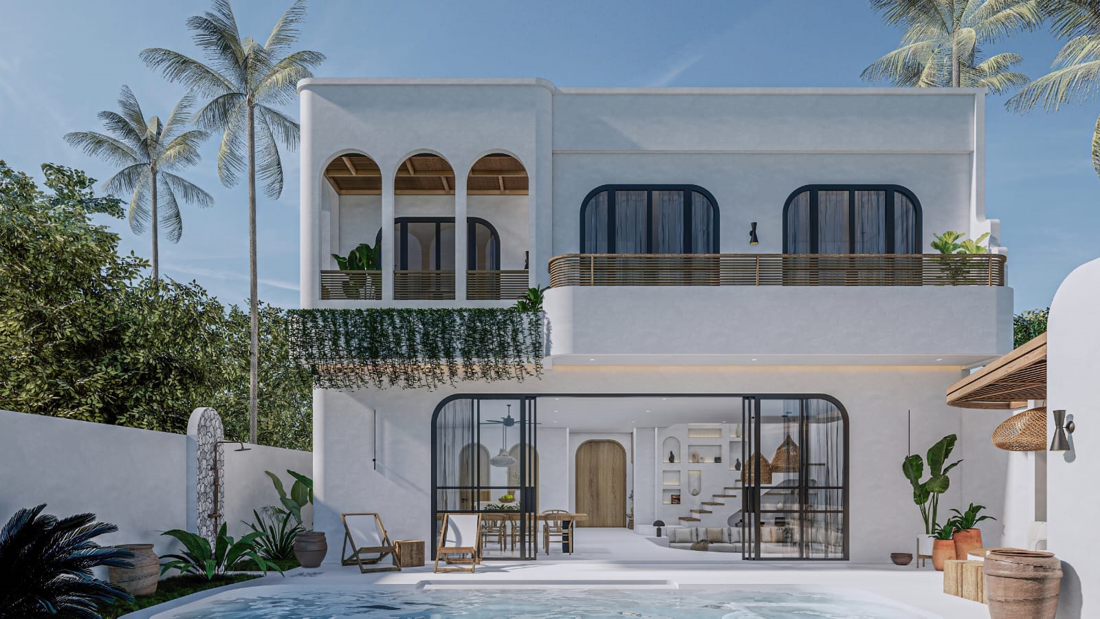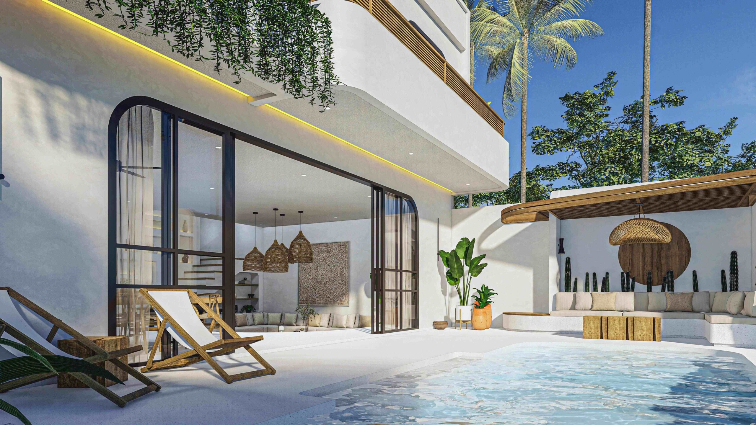 Step outside, and a pool awaits, surrounded by lounge sofas, offering the perfect setting for leisurely afternoons. Of course, let’s not forget about convenience! This villa comes complete with a parking area, ensuring that you and your guests can easily access it without any hassle.