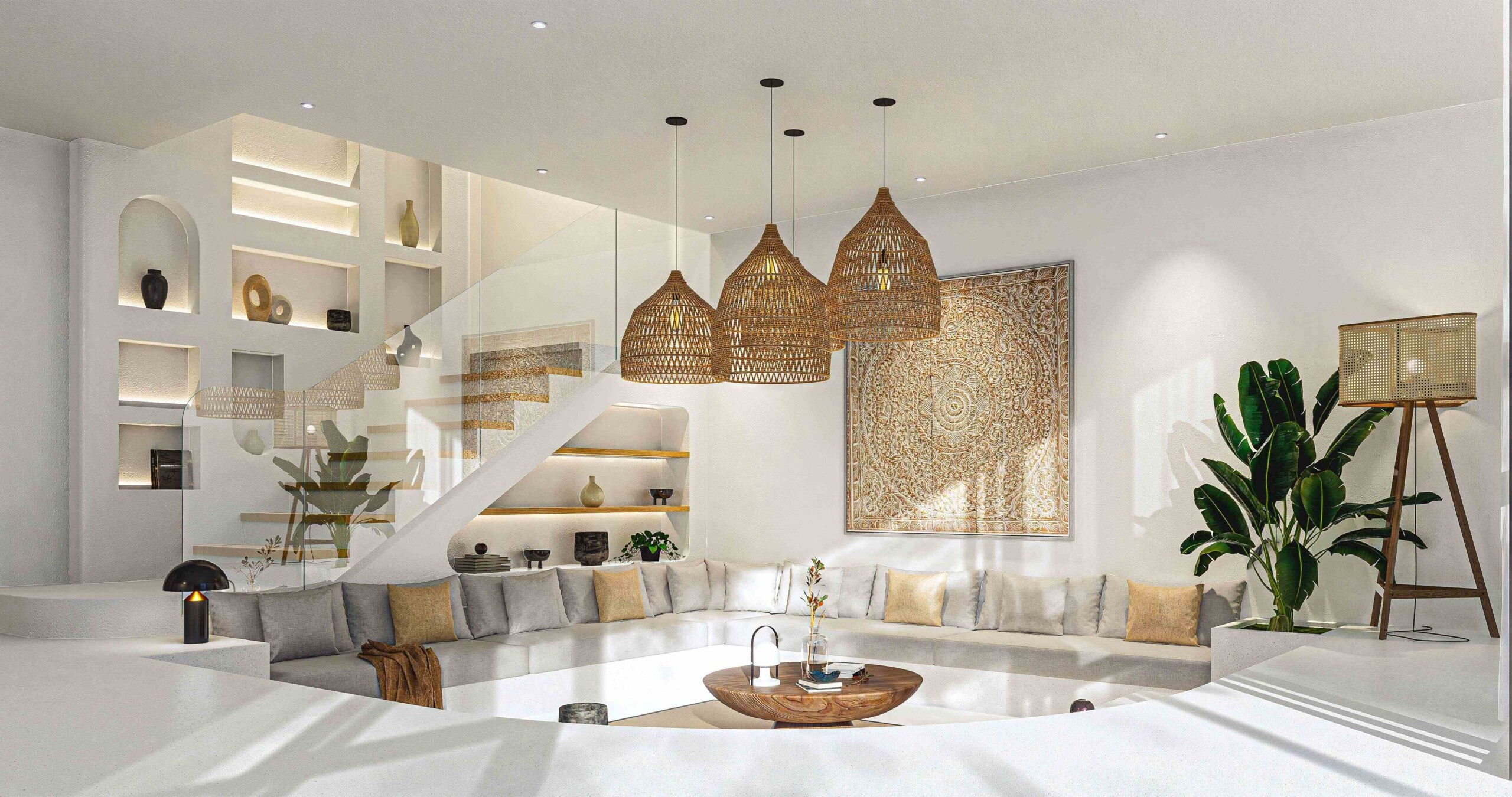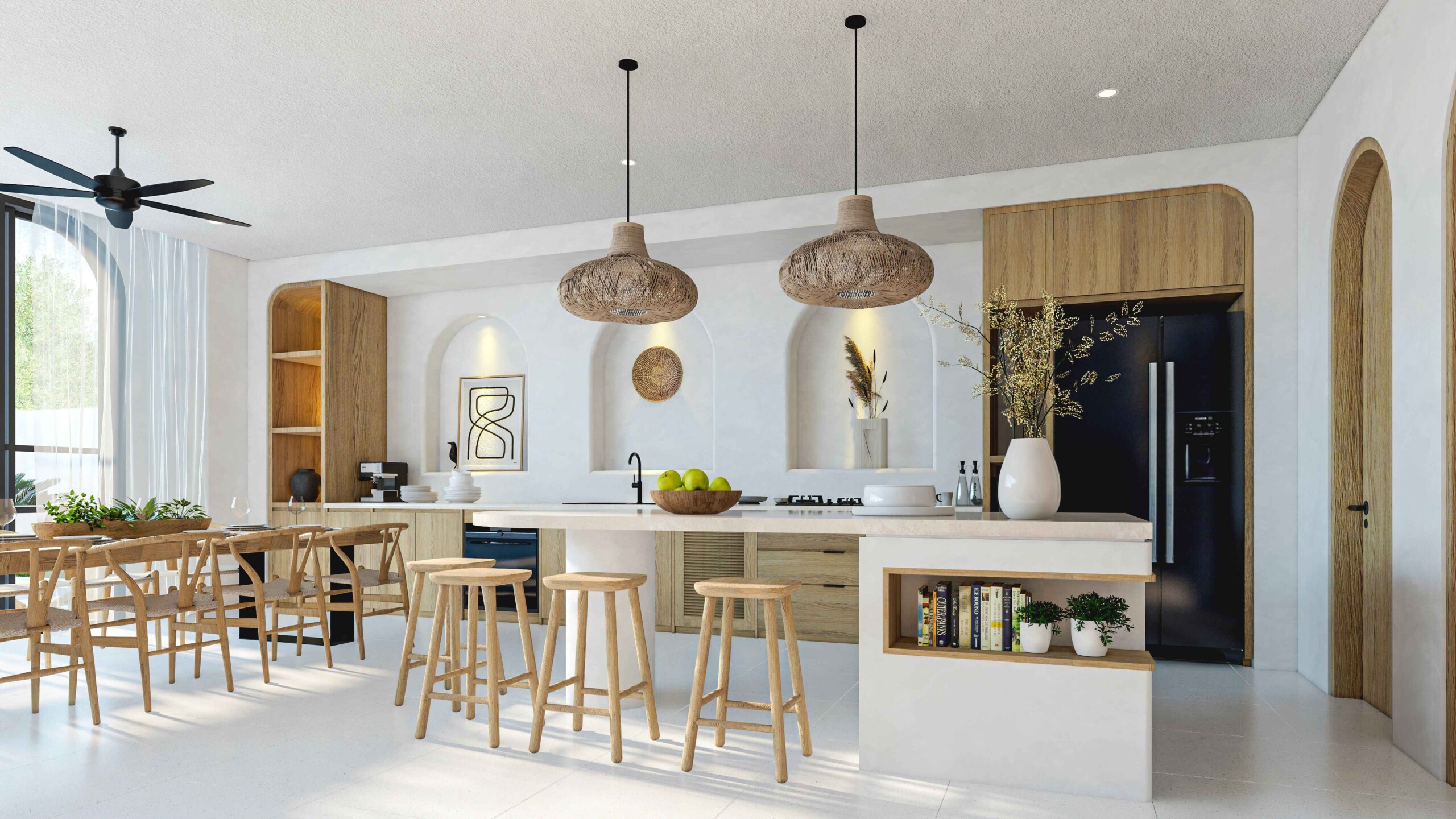 Featuring 3 bedrooms, each with its own ensuite bathroom, and an additional well-appointed bathroom with premium materials, showcasing a commitment to quality and timeless design. The semi-furnished interior boasts a modern kitchen, and a sunken living room creates a cozy retreat for relaxation. An adjacent office room provides a dedicated space for work.