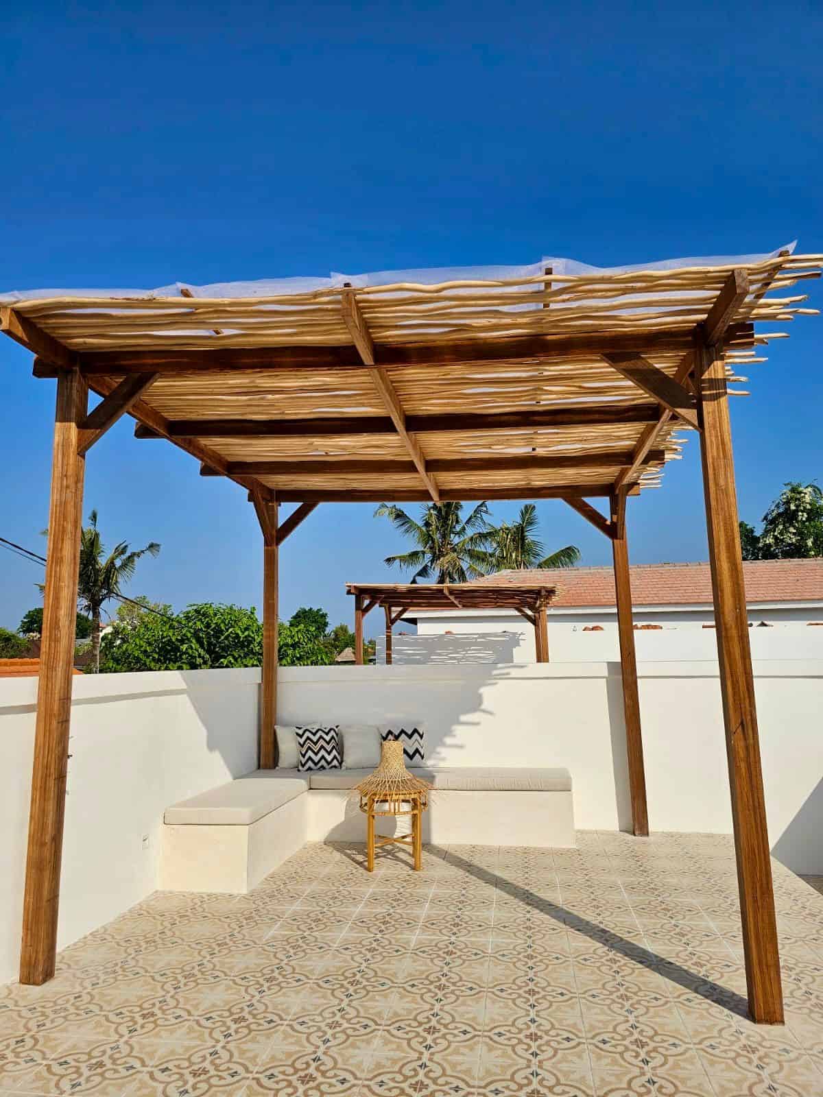The highlight of this villa is its large rooftop, an exceptional space to relax or entertain guests. Whether it’s to admire the sunsets or enjoy a moment of tranquility, this rooftop is sure to captivate you. Outside, a nice area with a pool perfectly complements this villa, offering an ideal place to cool off and relax. Please note that access to the villa is exclusively by scooter, adding a touch of authenticity and simplicity to your lifestyle.