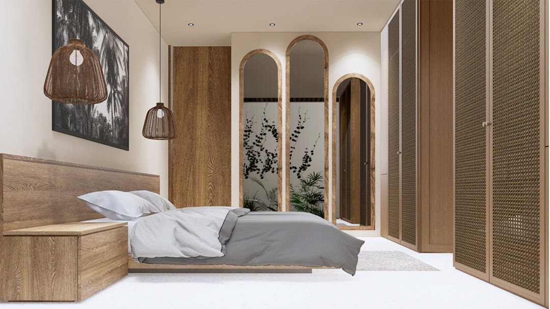 Step inside this fully furnished villa, which features 6 bedrooms and 6 bathrooms. The living space flows seamlessly into the adjacent dining area and fully equipped kitchen. The modern design of the white interior is complemented by high-quality wooden furniture, adding a touch of natural elegance. Floor-to-ceiling windows reinforce the airy atmosphere, providing a sense of openness and connection with the surrounding beauty.