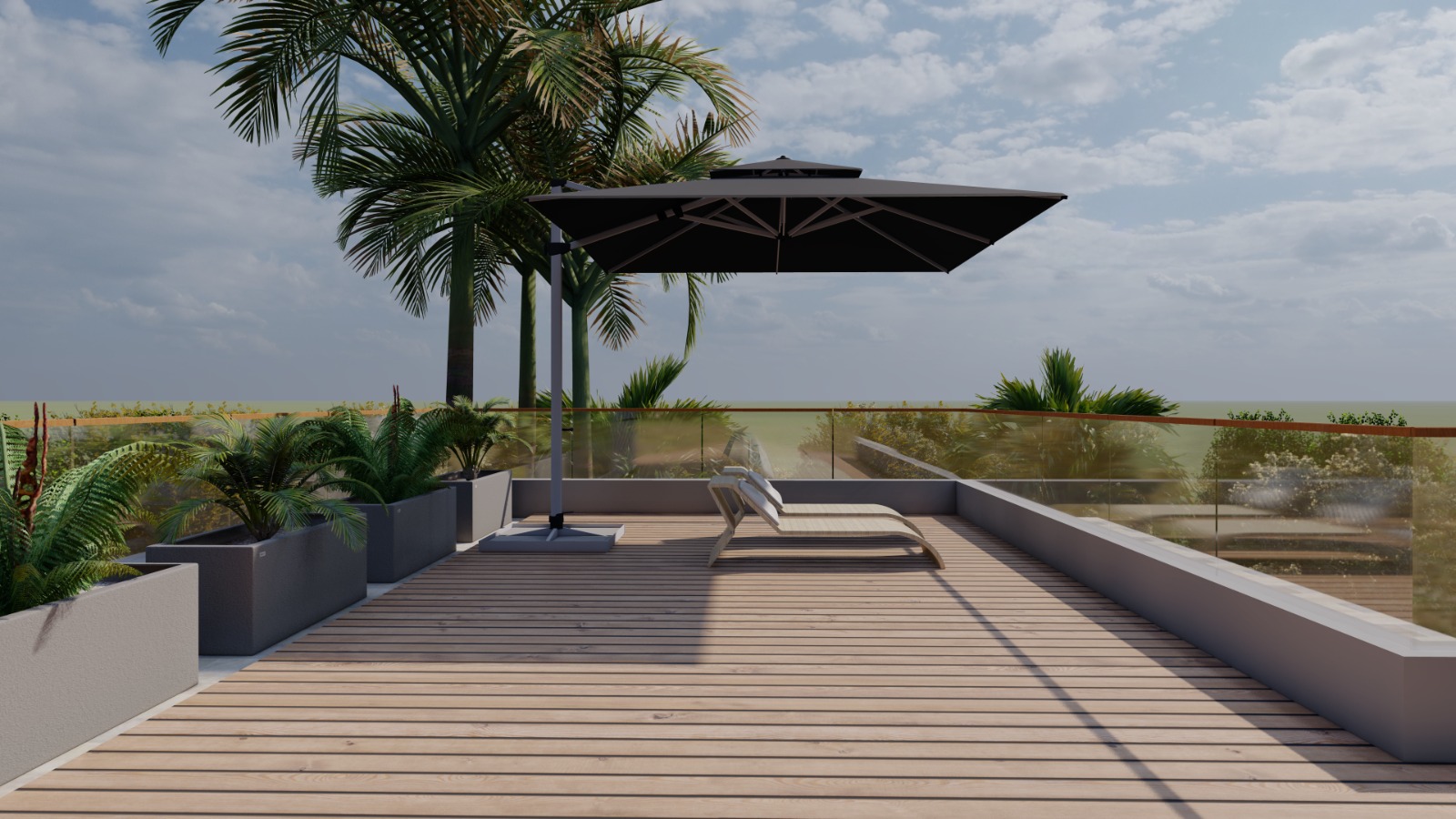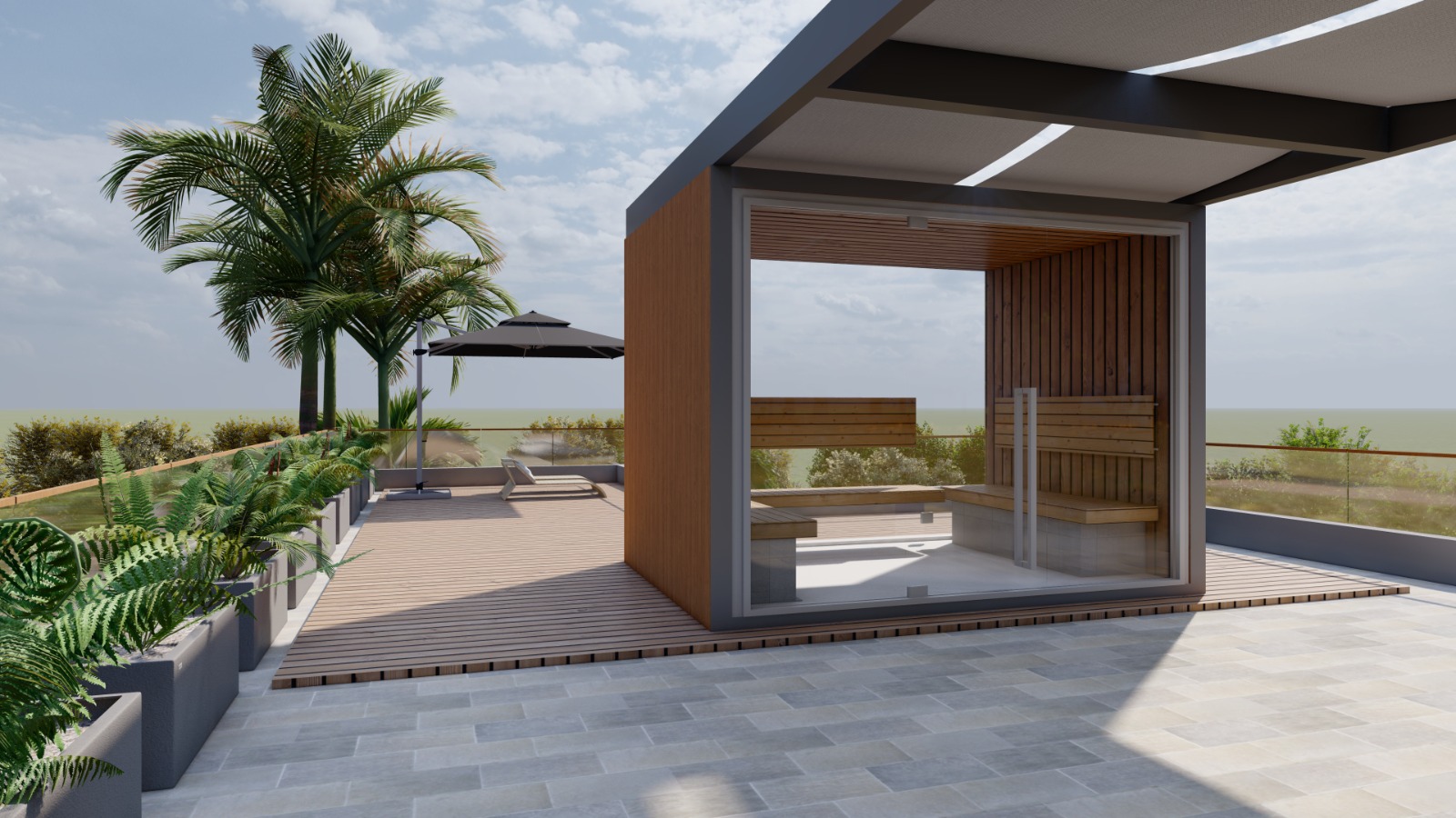 - The rooftop and balconies