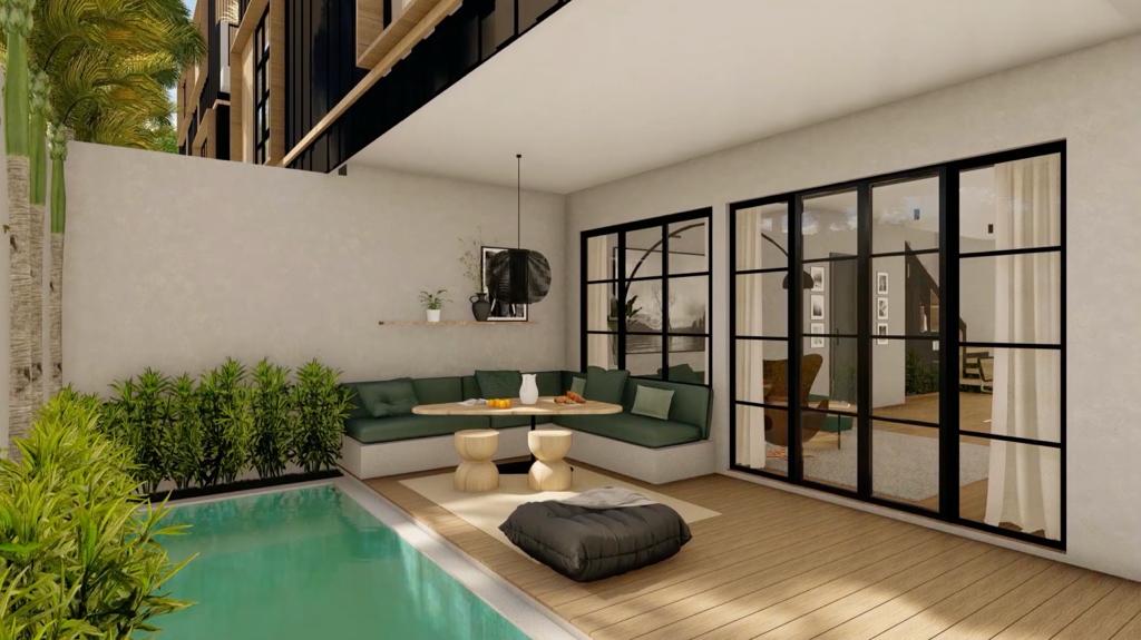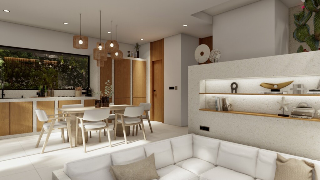 Our next gem is located in the lively Bingin area of Uluwatu, offering a tranquil escape with easy access to the area’s vibrant cafes, restaurants, and the famous white sand beach. This off-plan project features three bedrooms, each with its own half-outdoor ensuite bathroom, creating a seamless fusion of modern luxury and natural beauty.