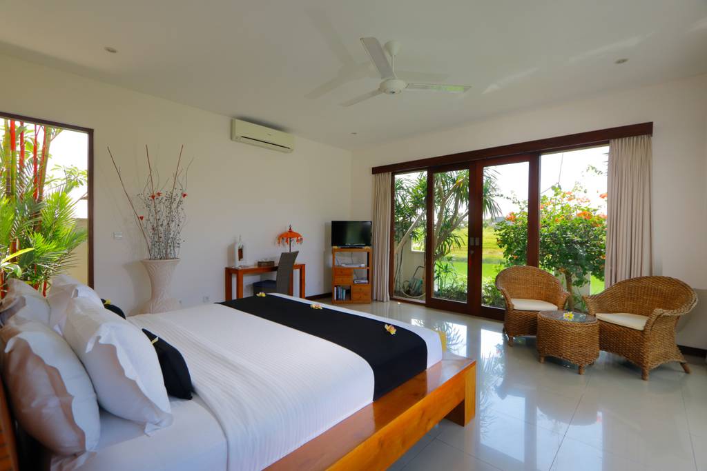One of the highlights of this villa is the beautiful swimming pool, which is perfectly positioned to take in the breathtaking view of the surrounding rice fields. Whether you’re swimming laps or simply lounging poolside with a good book, you’ll be captivated by the serene and natural beauty of the surrounding landscape.