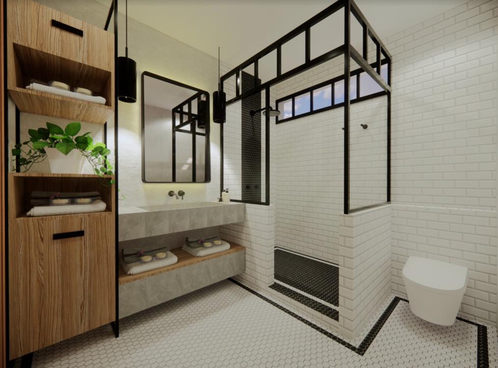 The property consists of 3 bedrooms with their own equipped bathrooms, and a storage area!