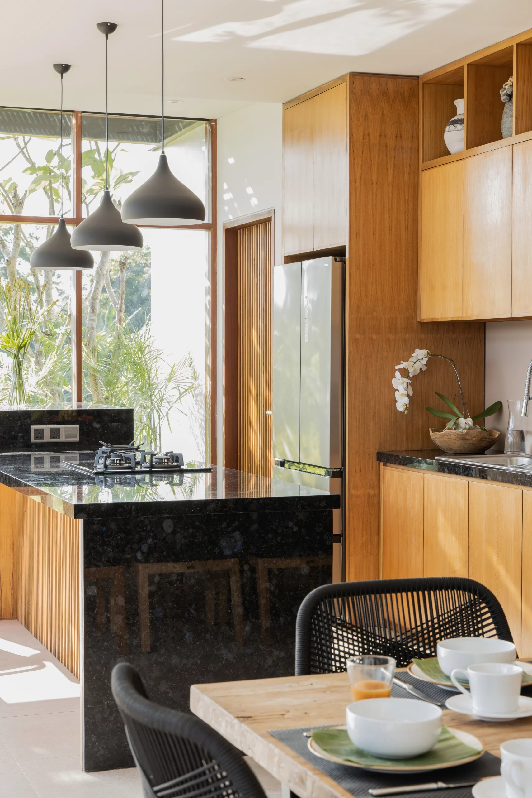 These villas sits 270 sqm in terms of building size and 300 sqm in terms of land size, features a one-of-a-kind industrial tropical design that exudes both elegance and warmth. Furthermore, the interior of the villa is thoughtfully designed to provide a comfortable living space.