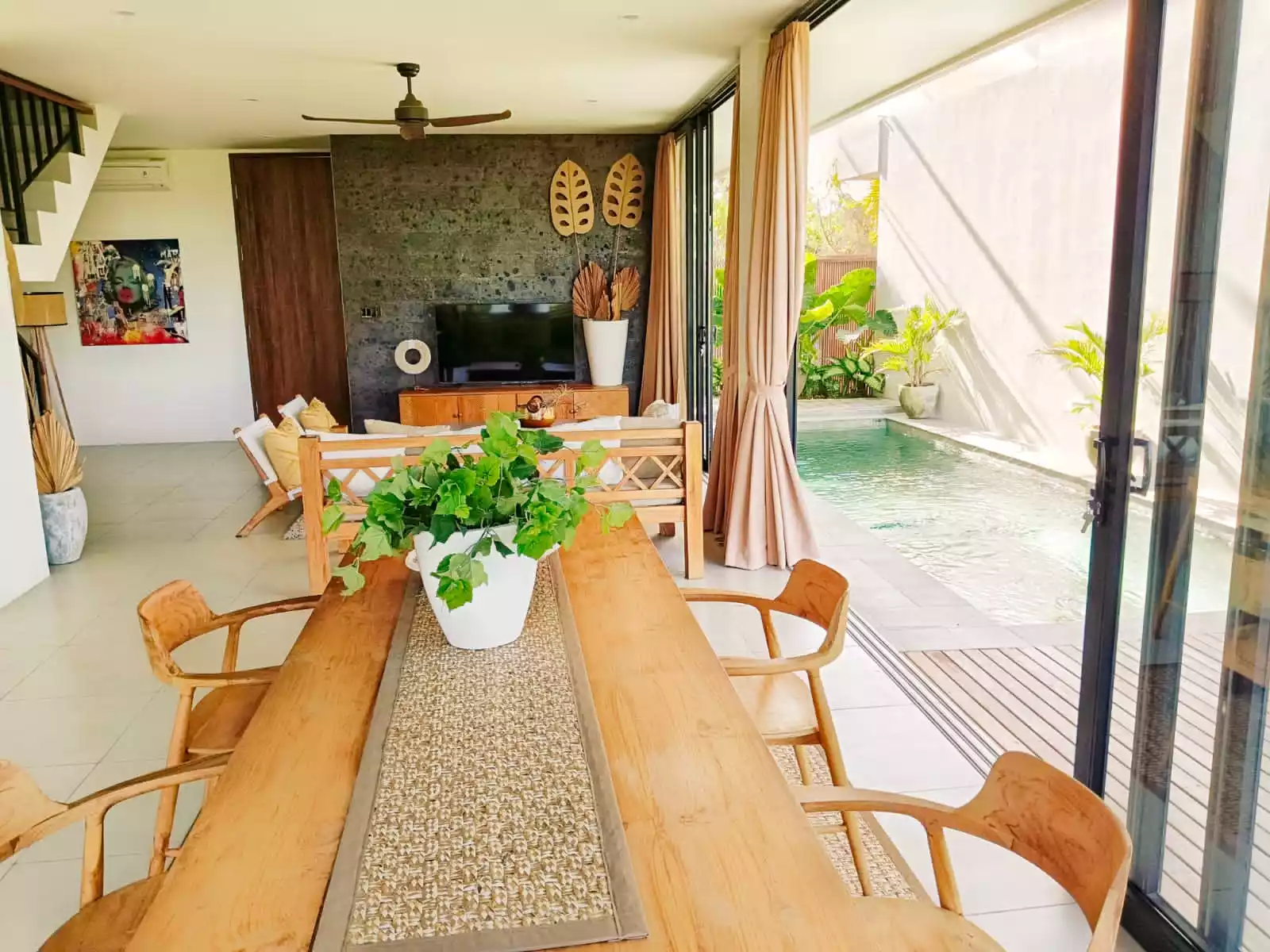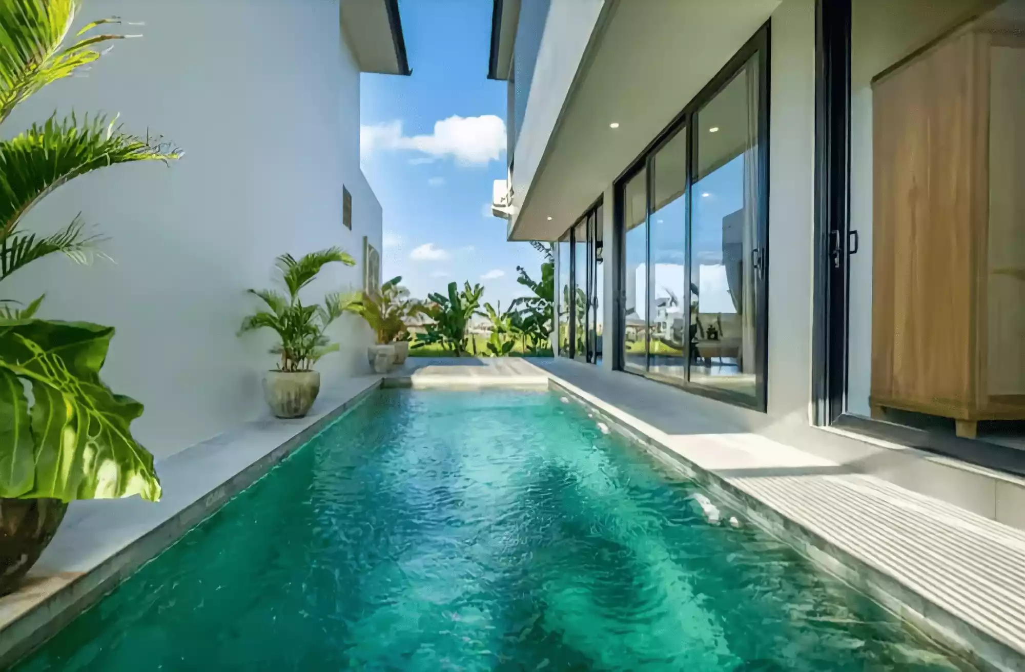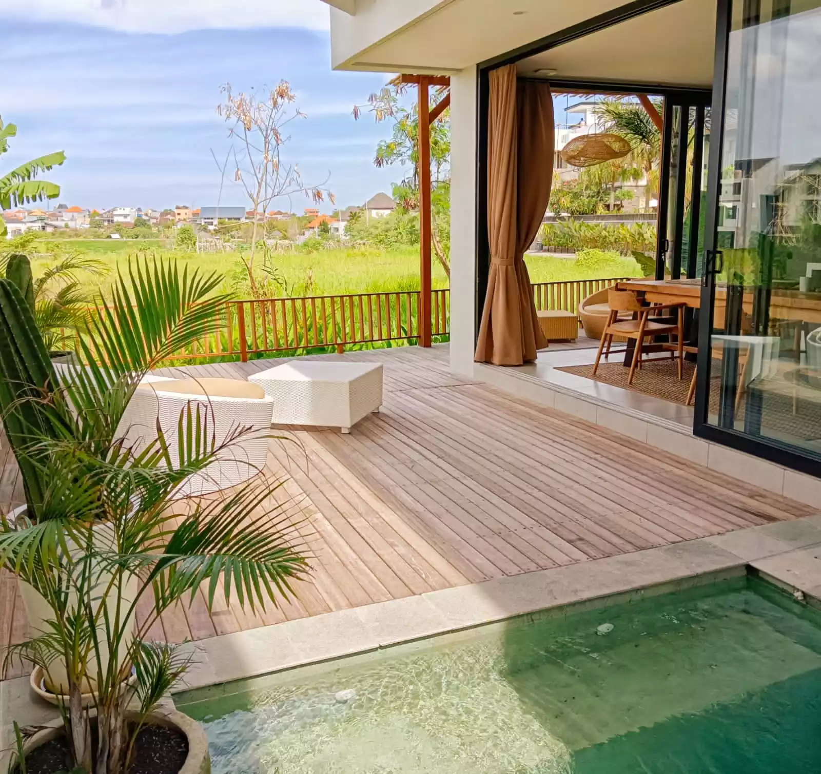 Located in the center of Batu Bolong, you’ll discover a beautiful and well appointed complex of 9 villas, three of them has already been sold. This area is ideal as its minutes away from the best and trendiest places of Canggu, however you’ll be able to keep the calm and quiet of Bali, nestled in your gorgeous villa with ricefields view. Very well displayed you’ll enjoy your pool, 4 bedrooms with 4 bathrooms as well and an enclosed living room for chill nights. This property is great for investment, family and digital nomads ! Visit this beautiful complex now !