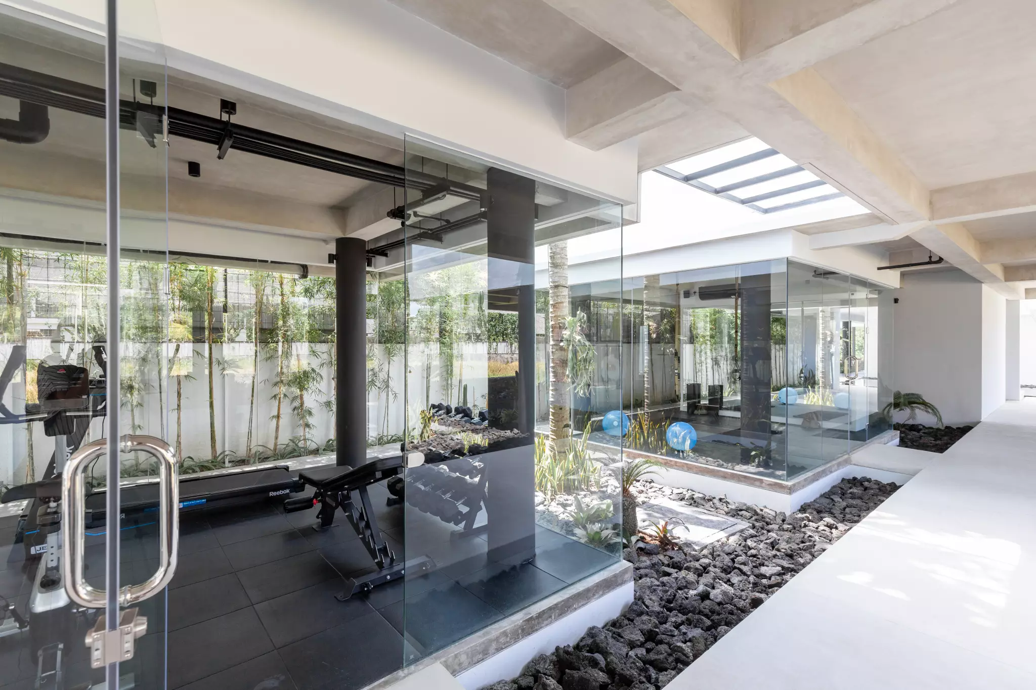 Beyond the interiors, a private paradise unfolds. A generous 115 sqm pool glistens under the sun, inviting you to indulge in refreshing swims or recline on two lounge beds—all while enjoying panoramic views of the picturesque rice fields. Additionally, a well-equipped gym provides a space for invigorating workouts, while the balcony, adorned with plush sofas, offers a charming spot to unwind. Ascend to the rooftop, where a cinema screen awaits, turning your evenings into cinematic experiences under the stars.