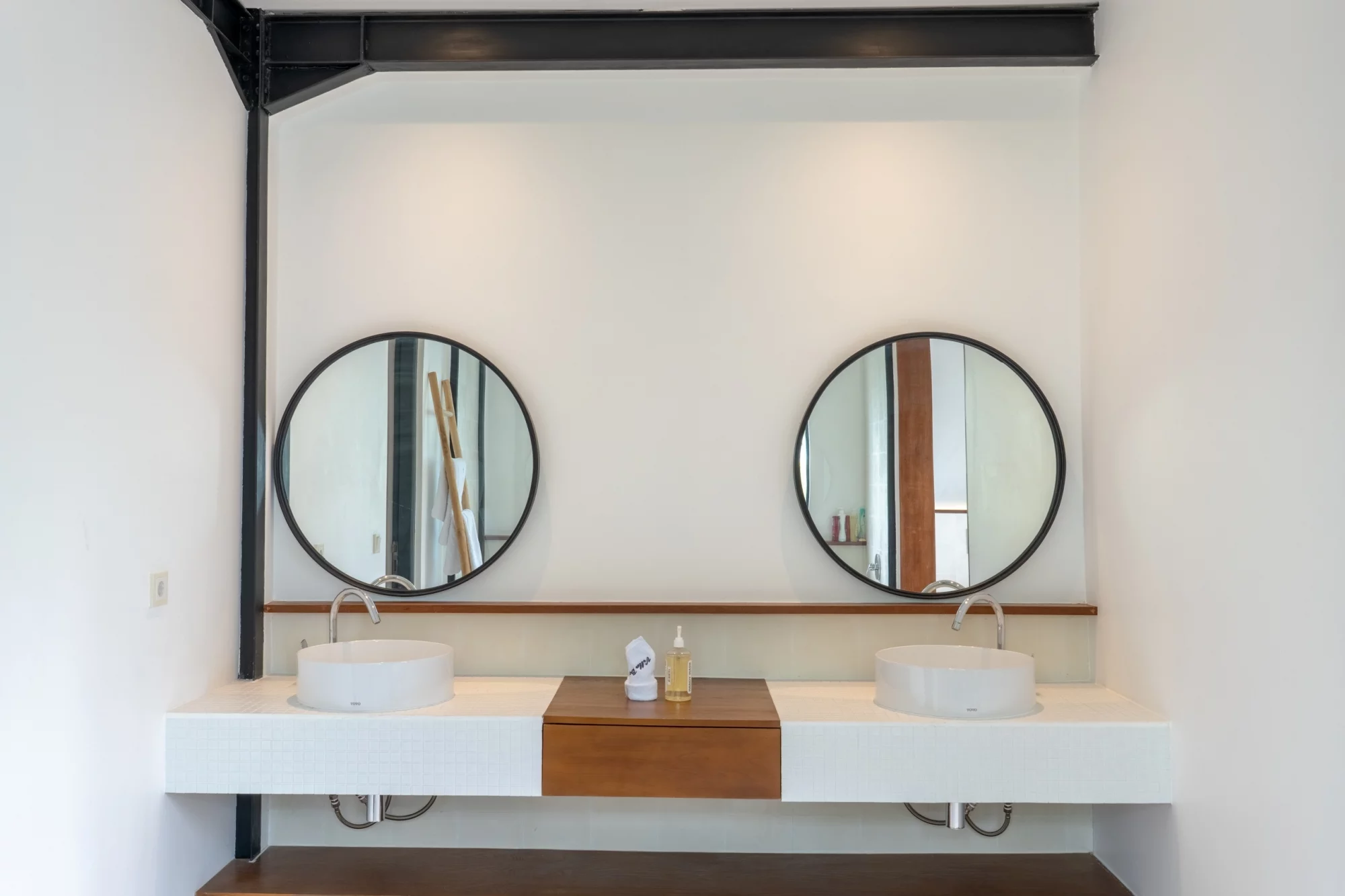 This stunning villa boasts blending colonial, modern and industrial design and is situated on 900 square meters of land with a 600 square meter building. It offers five bedrooms and bathrooms, and each room is equipped with large mirrors to enhance natural lighting. Moreover, the villa features a comfortable living room and a fully-equipped kitchen, providing you with everything you need for a comfortable stay. Additionally, it offers a private gym and office for added convenience. With all these features and more, this villa is an excellent choice to make your stay feel like a home.