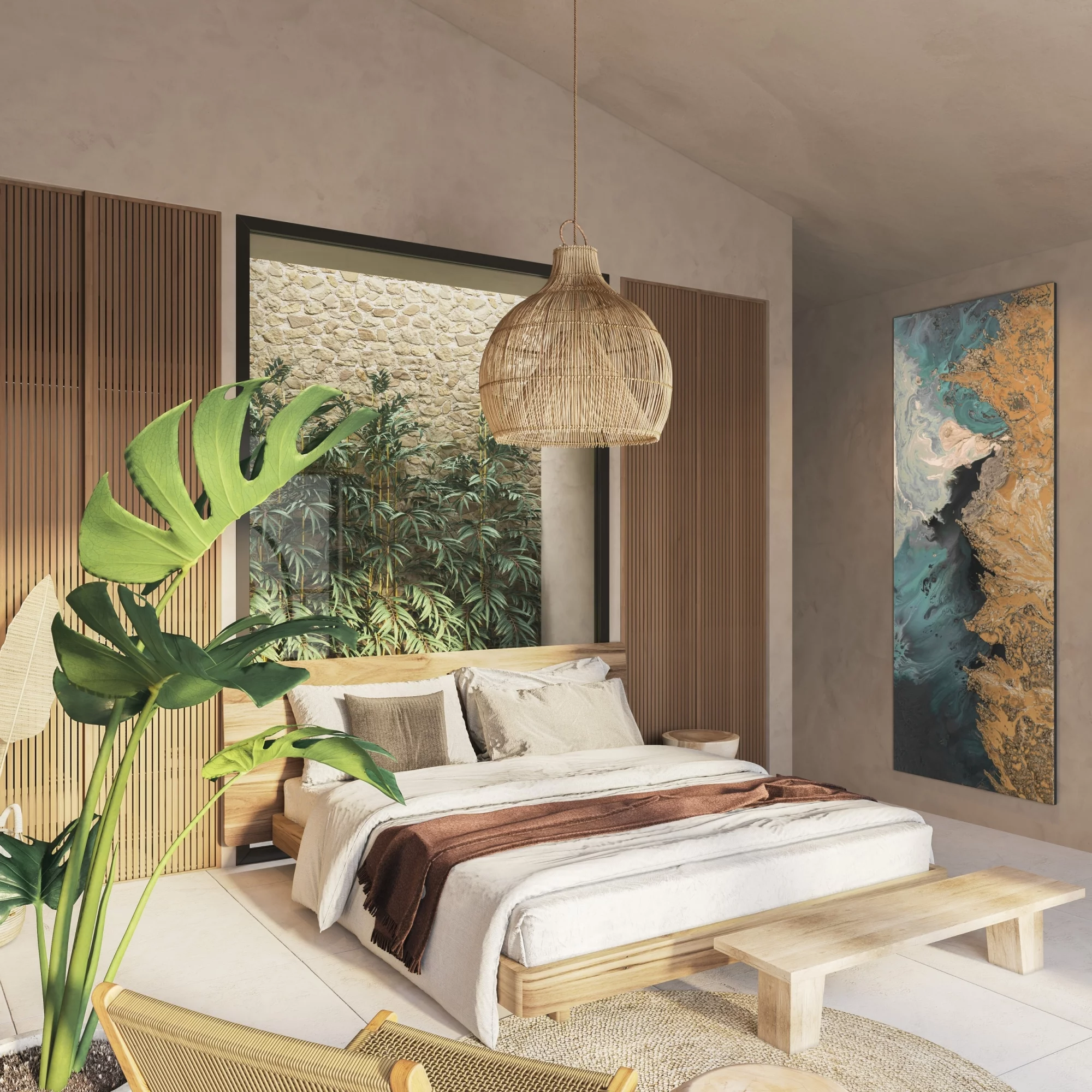 The villa in Babakan, Canggu is a beautiful and modern Mediterranean-style design, boast an breathtaking view overlooking the rice fields, allowing residents to experience the beauty of Bali’s natural landscape. Located in an eight-residence compound that offers privacy and exclusivity, while still being conveniently close to the beach, trendy cafes and restaurants.