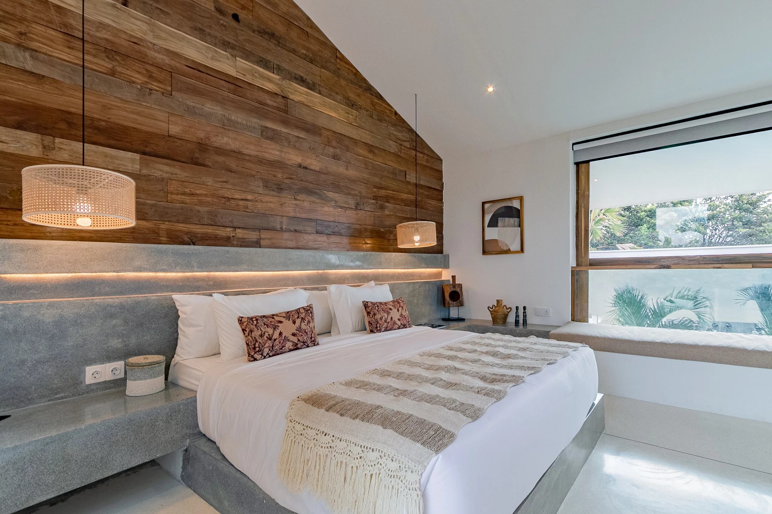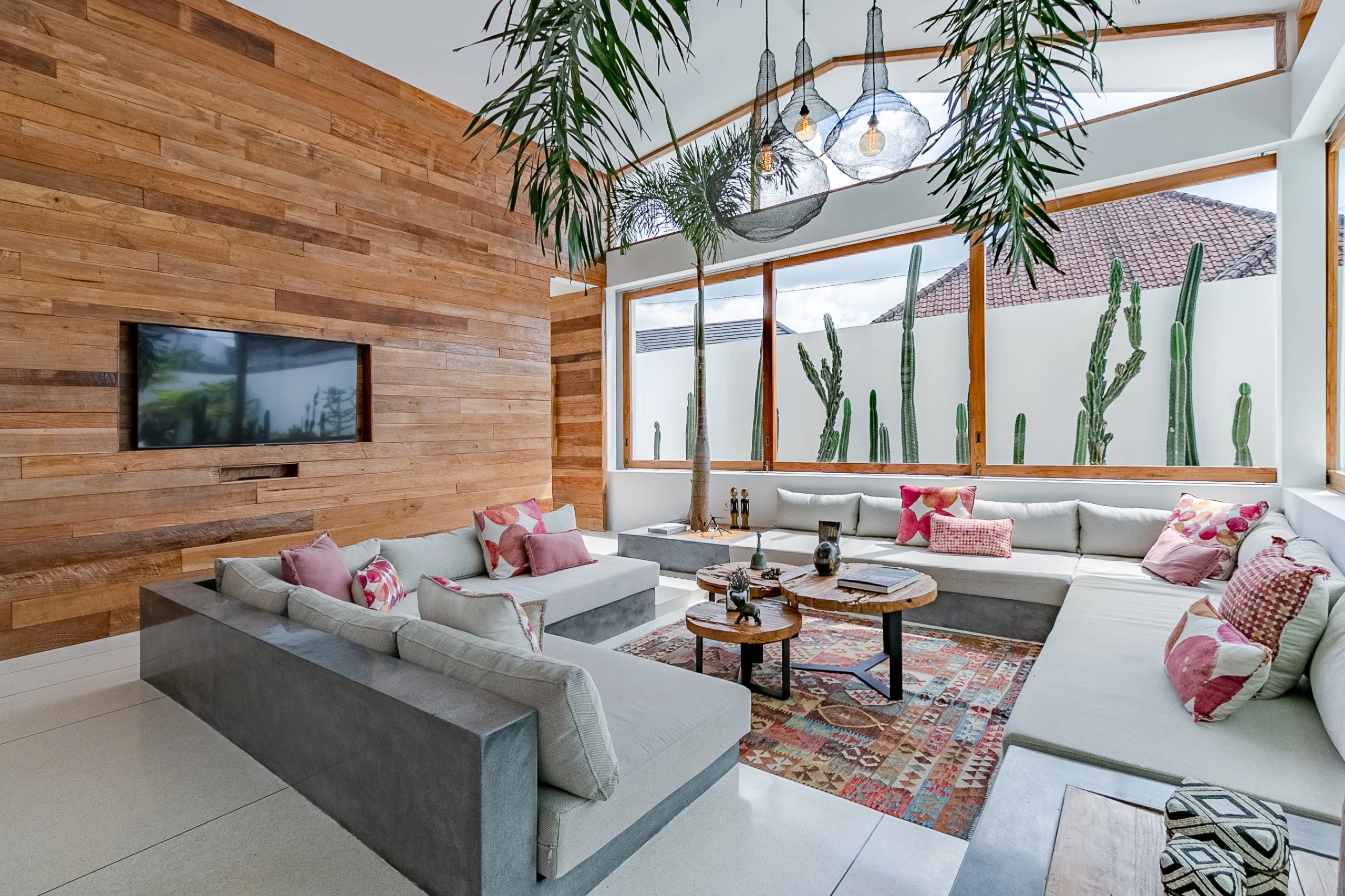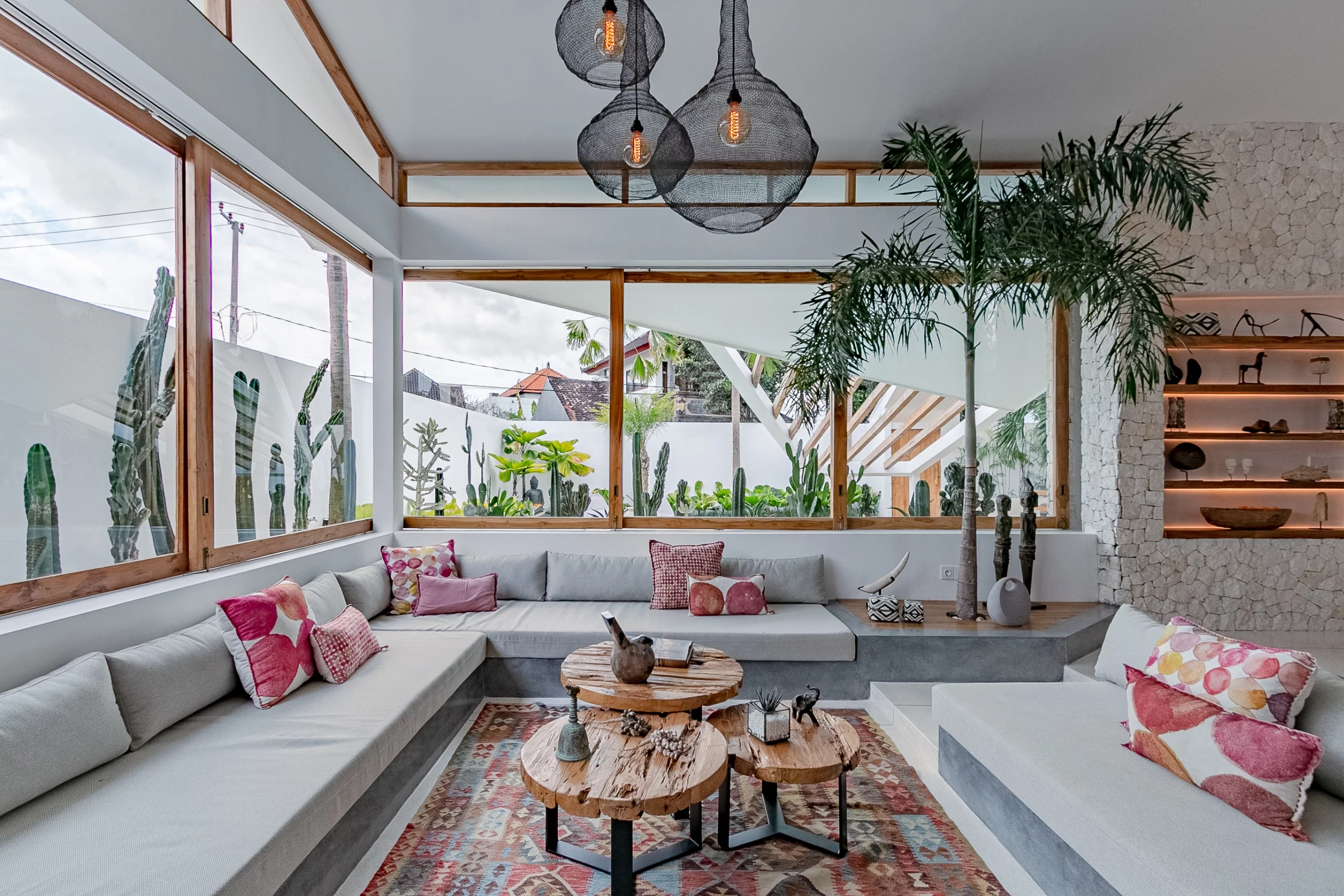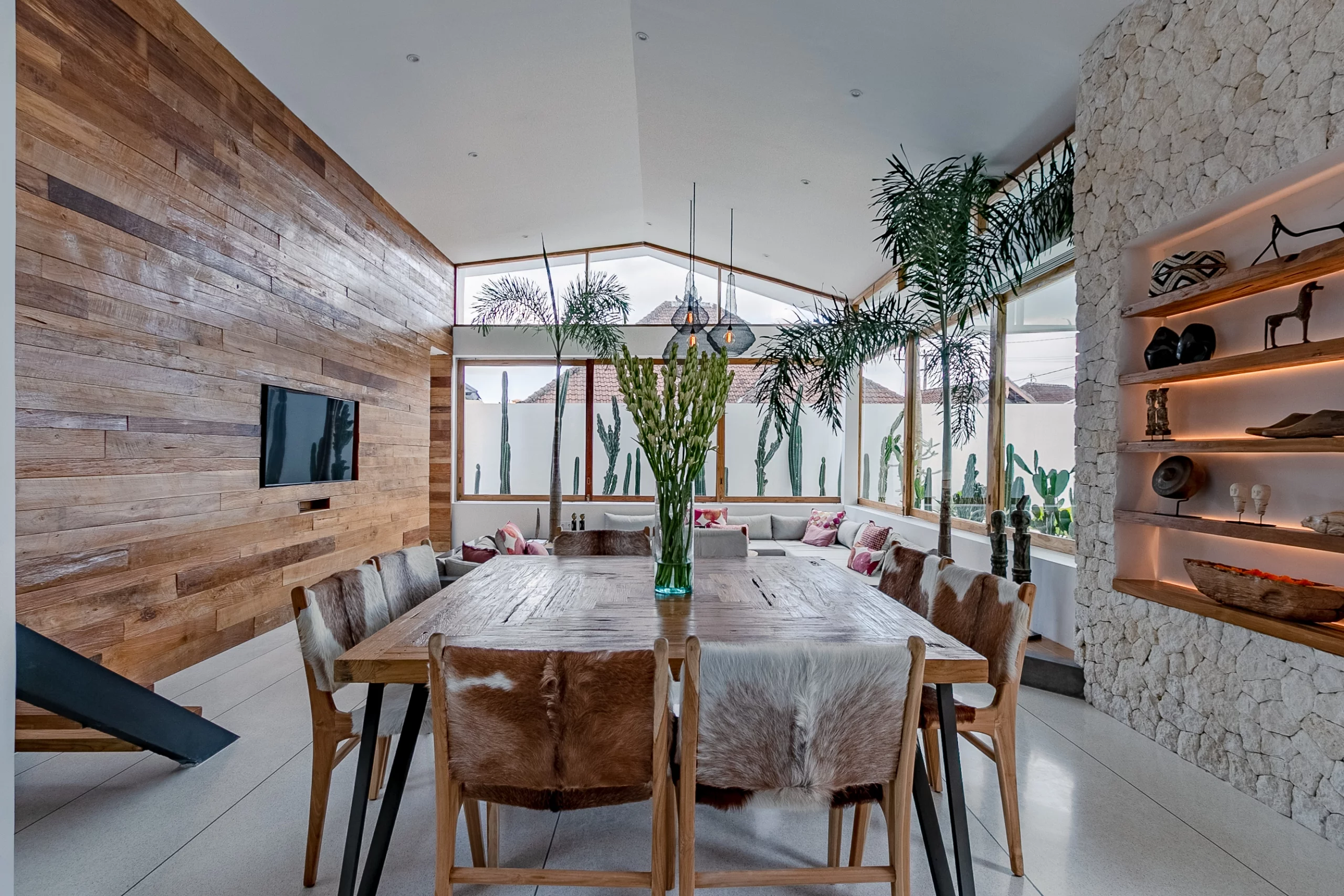The villa’s design by Biombo Architecture, an esteemed international architecture and design studio. It features a distinctive concept with two interconnected roofs, fostering a unique space that blends natural materials with architectural elements. With a total area of 380 sqm and a building size of 317 sqm, this villa offers ample space. It comprises 4 bedrooms and 5 bathrooms, thoughtfully designed to provide utmost comfort with a modern tropical ambiance.