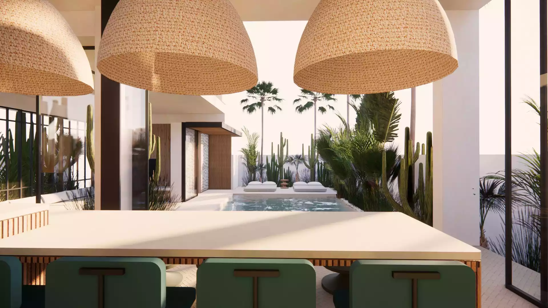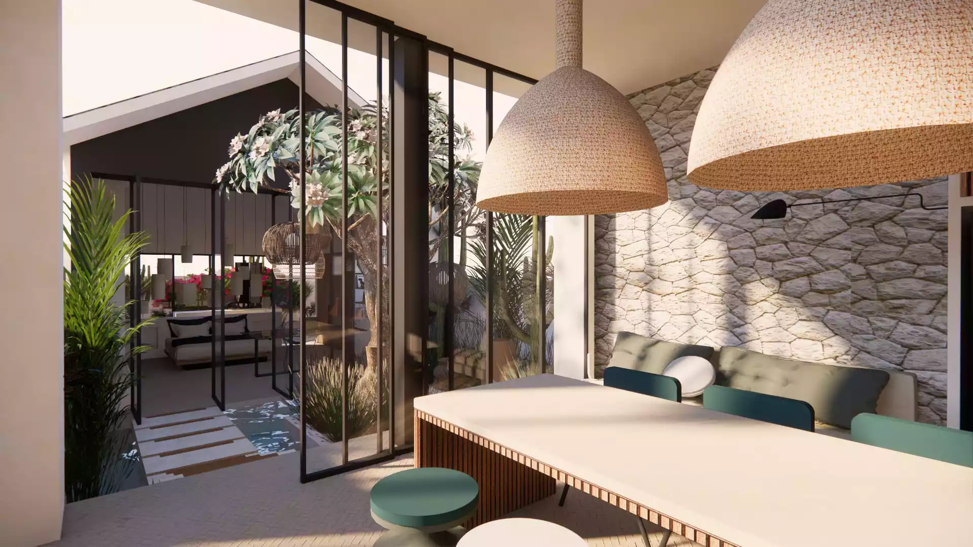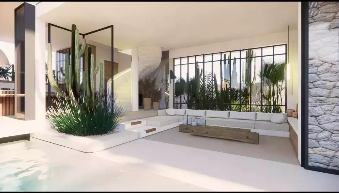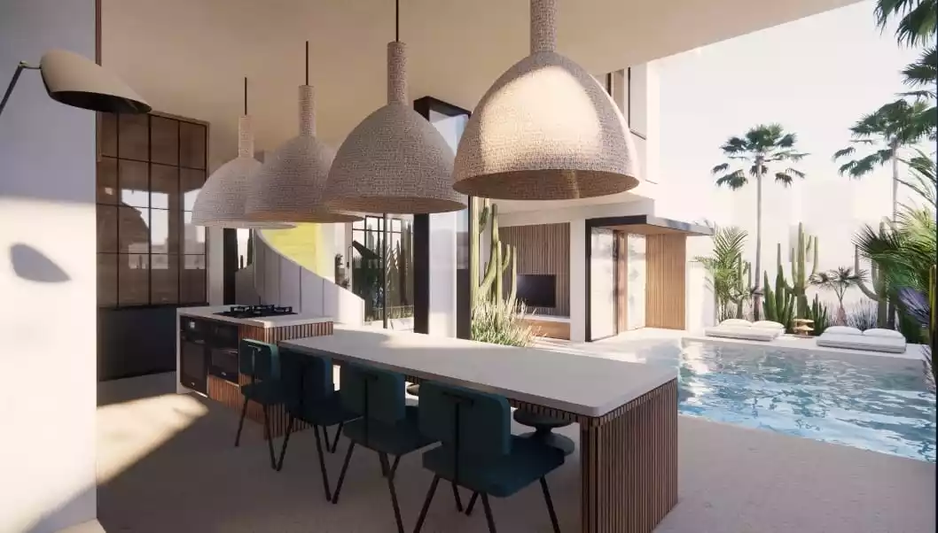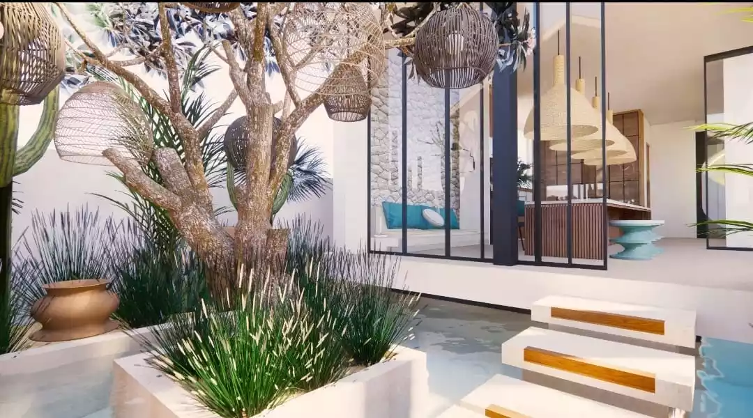 It is built on a plot of 290 sqm, and 205 sqm of building. The very spacious living area is enclosed, and offers a space of absolute tranquility. Outside, a large pool surrounded by plants and greenery immerses you in the Balinese universe.A large kitchen with a central island, fully equipped, is built with quality materials, and a modern design.