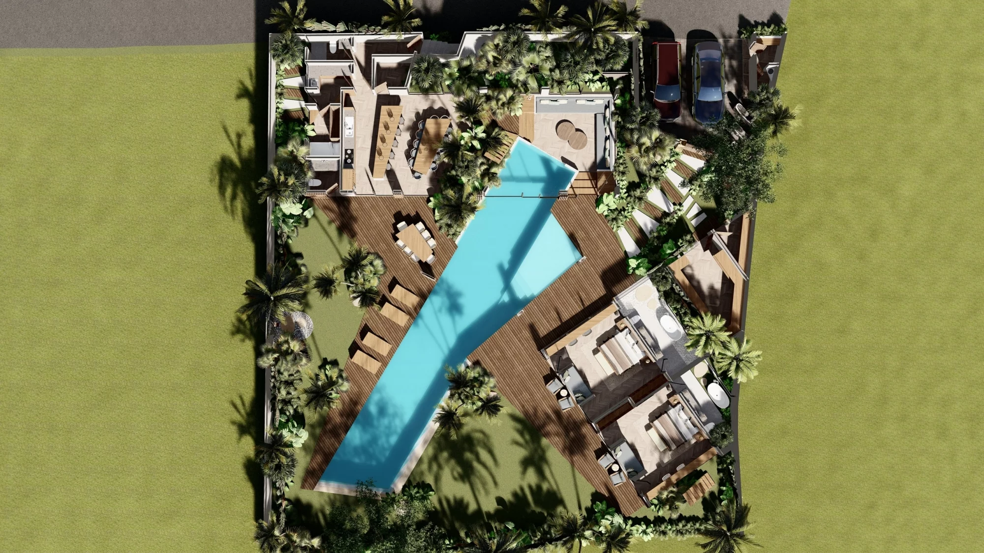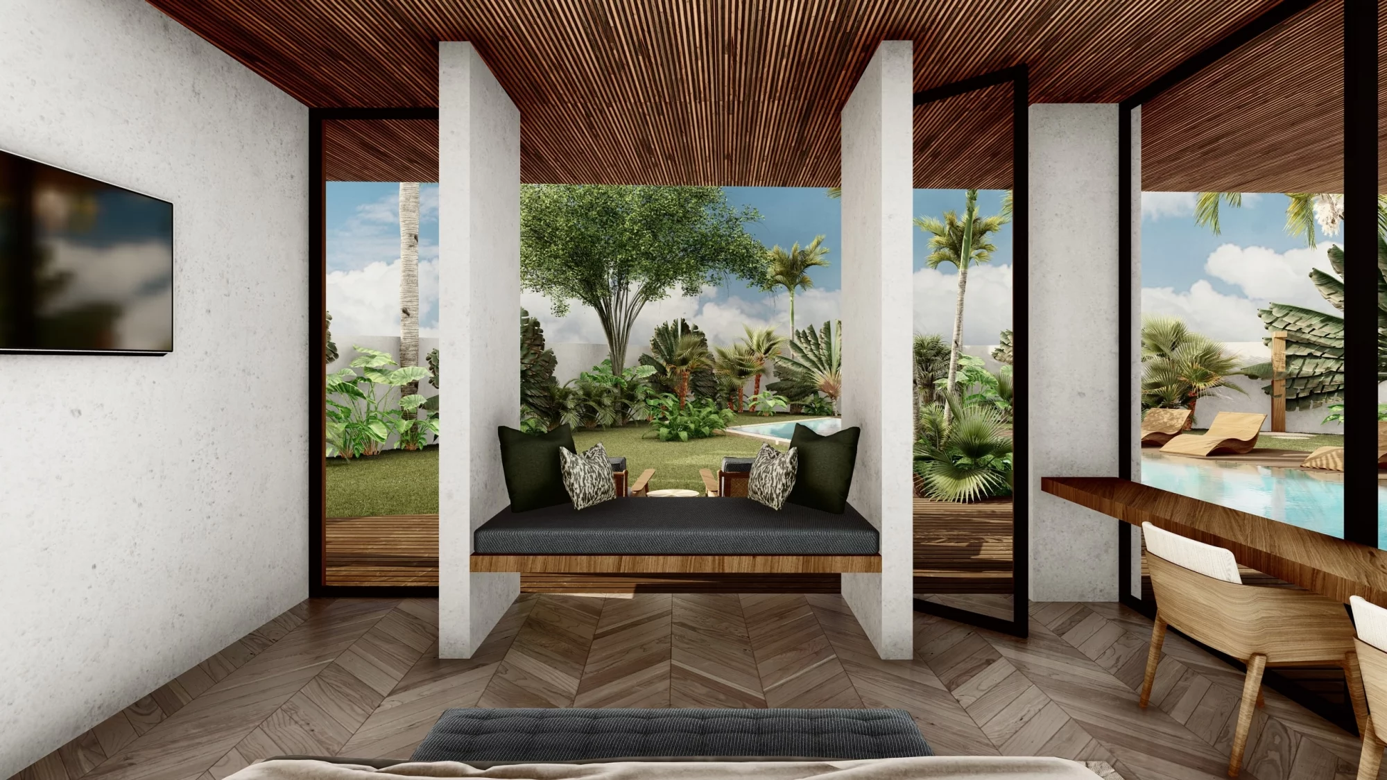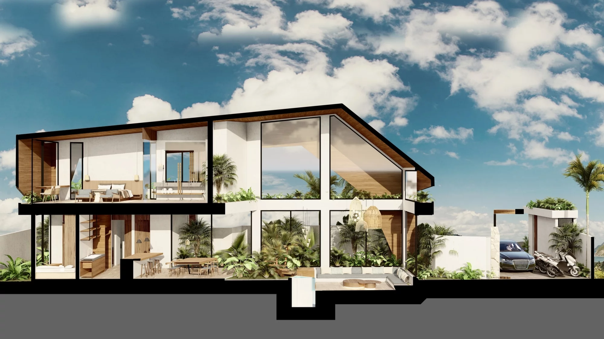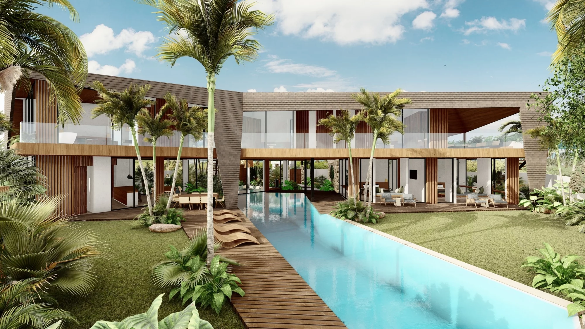 Designed in the contemporary tropical style by renowned Spanish architects, Biombo, this villa is situated on an 850 sqm plot, including 362 sqm of building. If you’re looking for a tranquil and relaxing atmosphere away from the hustle and bustle of everyday life, this property is perfect for you. The villa boasts 5+1 spacious bedrooms, 6 bathrooms, and a spacious enclosed living room. The open kitchen includes a staff dependance, ensuring privacy and comfort for you and your guests.