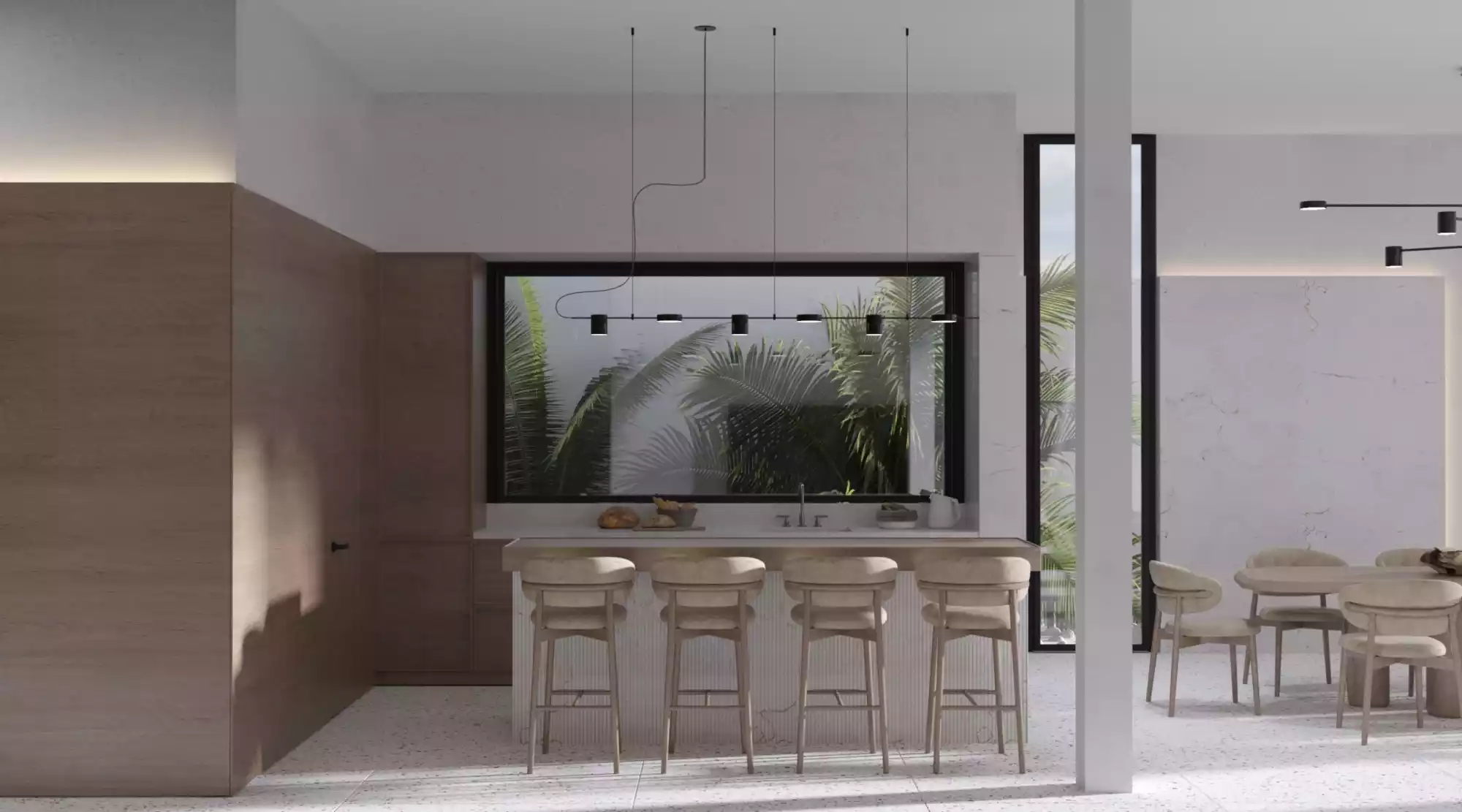 Located in a quiet residential area, this villa has been thought and designed with quality materials that favor comfort and modern appearance.