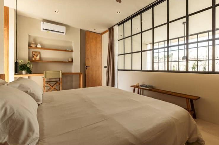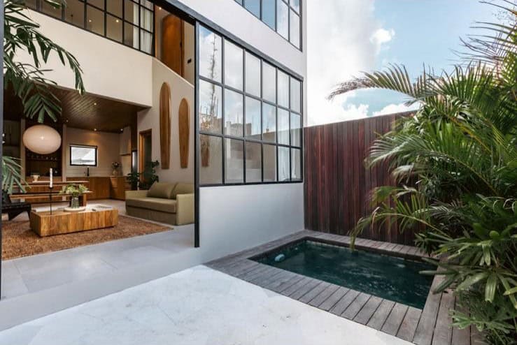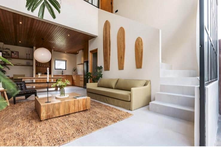 This loft is elegantly designed, offering a minimalist luxury atmosphere that is perfect for entrepreneurs, couples, surfers and vacations. The building area of each loft is 97m2, sitting on a land area of 70m2. The furnitures are very good quality, the living area facing the pool offering the perfect day light from the big windows. Our loft feature fully equipped kitchen.