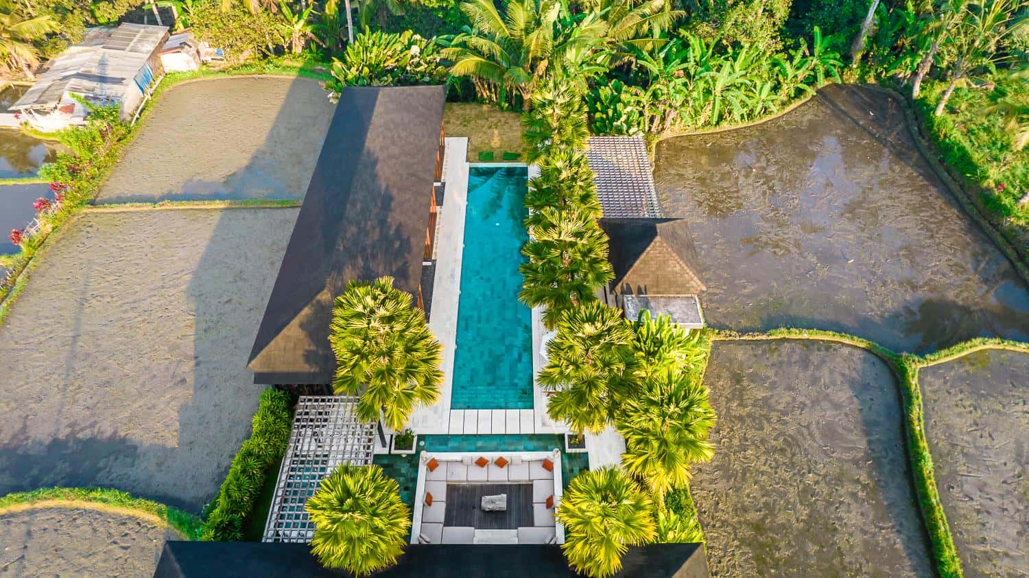 This exquisite 7-are leasehold villa in the artistic haven of Tegallalang offers a unique blend of modern tropical charm and contemporary luxury. Located just a short drive from the famous Tegallalang Rice Terrace which is listed as UNESCO World Heritage and a 15-minute ride away to Ubud’s bustling center, Pyramids of Chi and Yoga Barn, this property provides an oasis of serenity amidst lush landscapes.